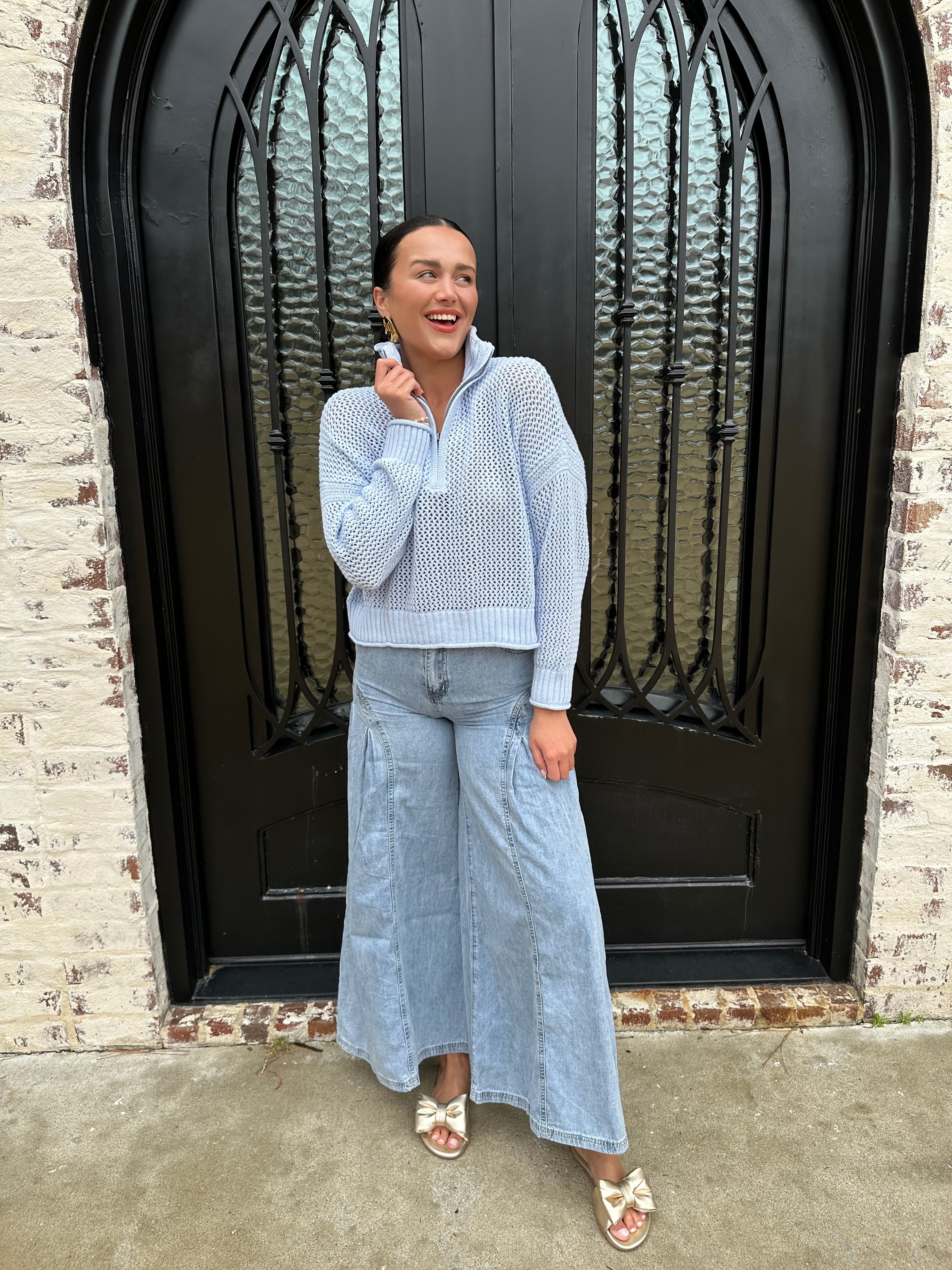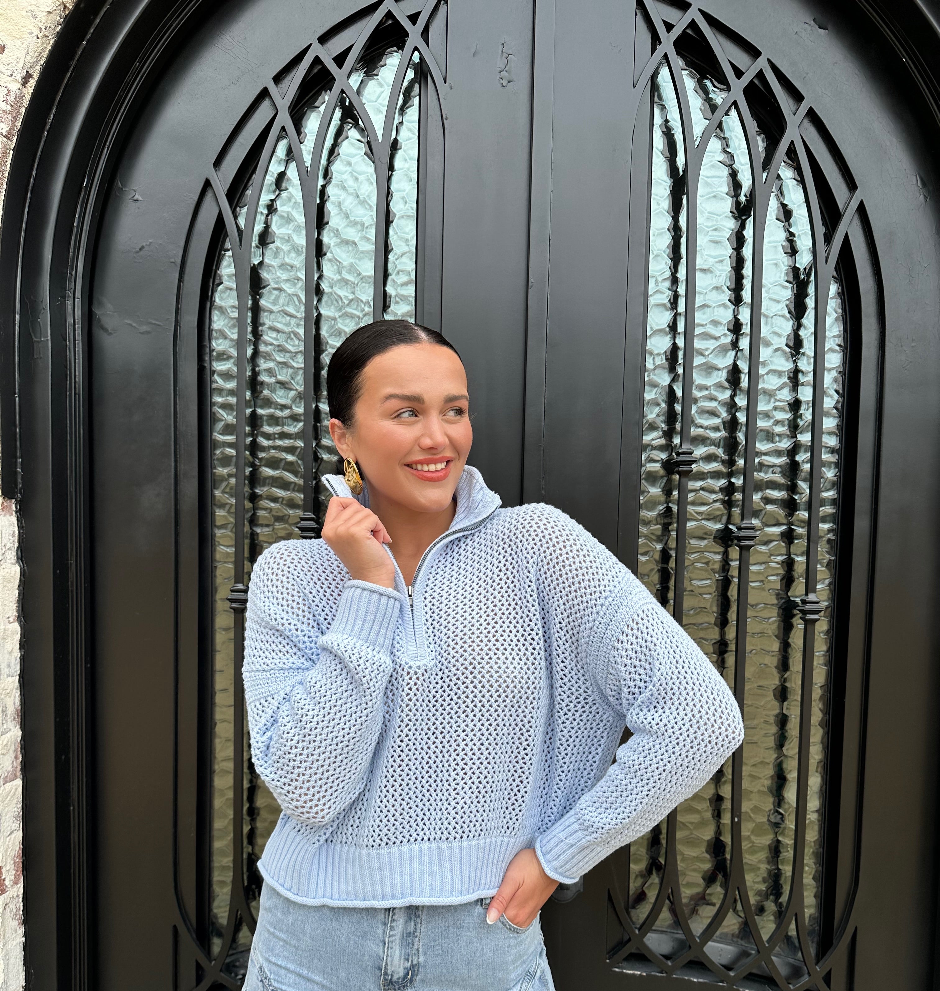 Effortlessly layered and undeniably cool, this open knit quarter zip sweater brings relaxed coastal vibes to your everyday rotation. The breathable, airy weave keeps you comfortable whether you're catching ocean breezes or transitioning between seasons. Perfect for draping over a simple tee or wearing solo, it's the kind of piece that feels like a warm hug without the weight. Pair it with your favorite denim or linen pants for that laid-back, sun-kissed aesthetic.