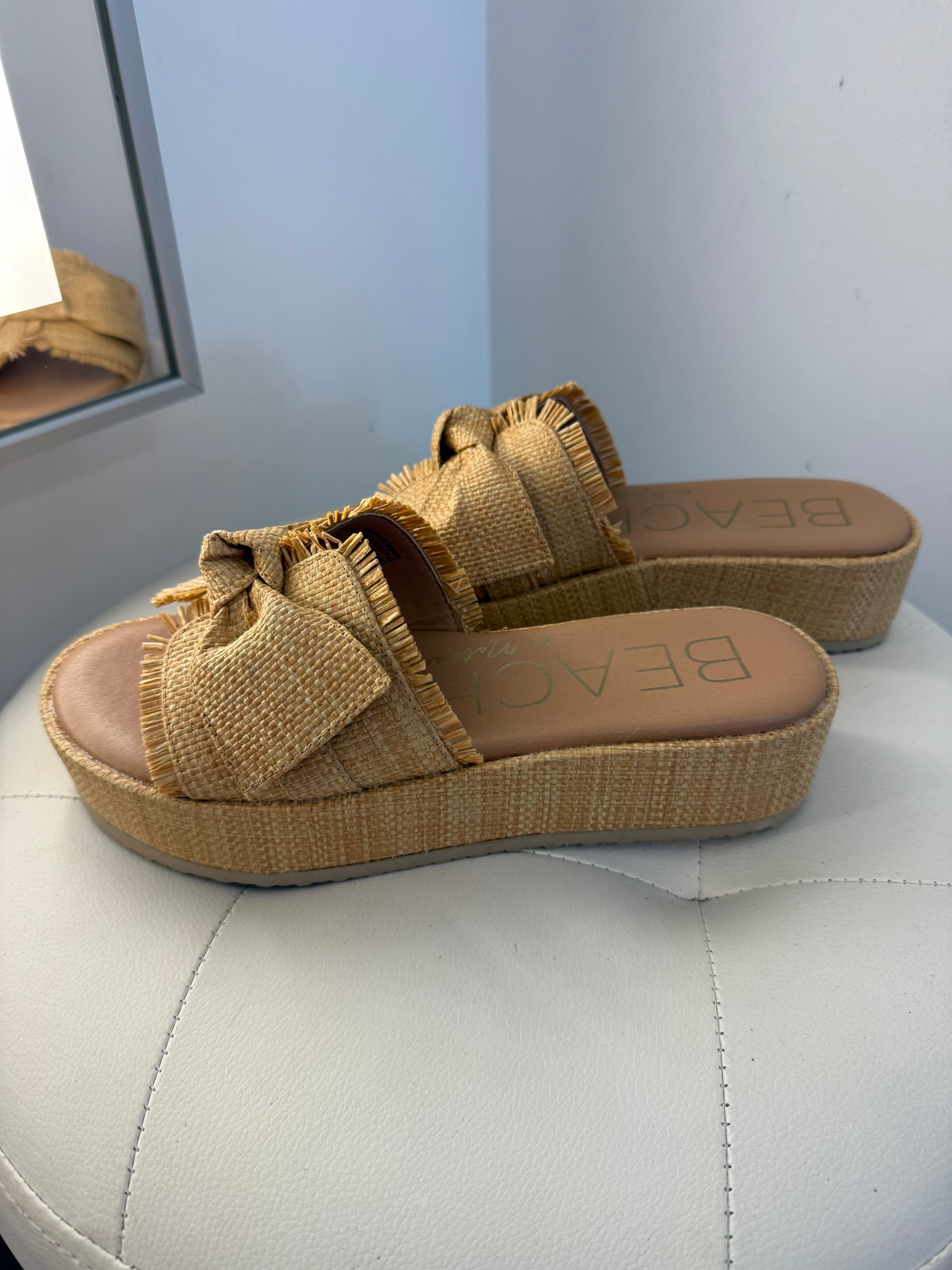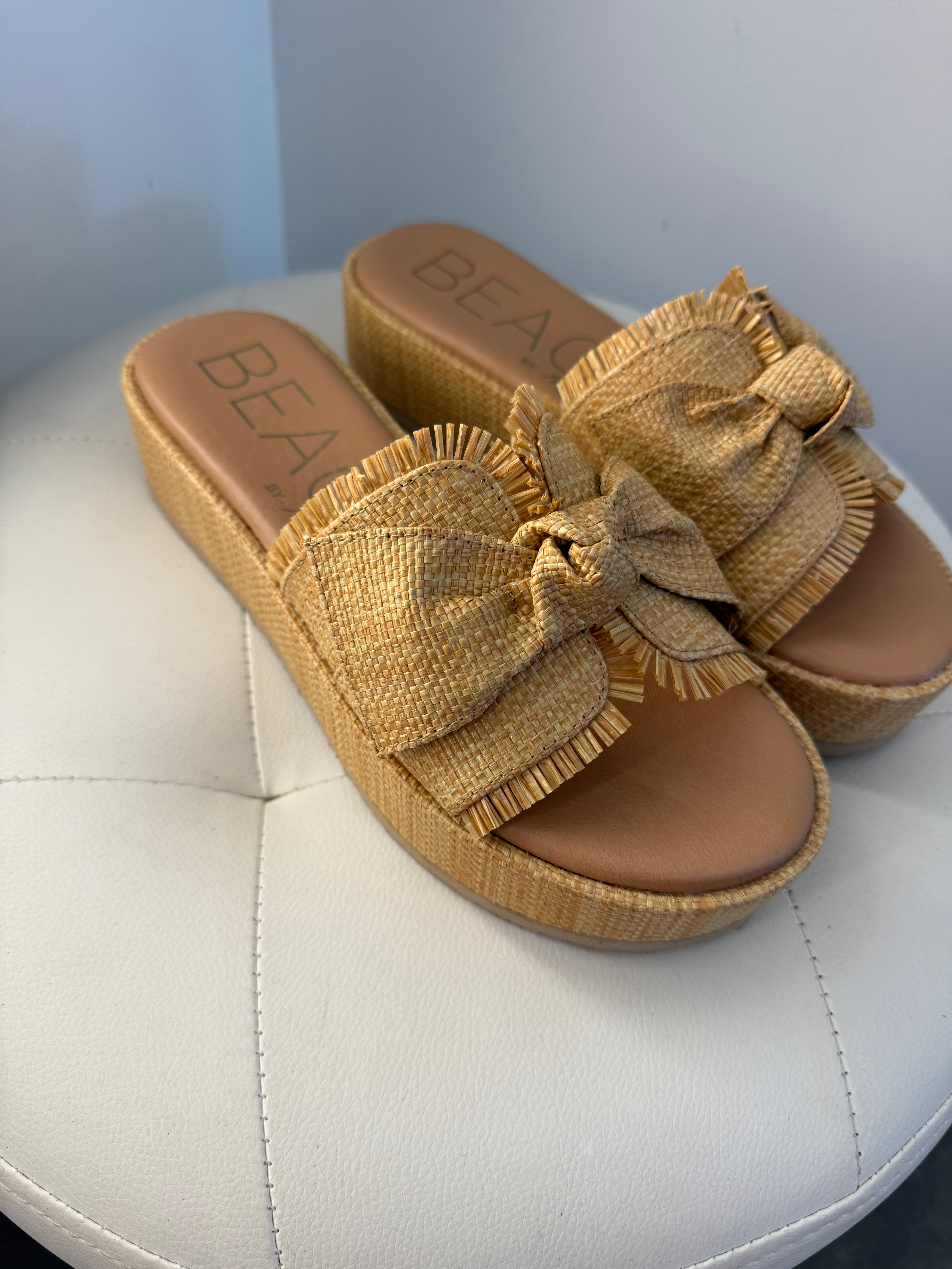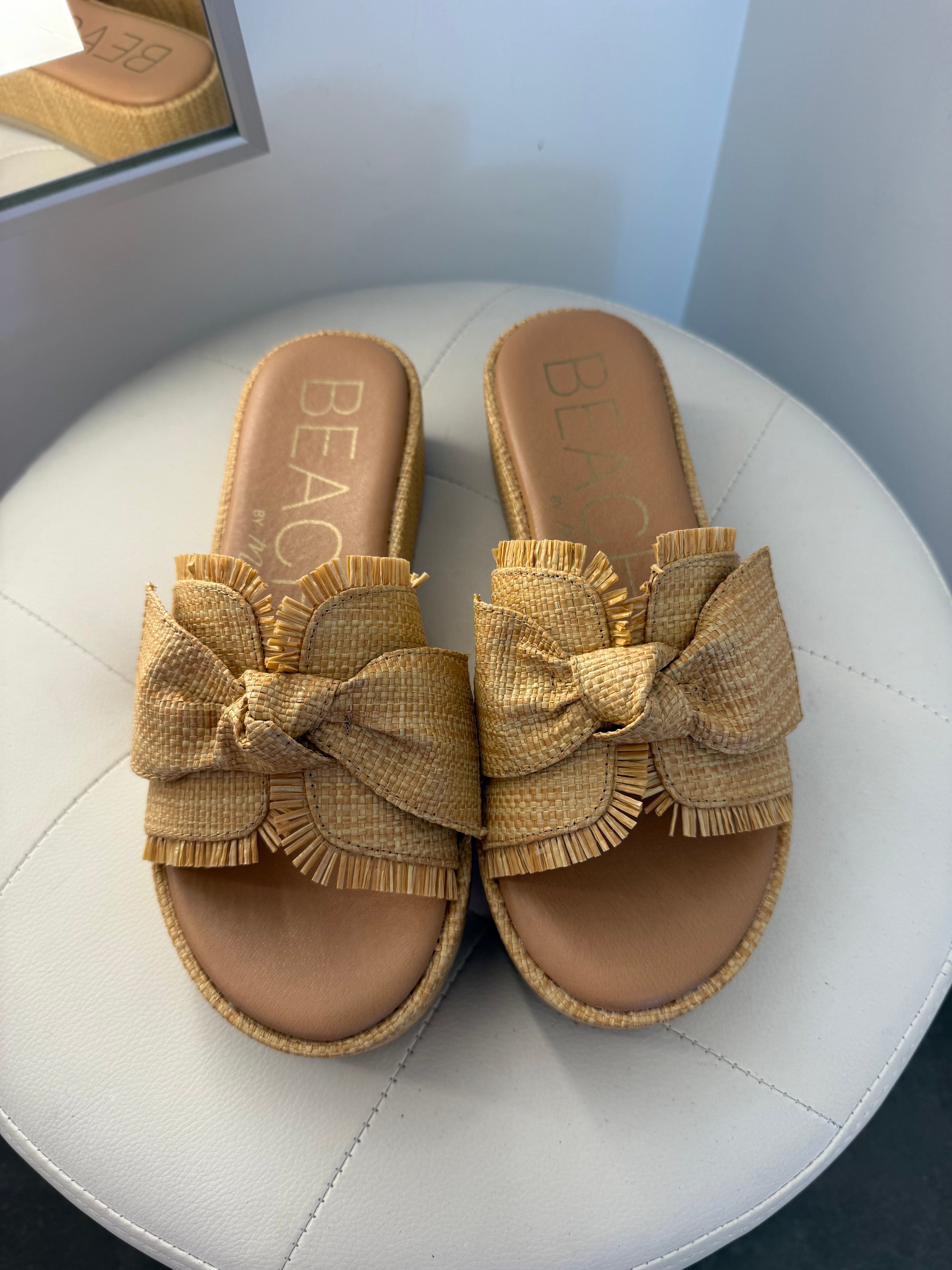 Step into style and comfort with our Sunda Sandals! Crafted with raffia slides and topped with a charming bow, these sandals are perfect for adding a touch of elegance to any outfit. Feel confident and fashion-forward with our Sunda Sandals.