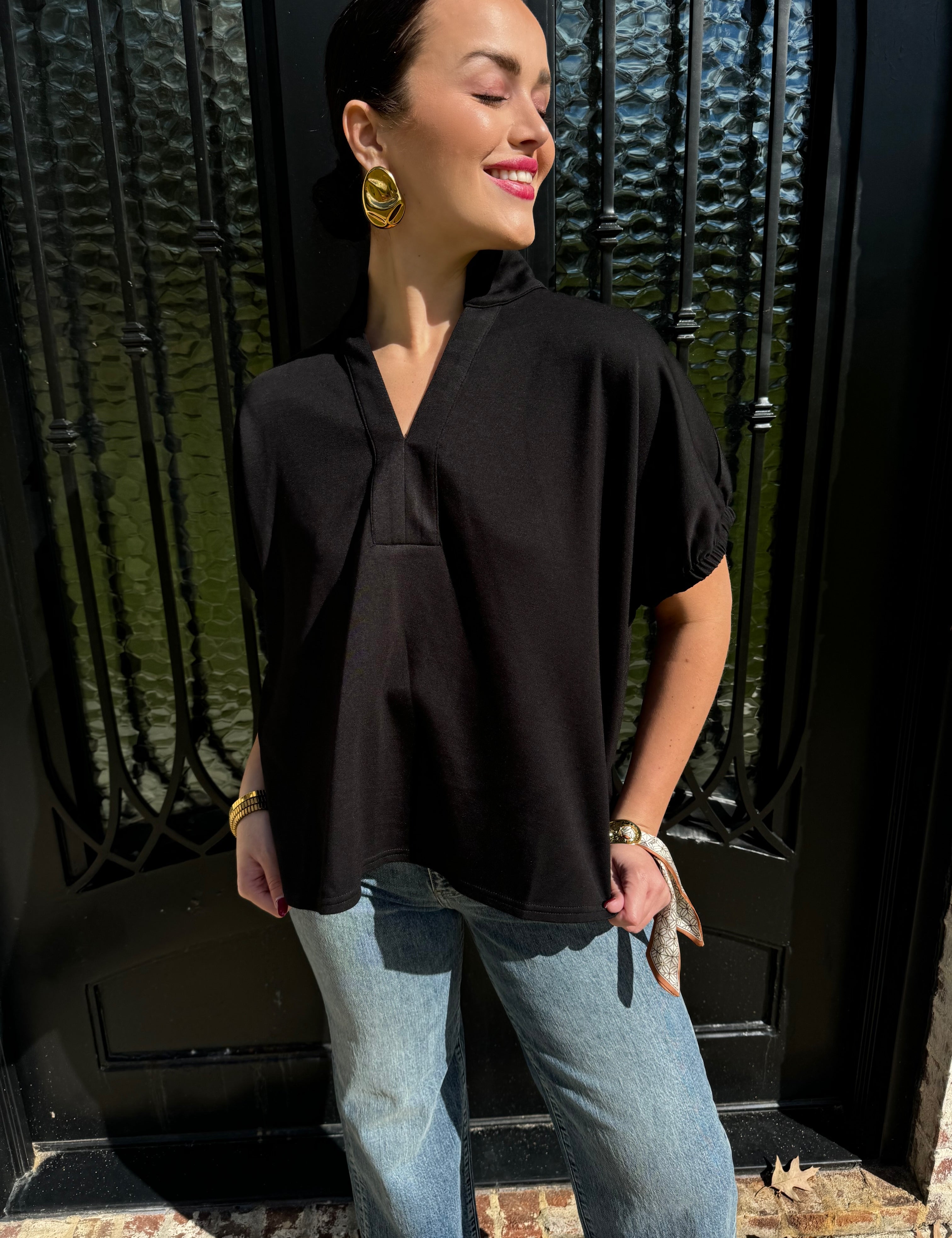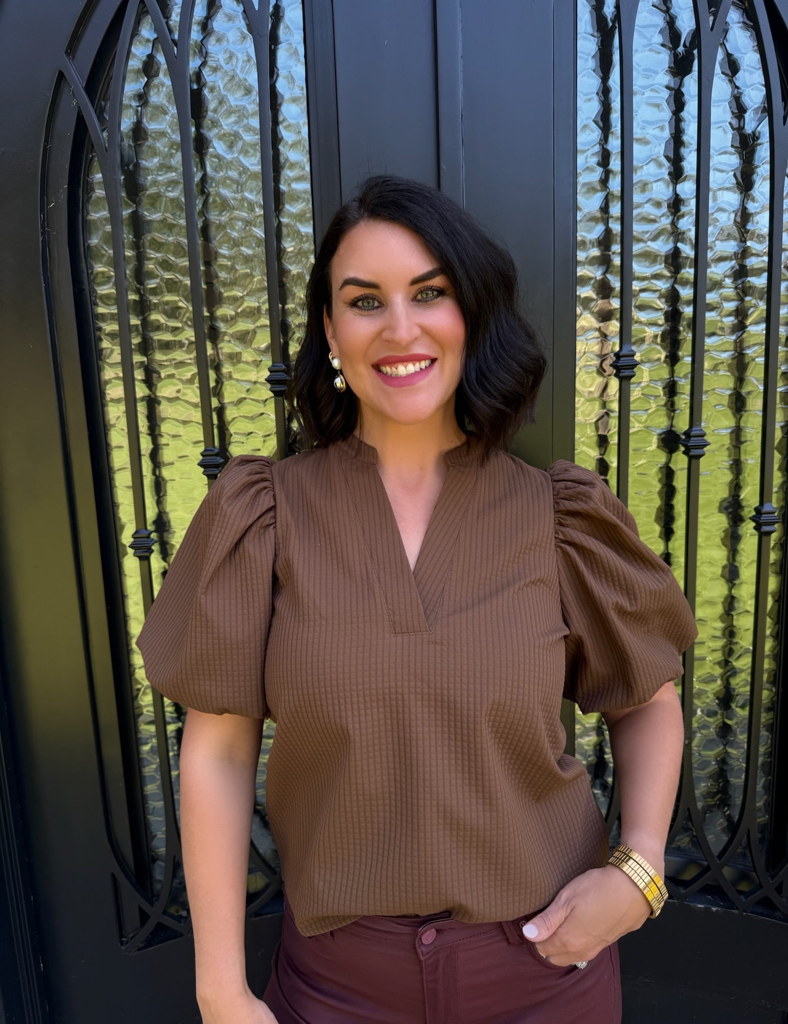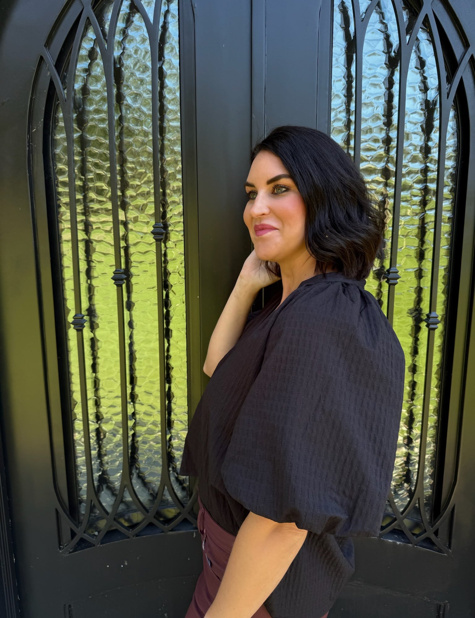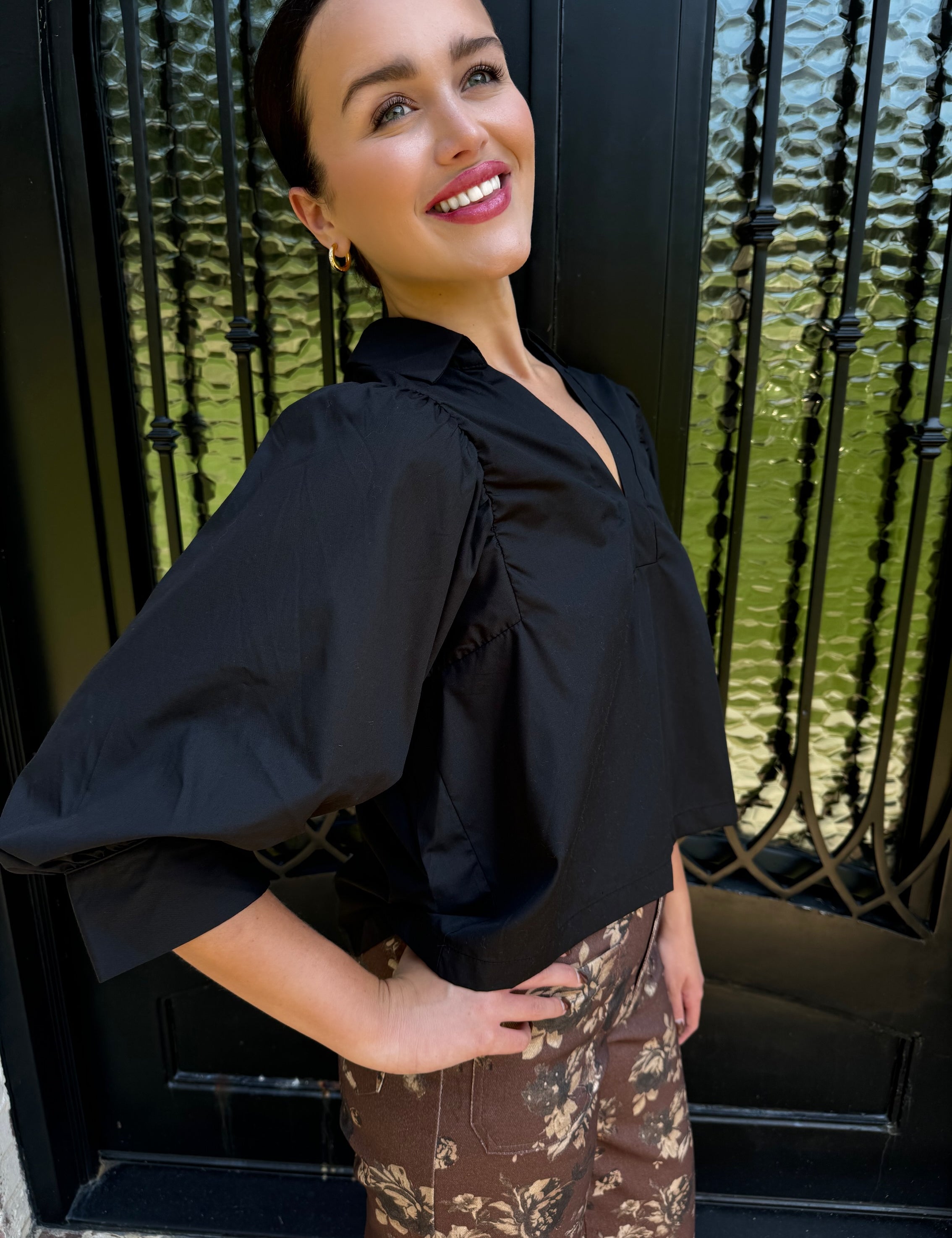 Karlie Poplin Stripe Ric-Rac Trim Button Up Top in Blue and white