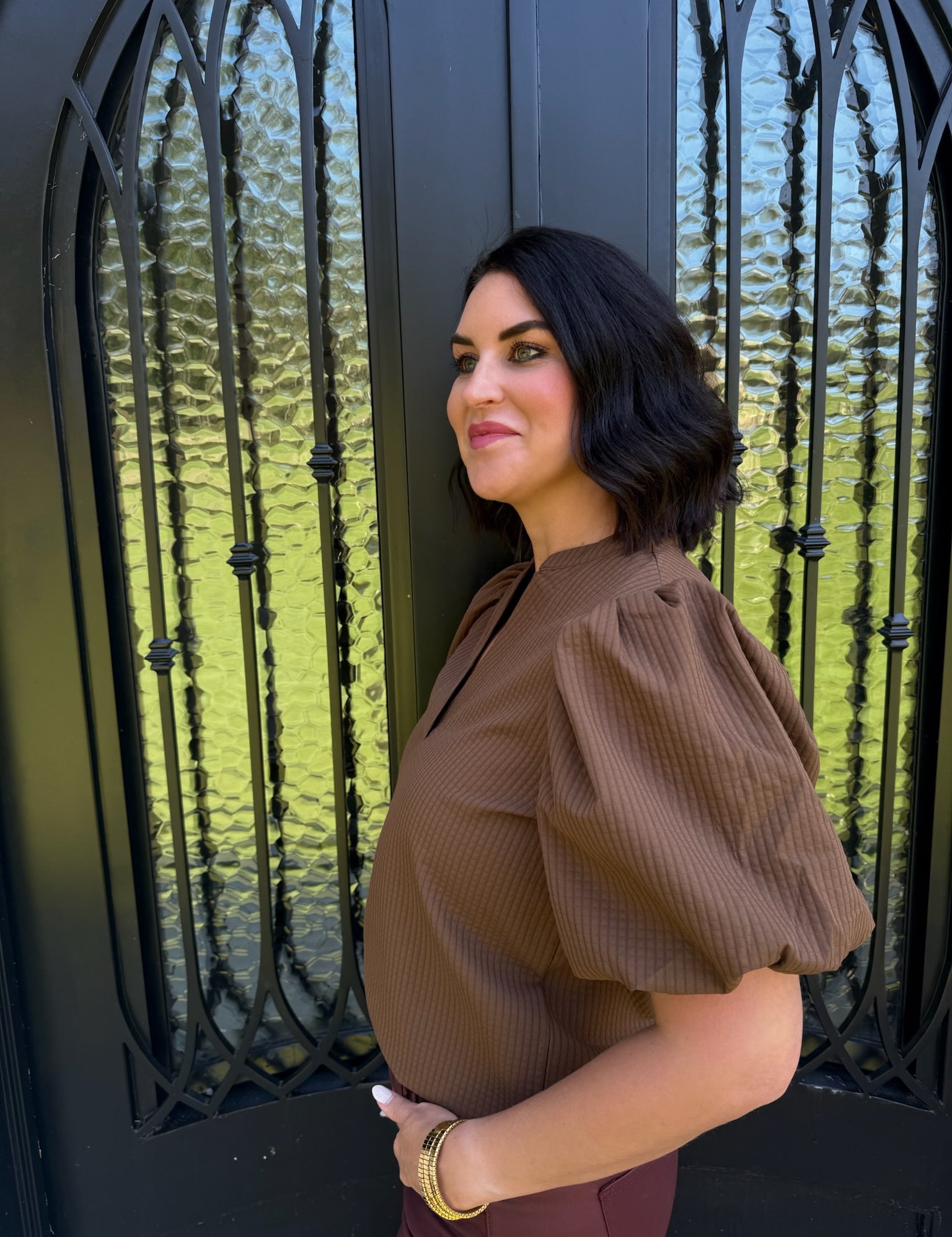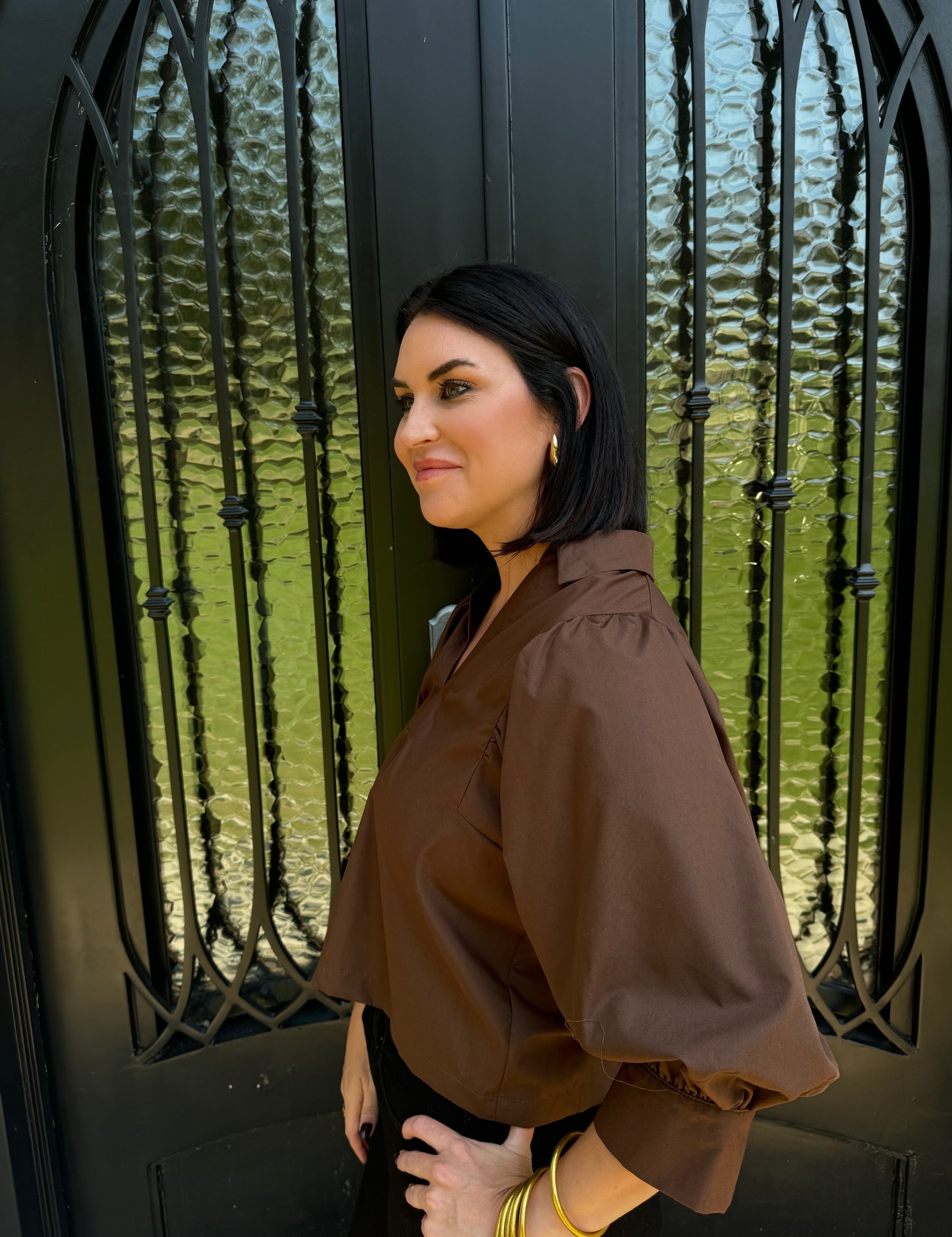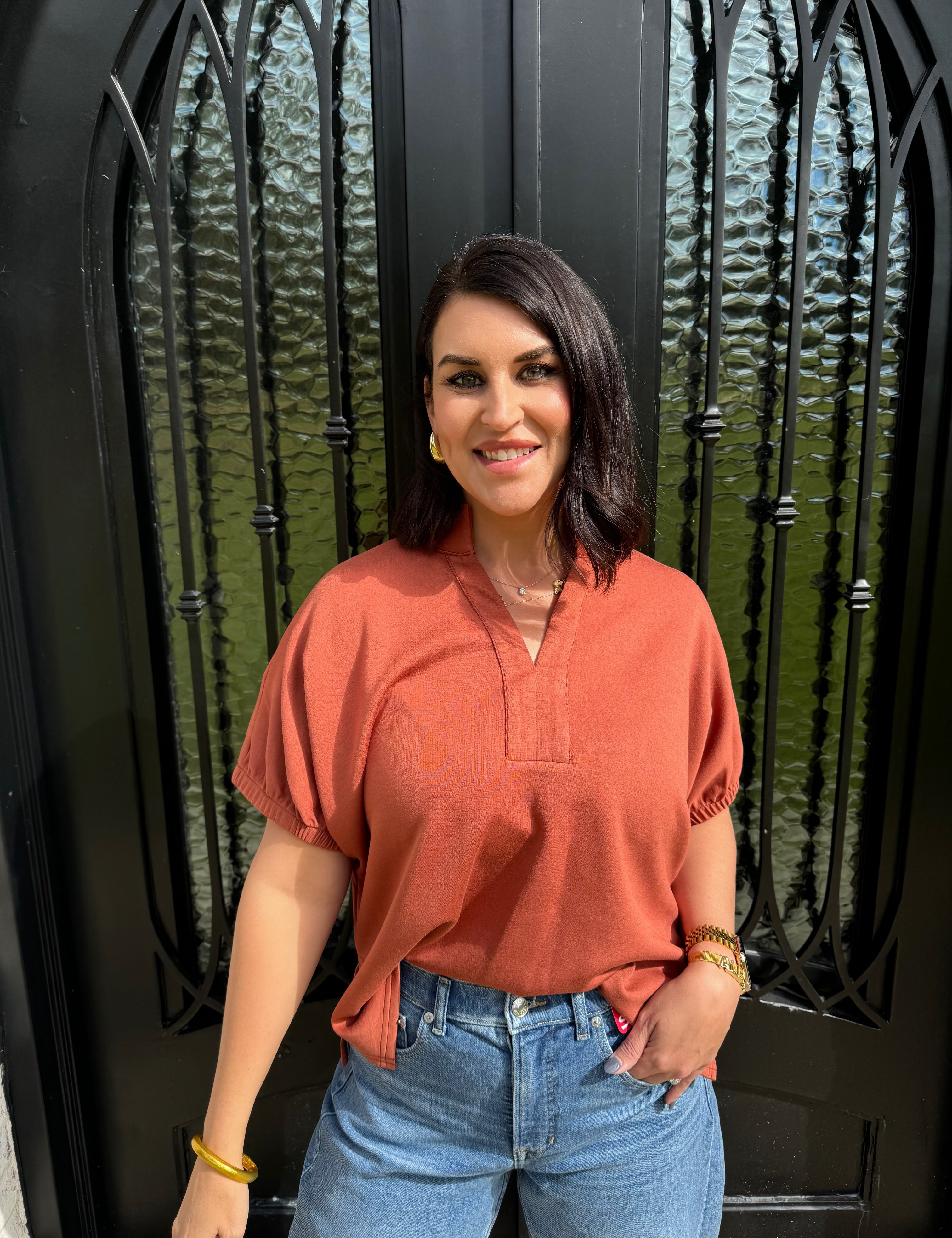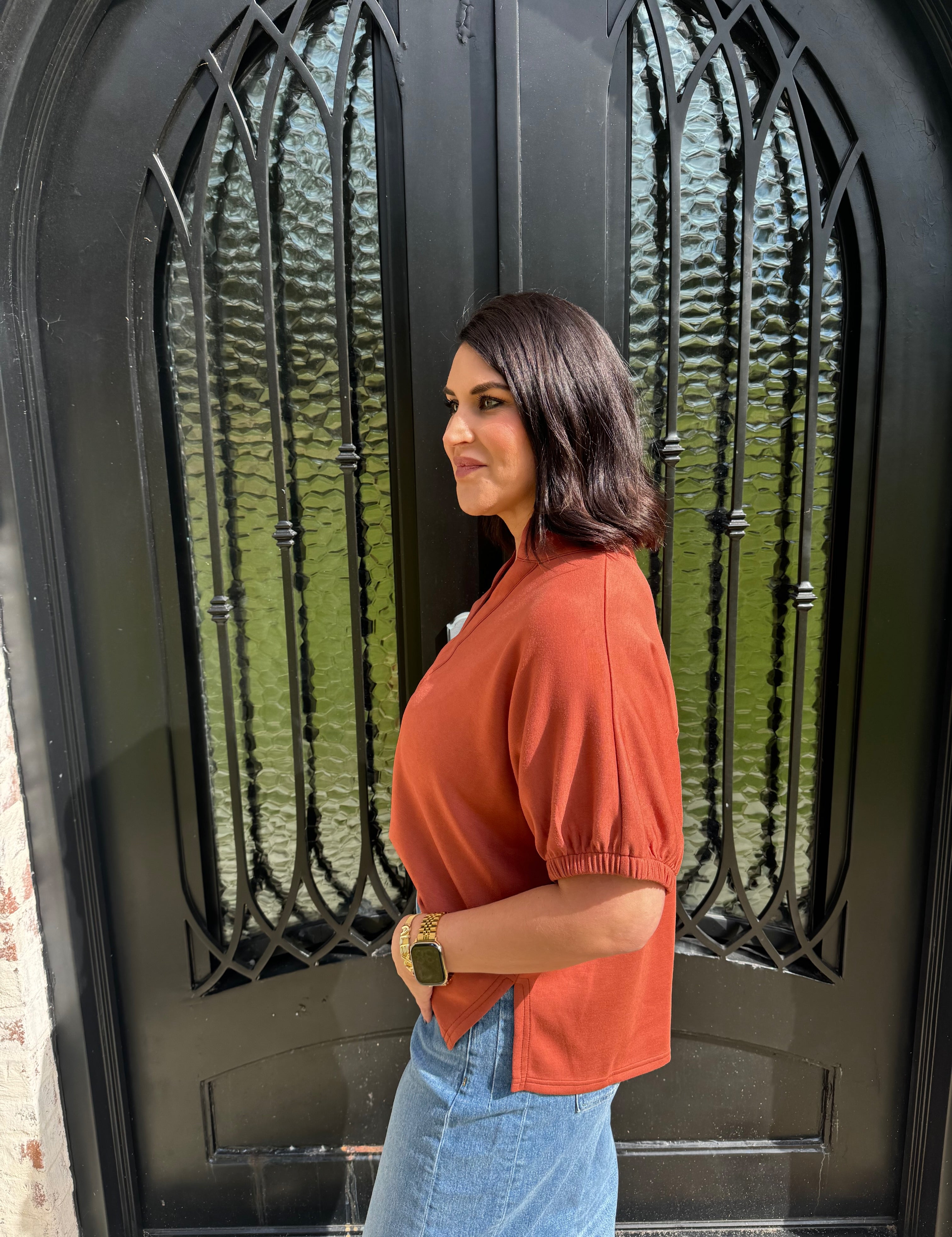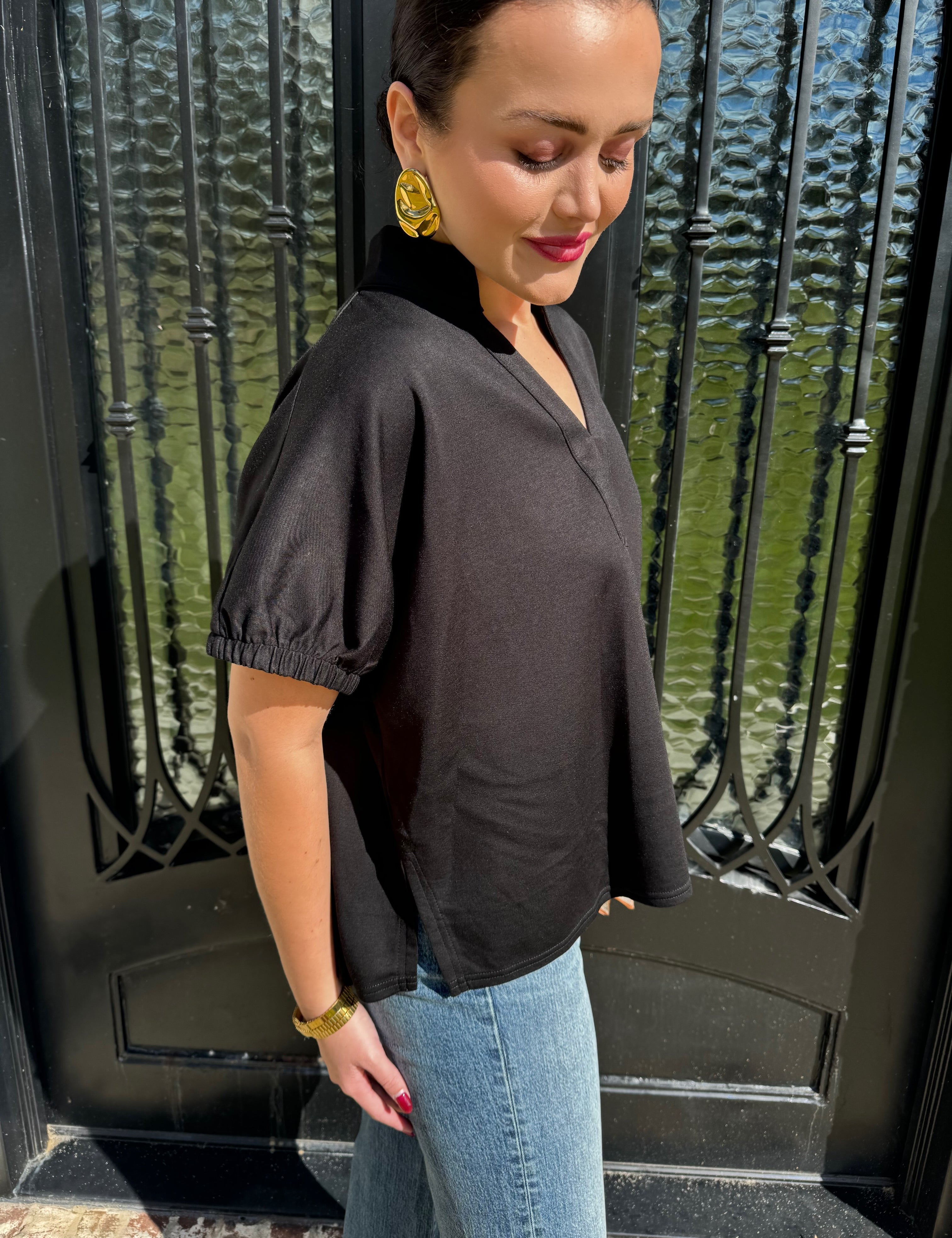 Karlie Poplin Stripe Ric-Rac Trim Button Up Top in Blue and white
