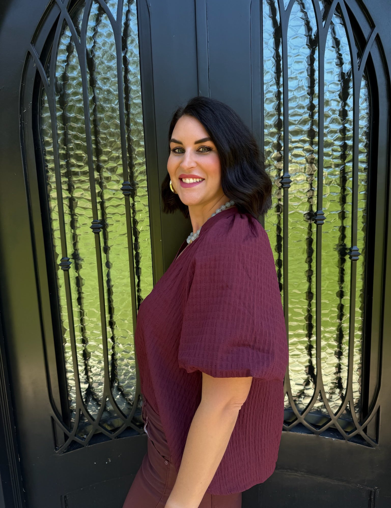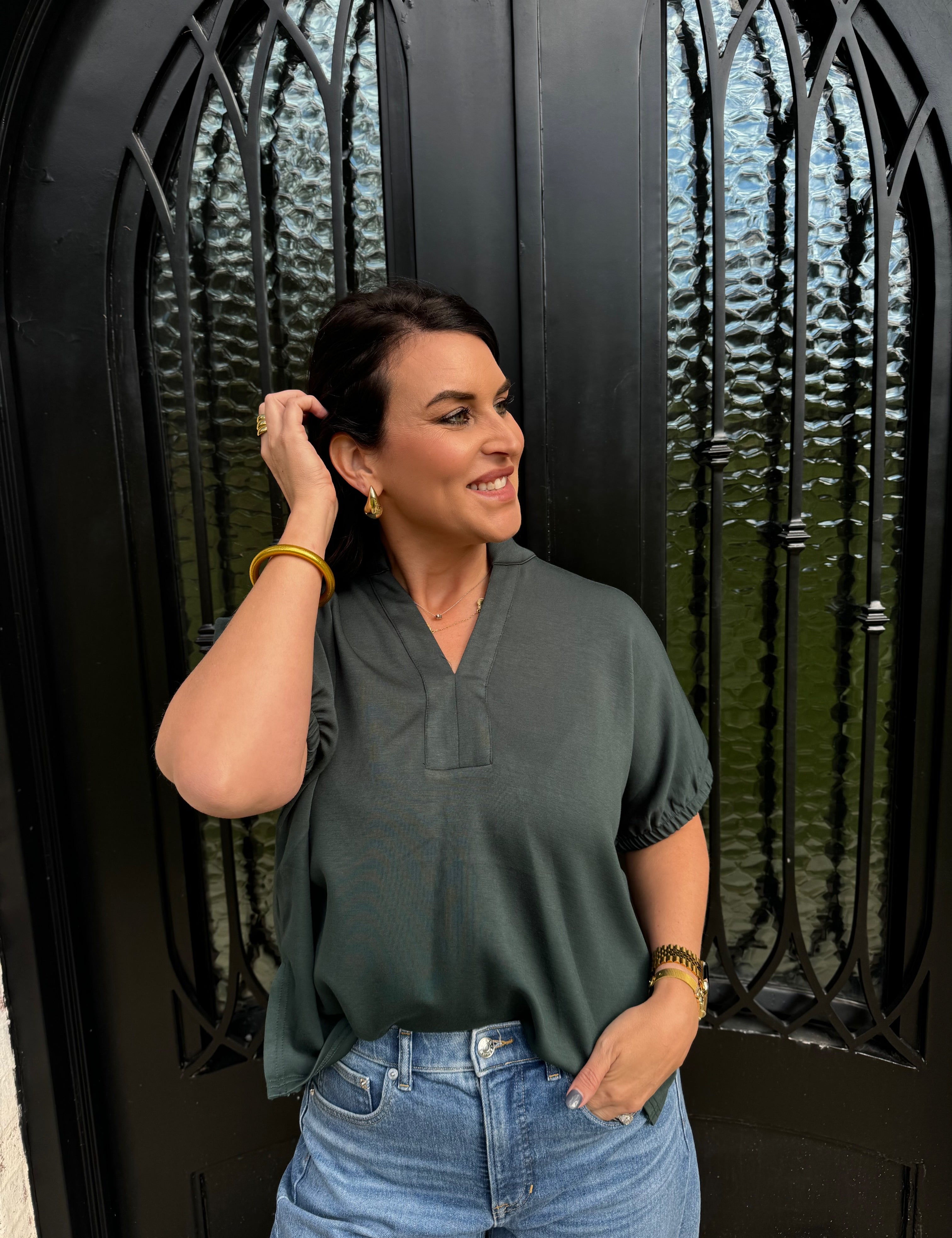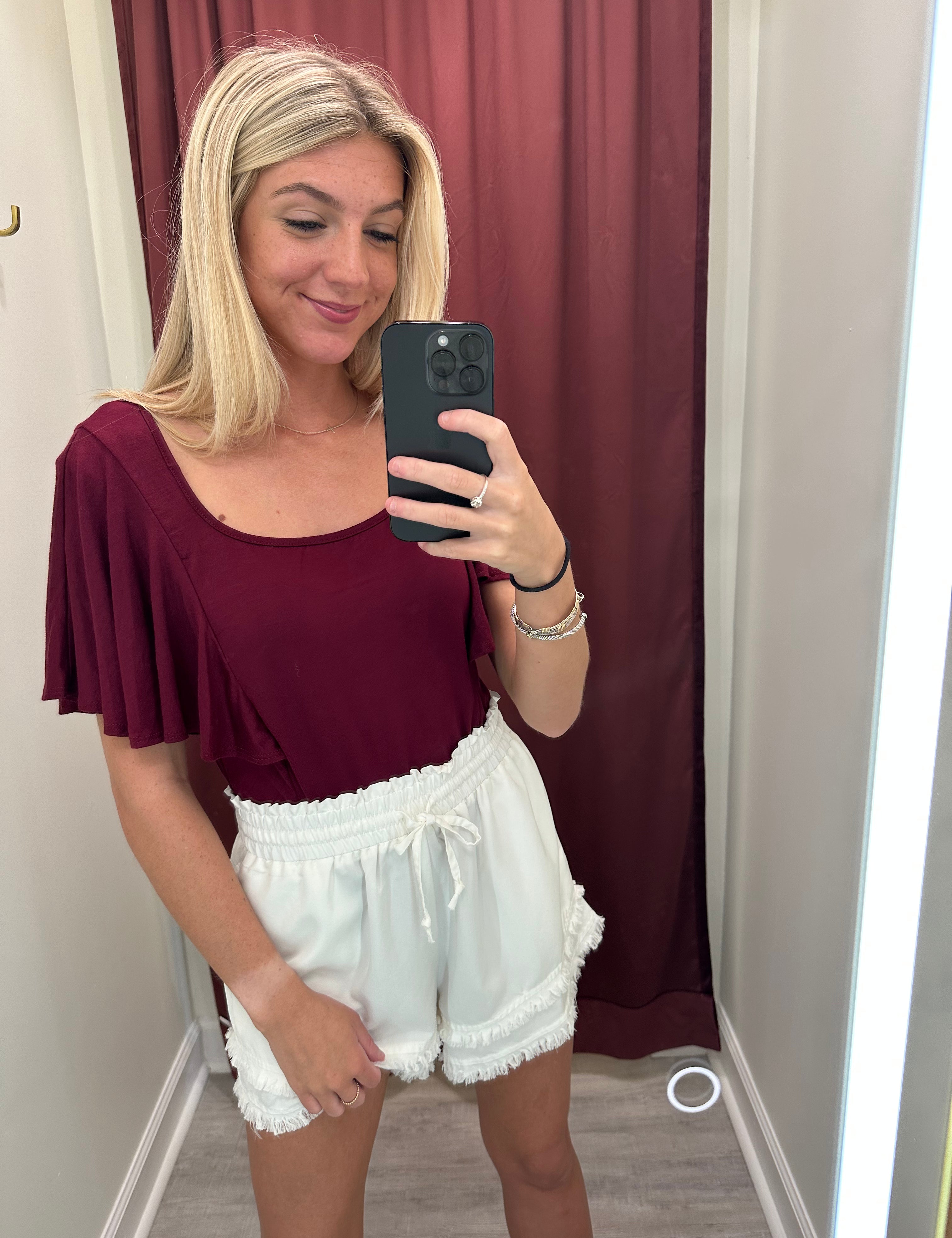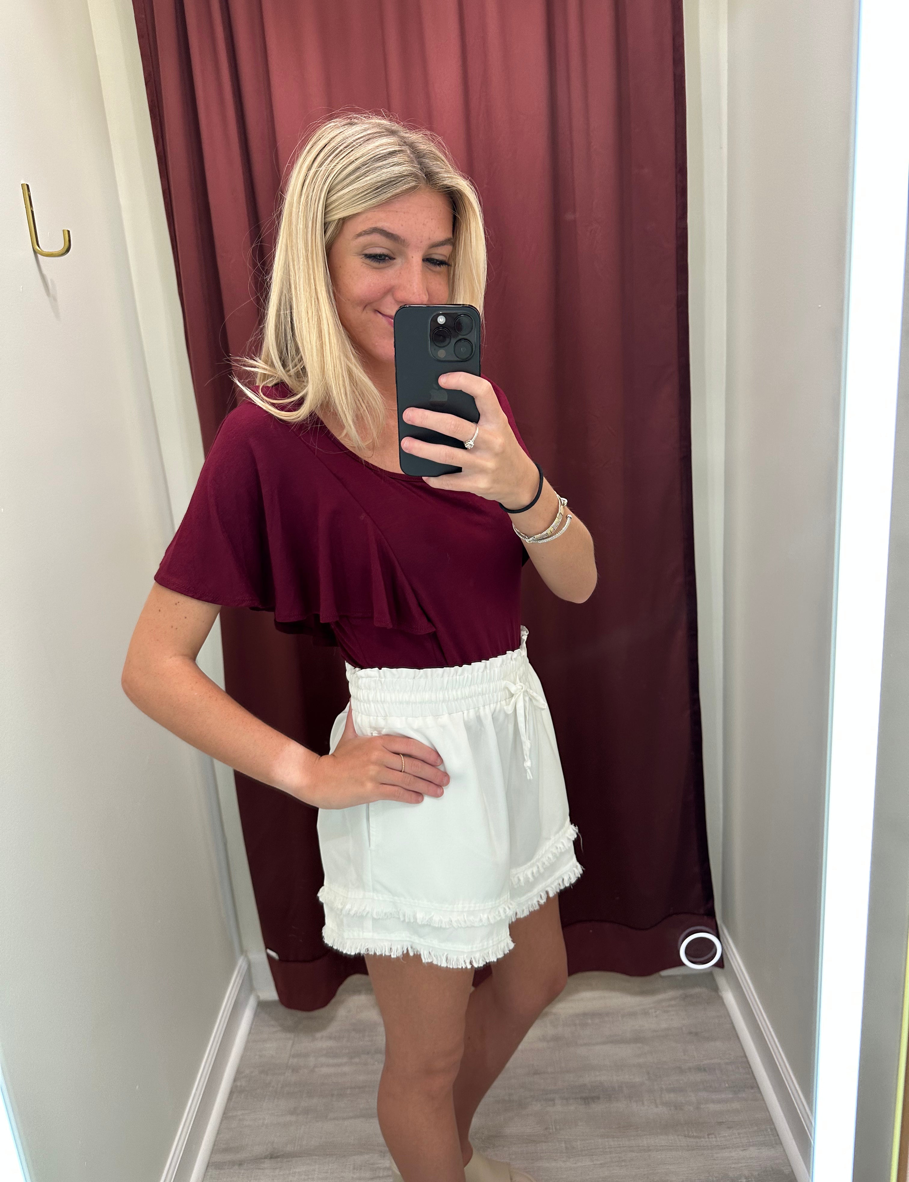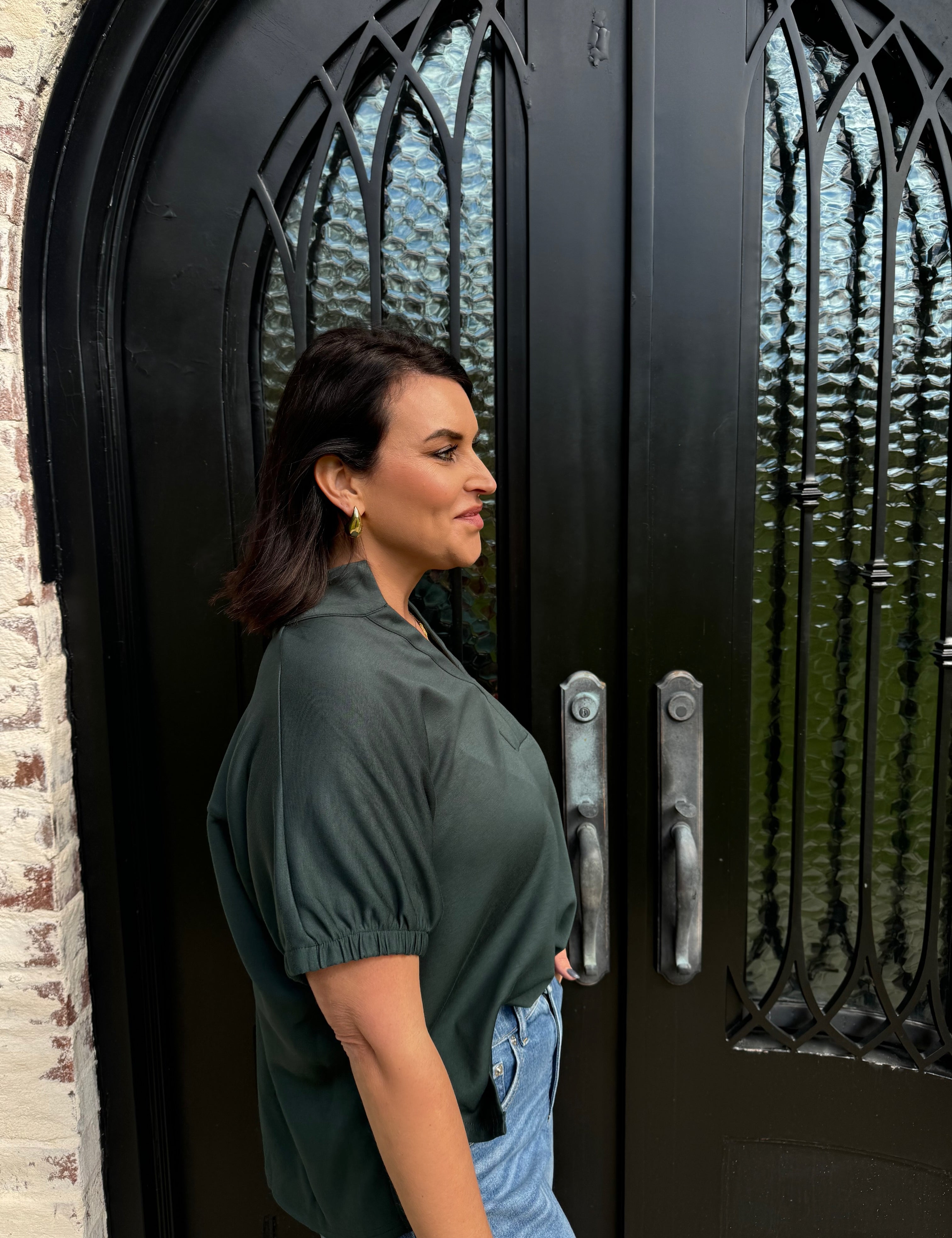 Karlie Poplin Stripe Ric-Rac Trim Button Up Top in Blue and white
