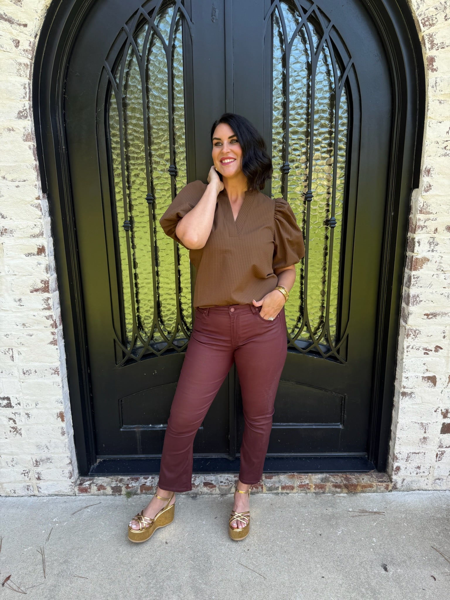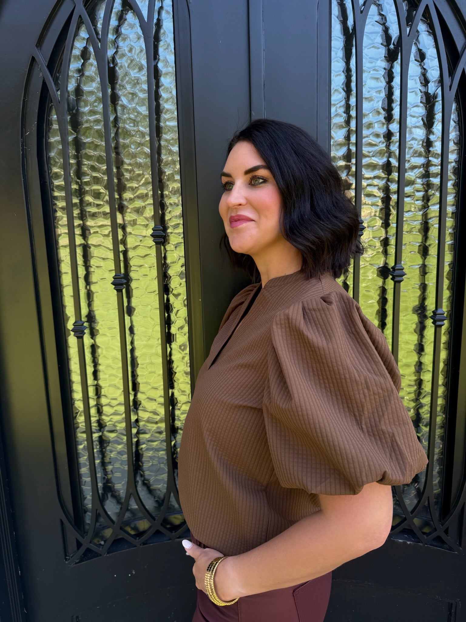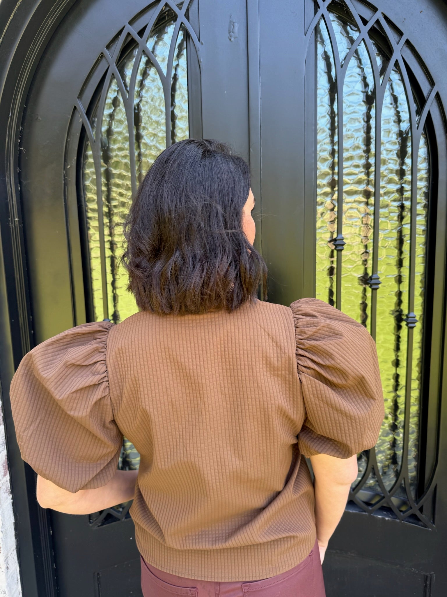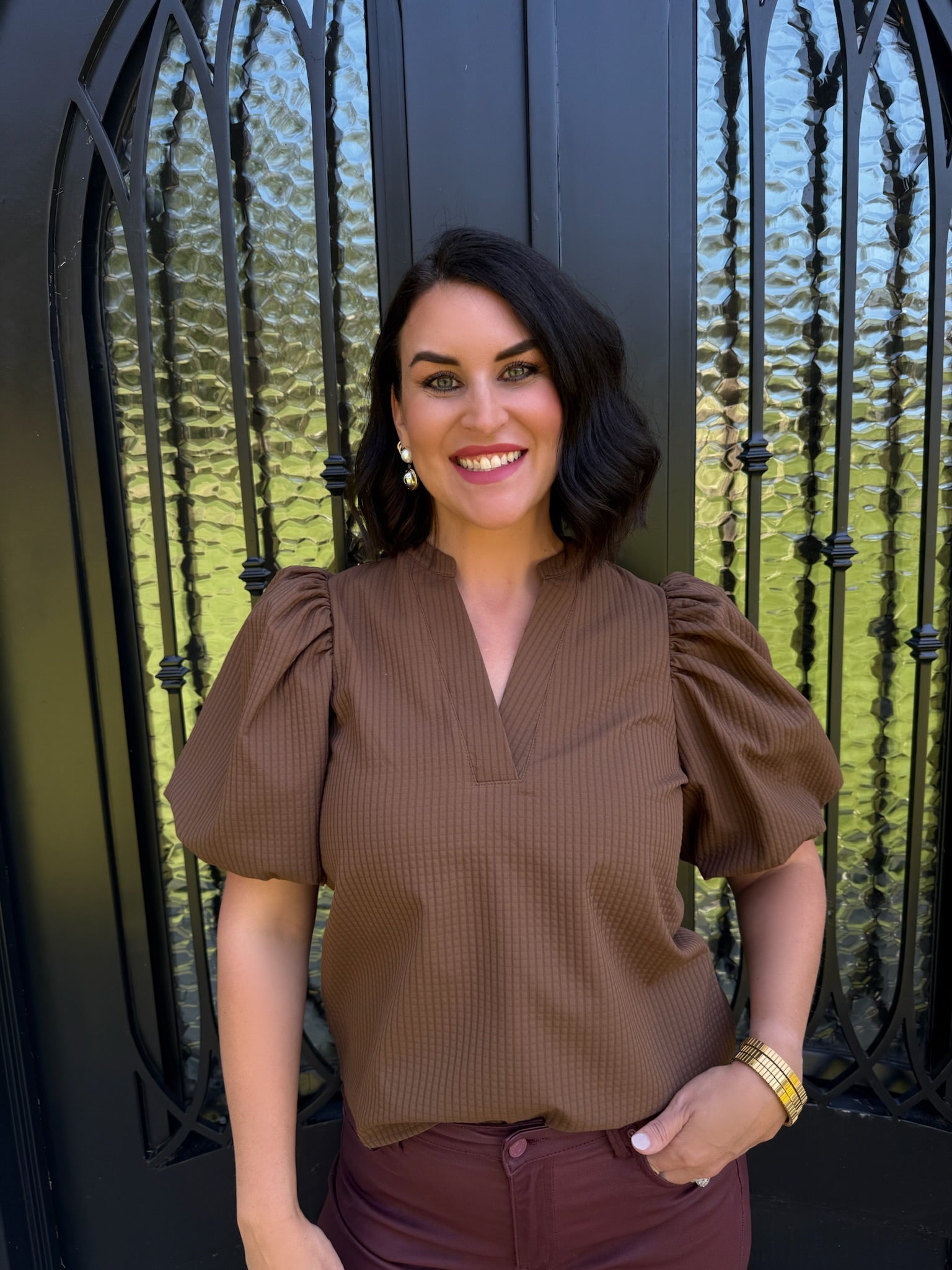 The Gina Top in Brown is a timeless classic featuring elegant puff sleeves that bring a stylish, feminine touch to your look. Its rich brown tone offers versatile pairing options, making it an essential piece for elevating both everyday and special occasion outfits. This top combines comfort with sophisticated design, ensuring you stay effortlessly chic wherever you go.