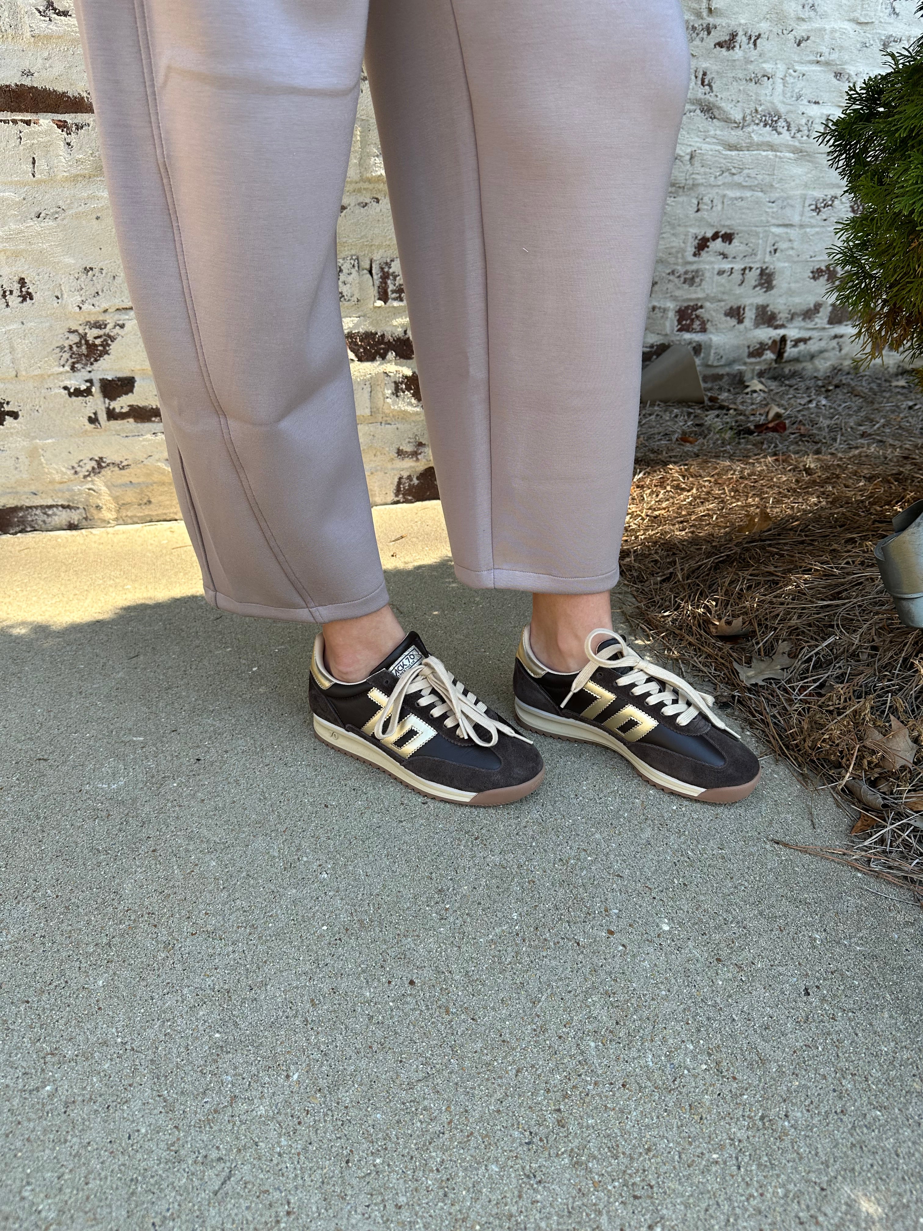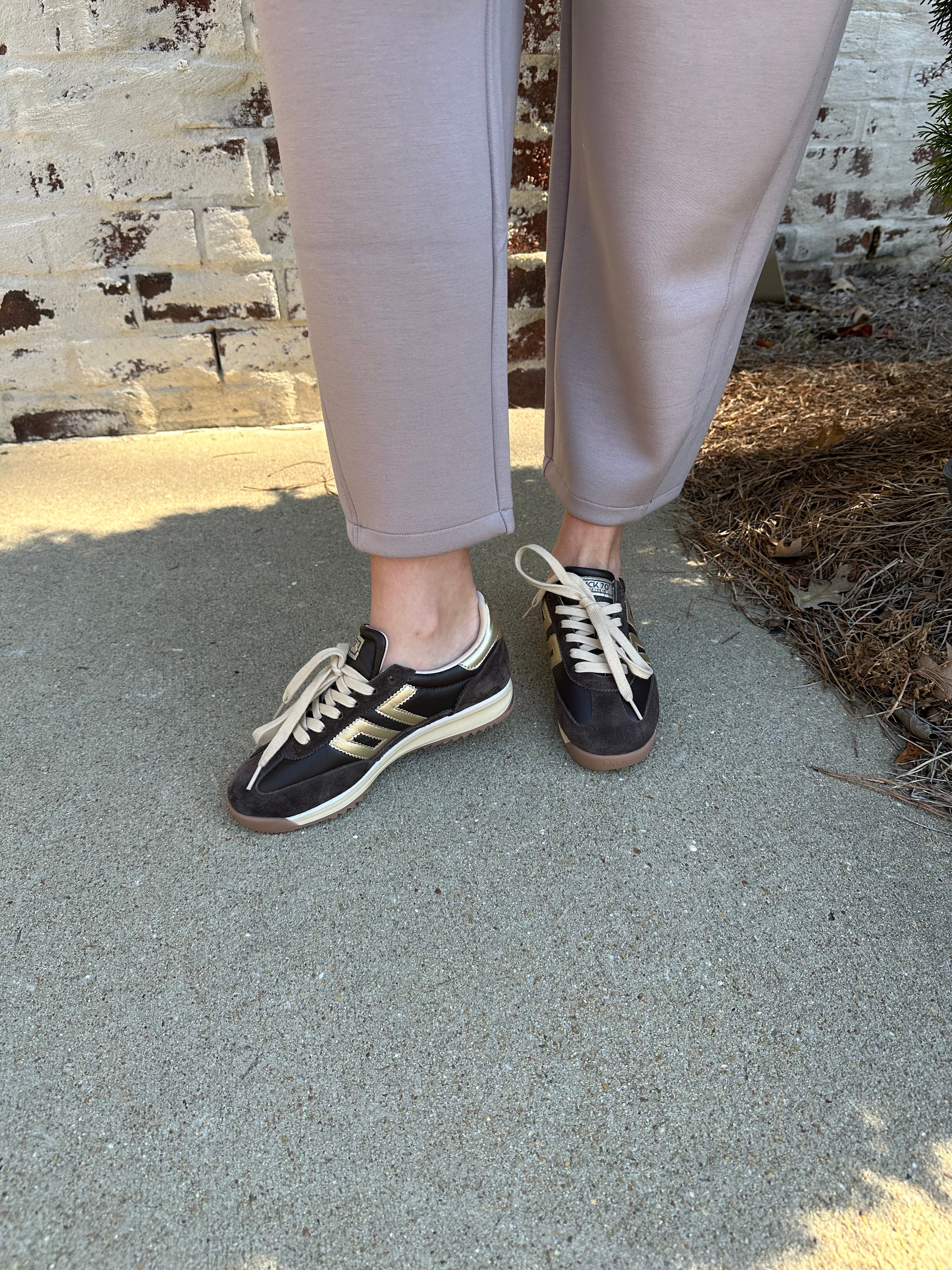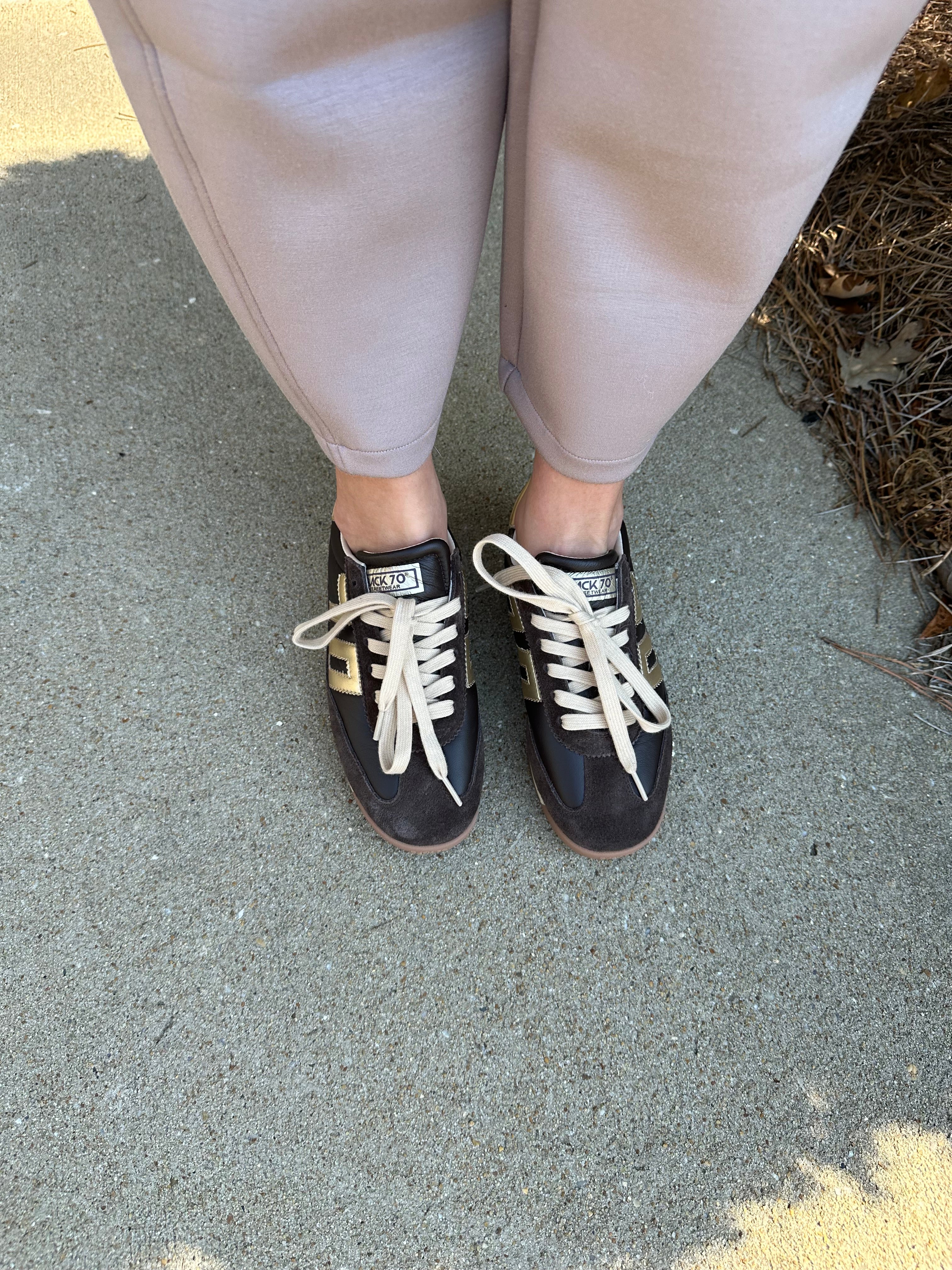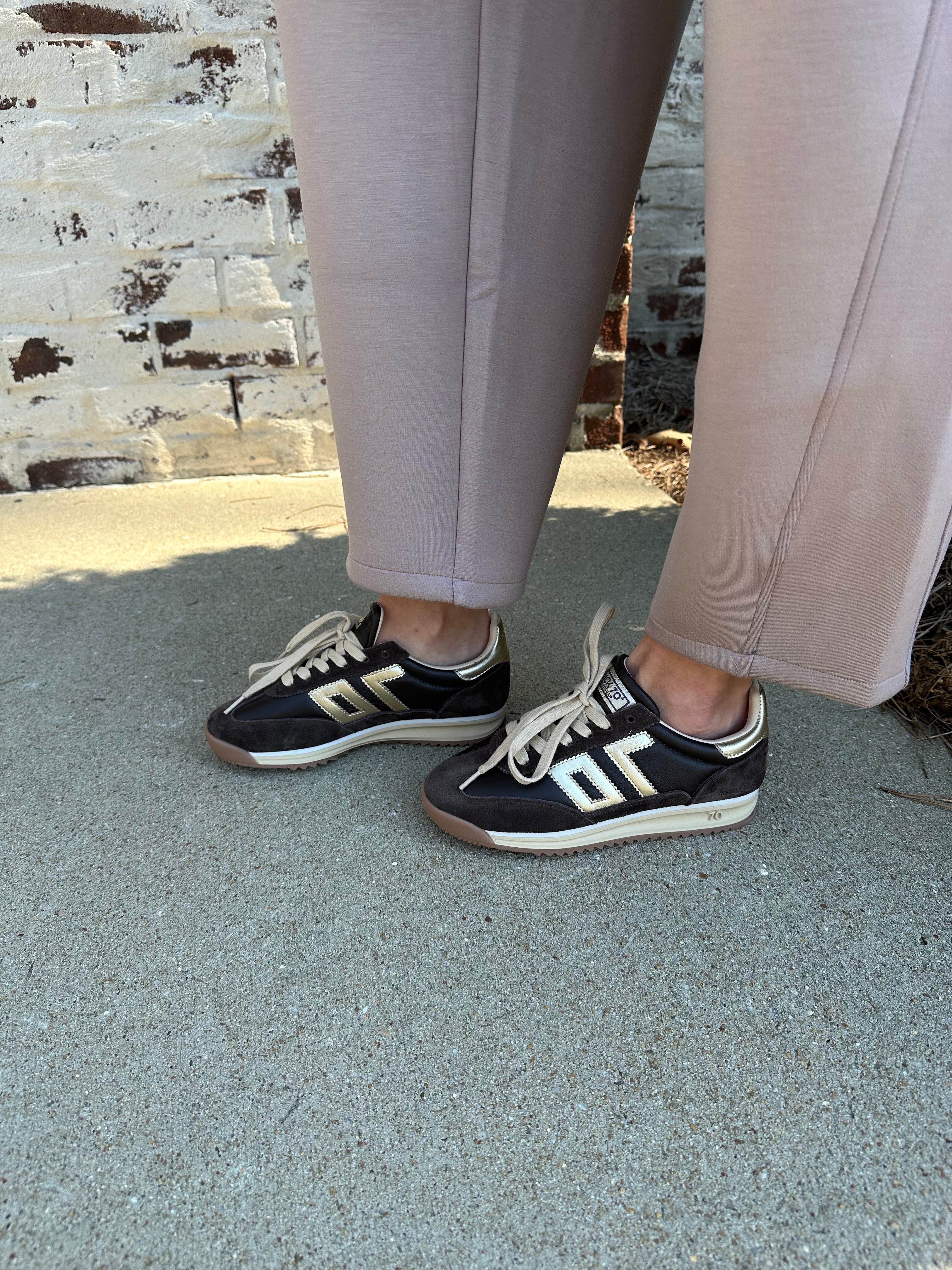 Meet the Jogger N - designed in dark, moody neutrals with luxe metallic gold Back 70 branding, this pair delivers understated glam with serious comfort. A low platform, lightweight build, and heritage icon keep things retro-cool and effortlessly wearable. Perfect for women searching for high-end sneakers with rich gold touches that move from street to soirée without skipping a beat.