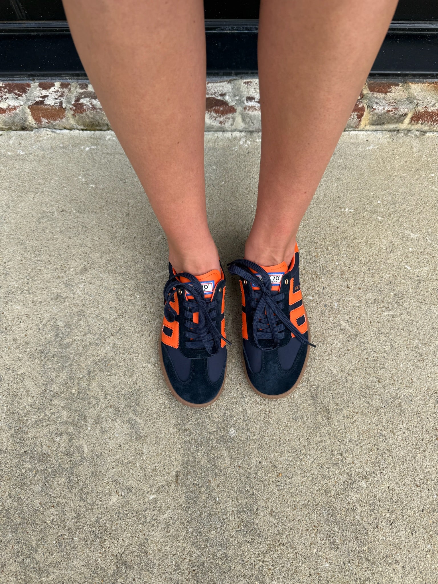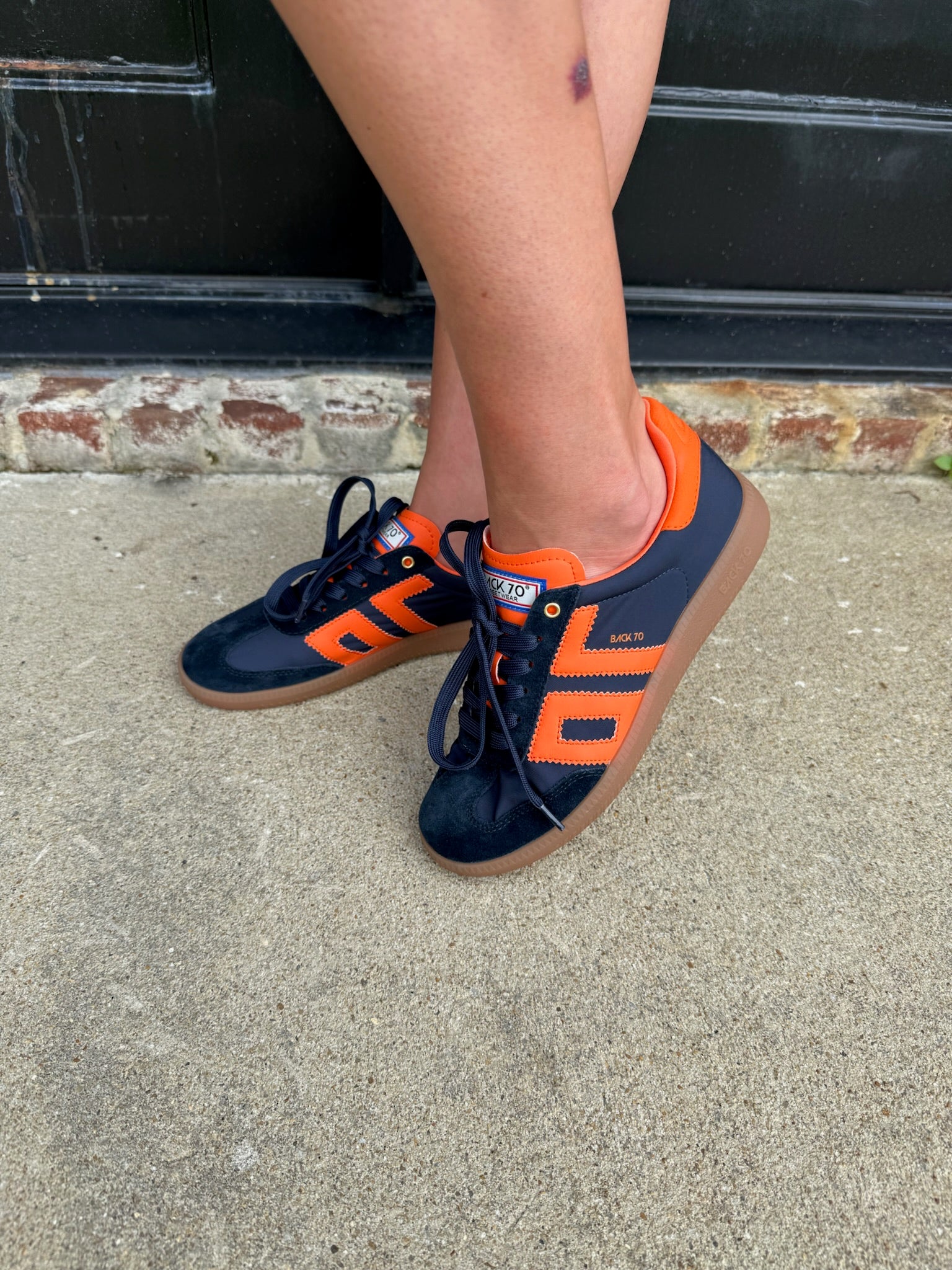 Take your style to the next level with our Ghost Back70 Orange/Navy sneaker! Featuring a bold orange and navy color scheme, these shoes will make a statement everywhere you go. Stay comfortable and trendy with our lightweight design.