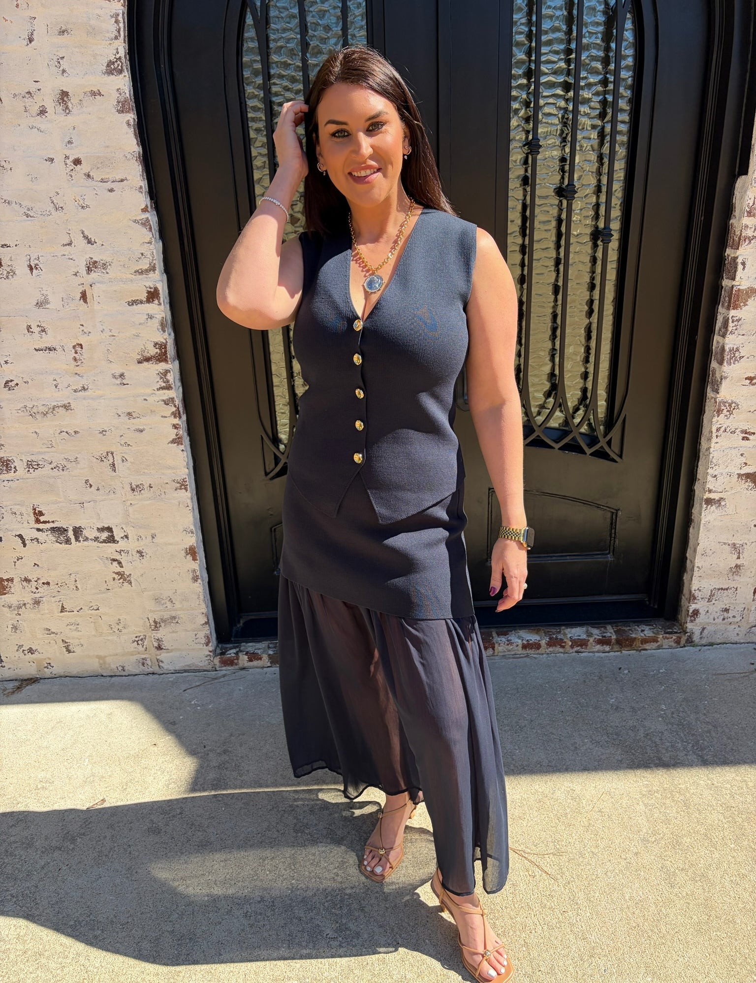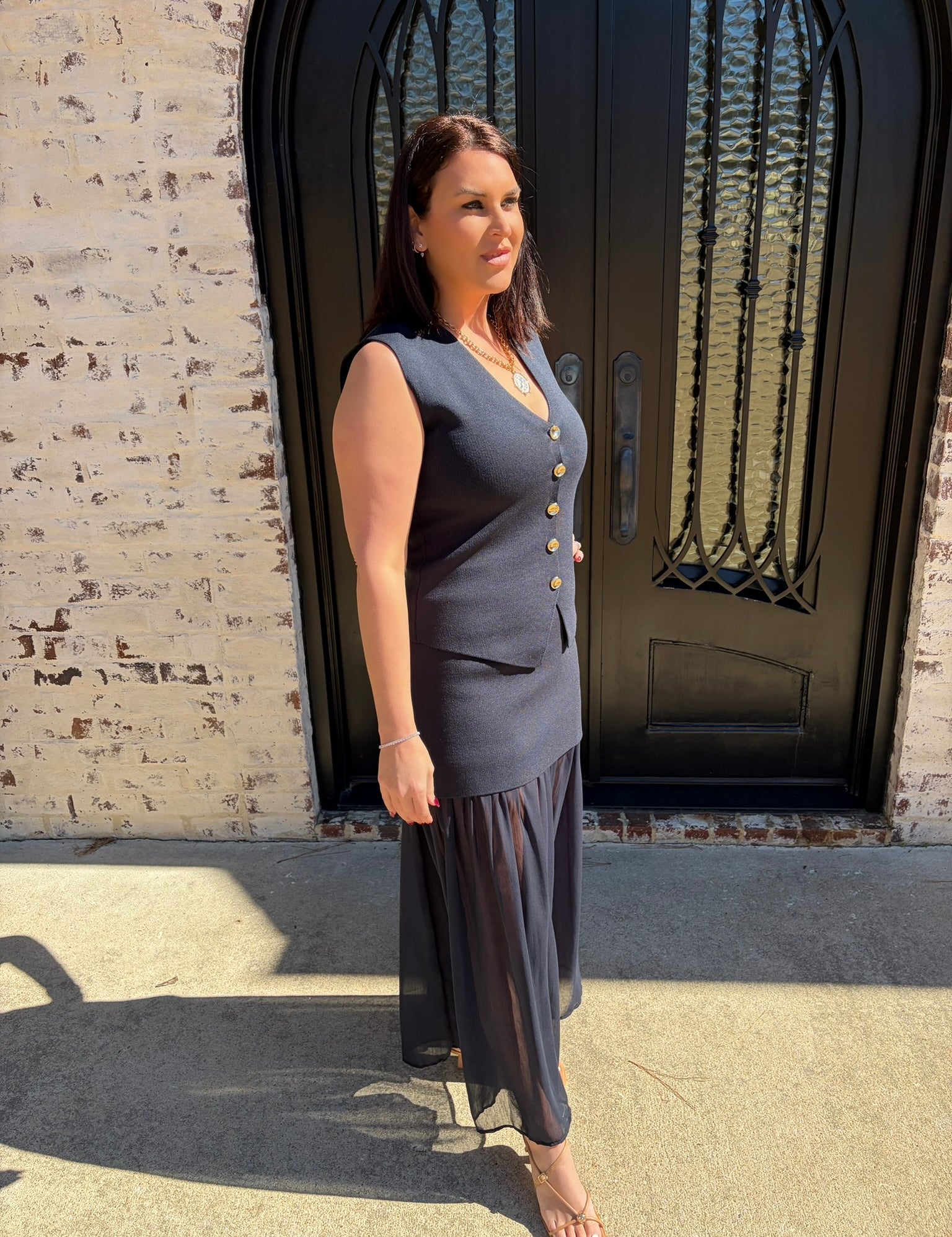 Kate Knit Button Top & Pleated Chiffon Midi Skirt Set