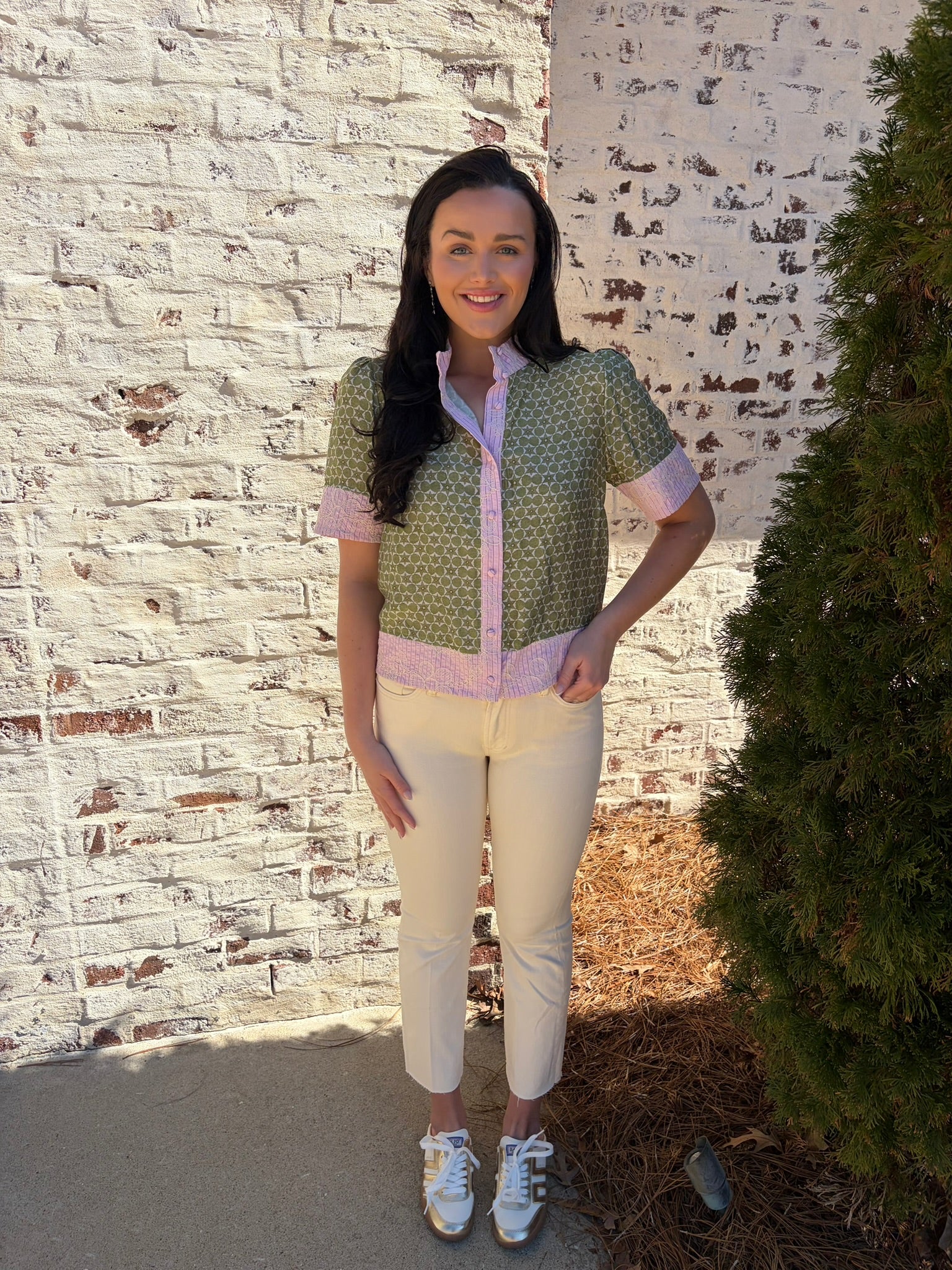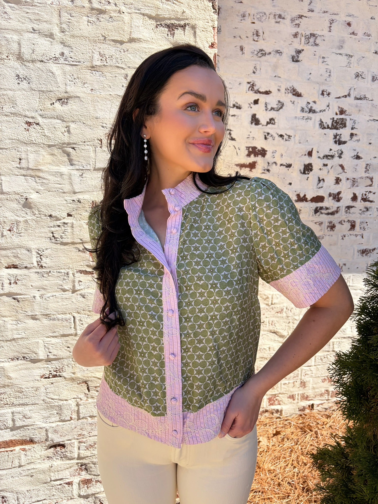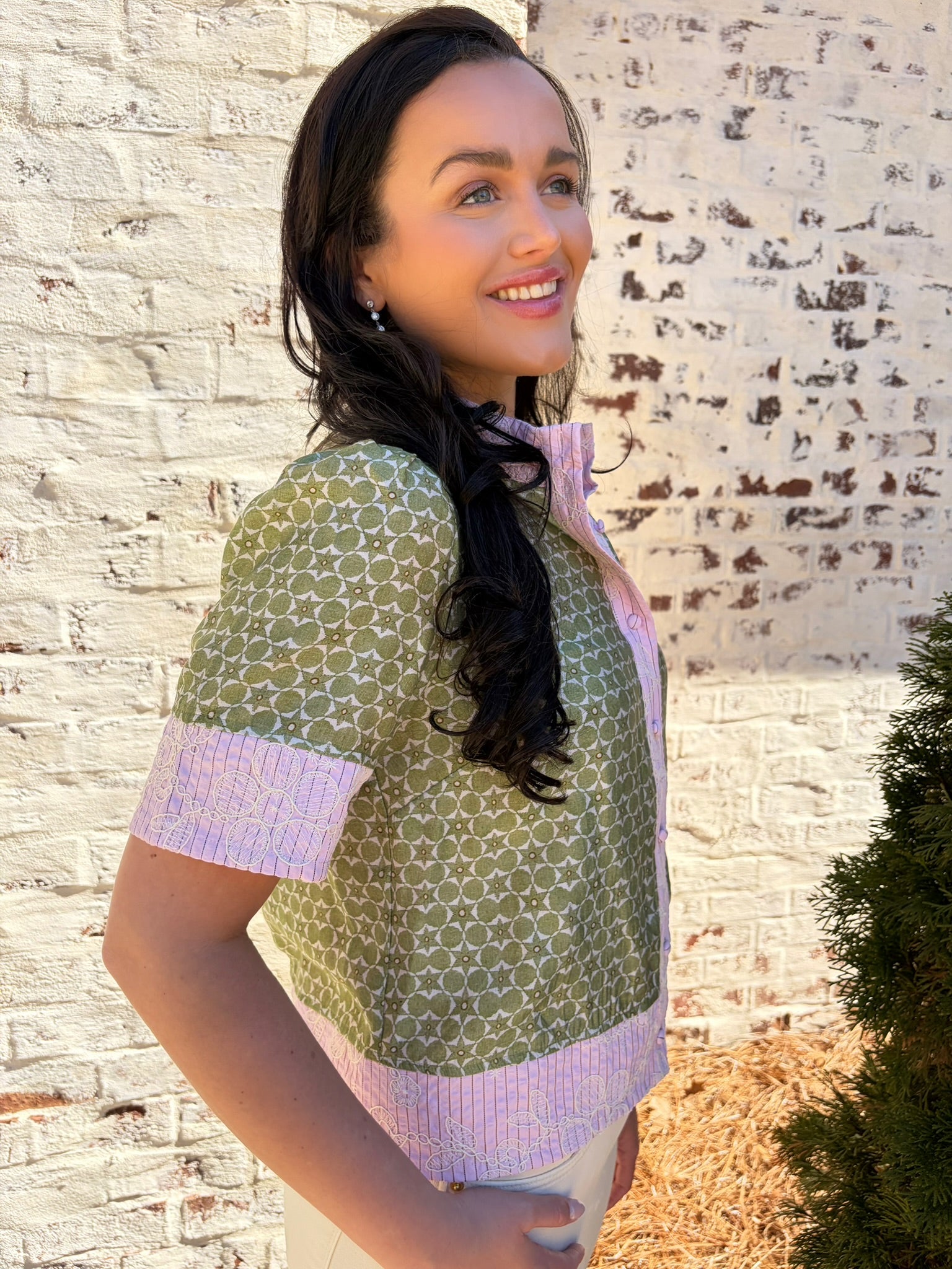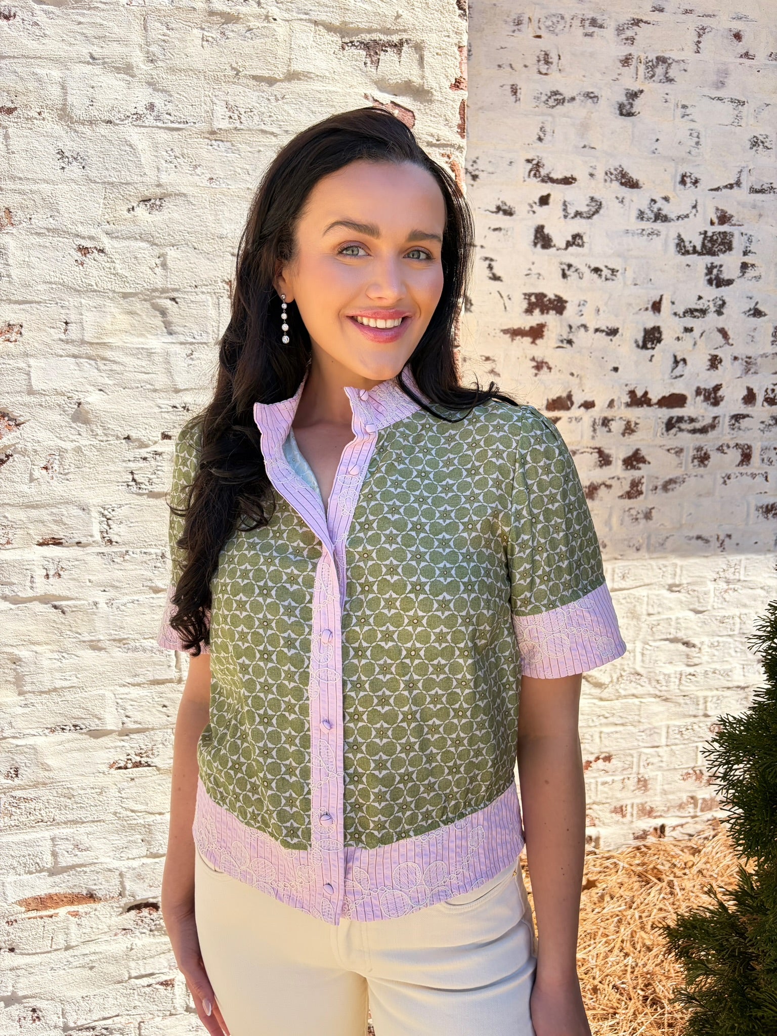 Fall in love with the Annabelle Floral Embroidered Top, a delightfully feminine piece that celebrates your unique style. This lovely green top is adorned with delicate floral embroidery that brings a touch of romance to every wear, while soft pink trim gracefully frames the sleeves and hem. The sweet design details create an enchanting look that's perfect for expressing your gentle, graceful side. Whether you're enjoying a garden party or simply want to add a hint of whimsy to your day, this charming top is sure to become a beloved favorite that makes you feel beautiful and confident.