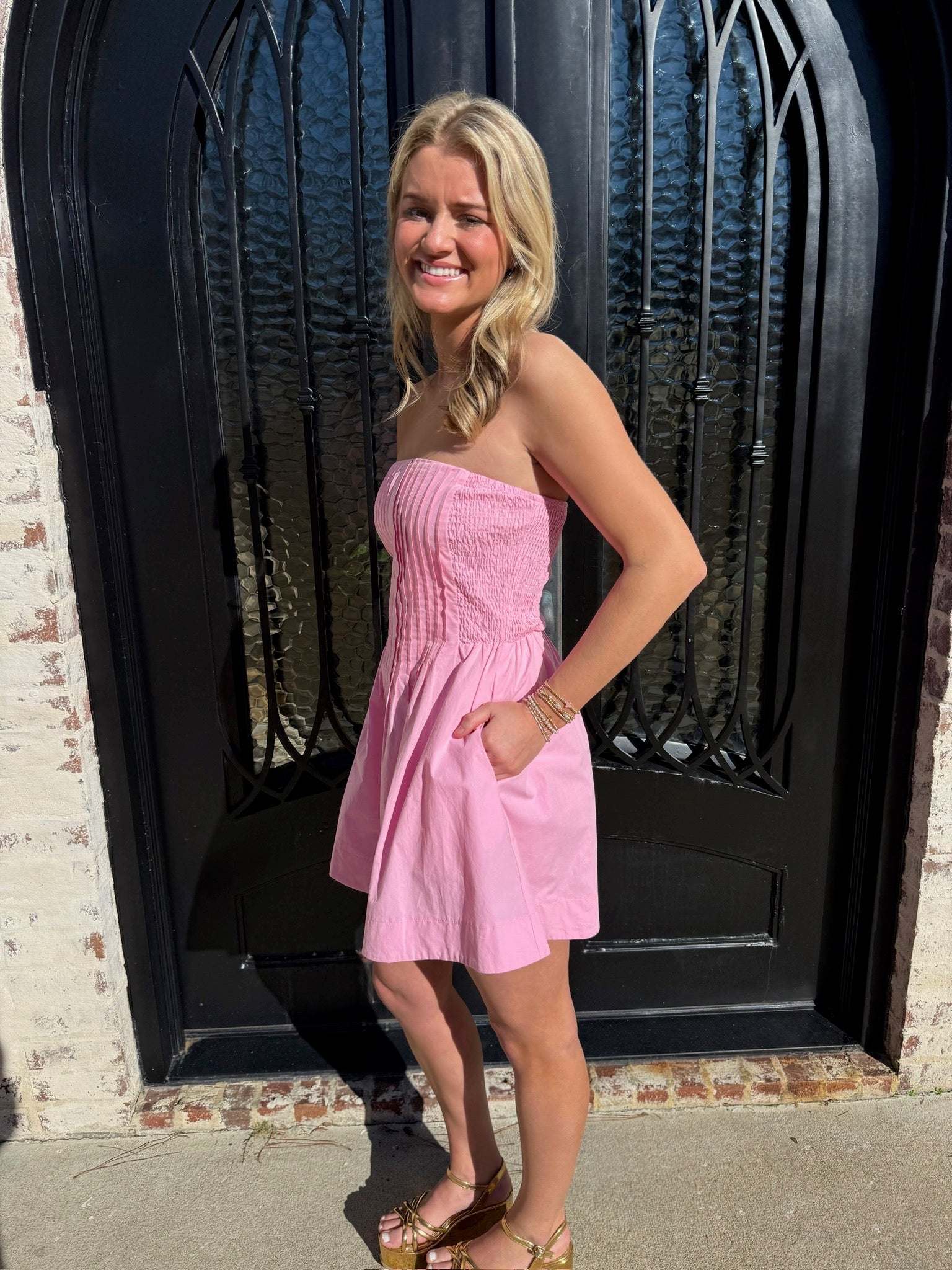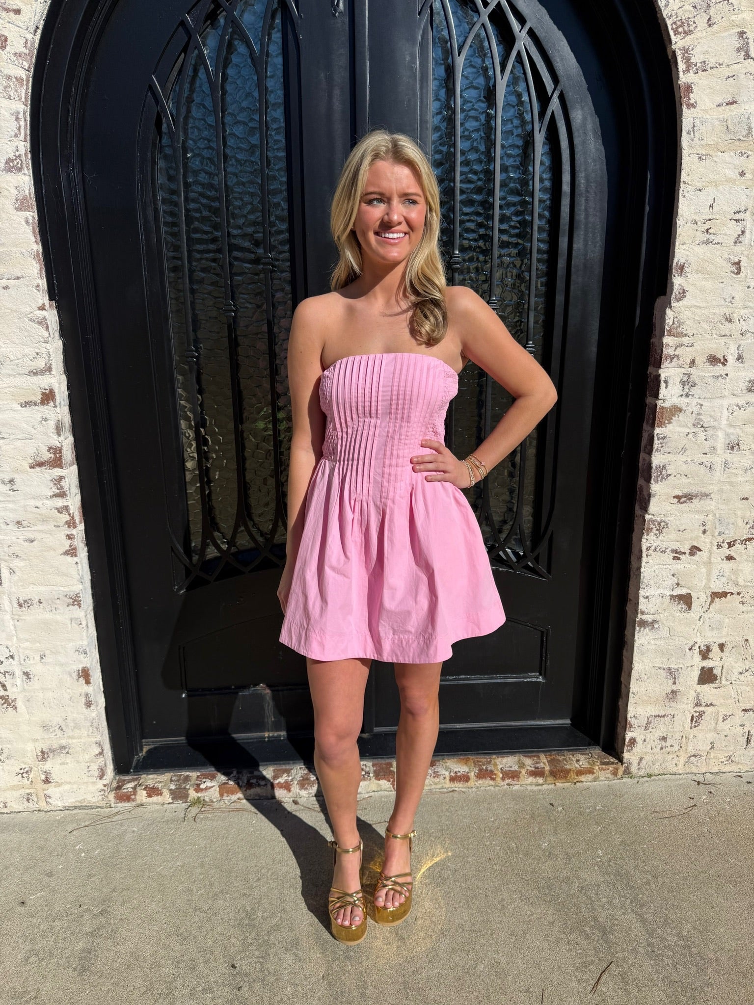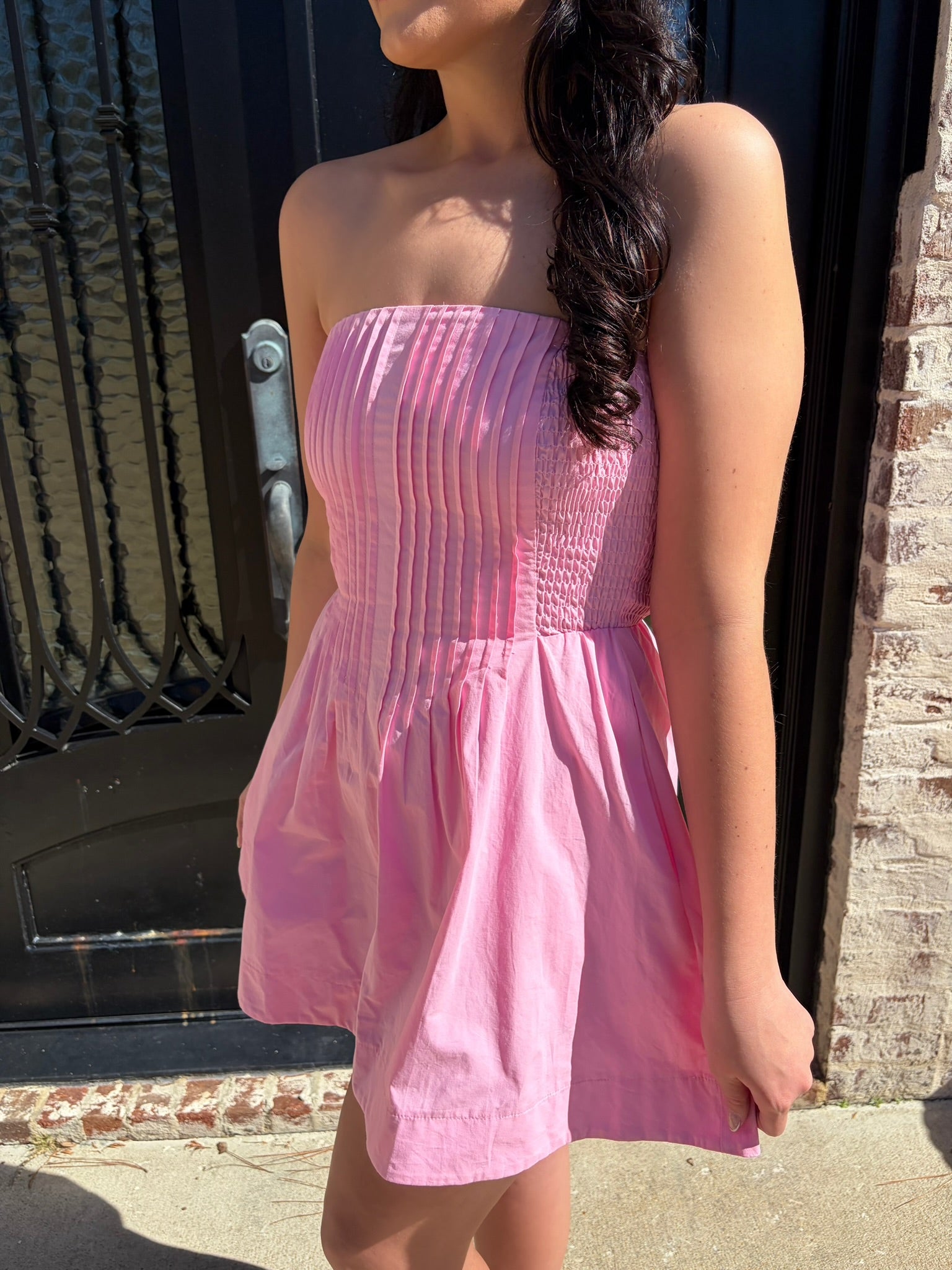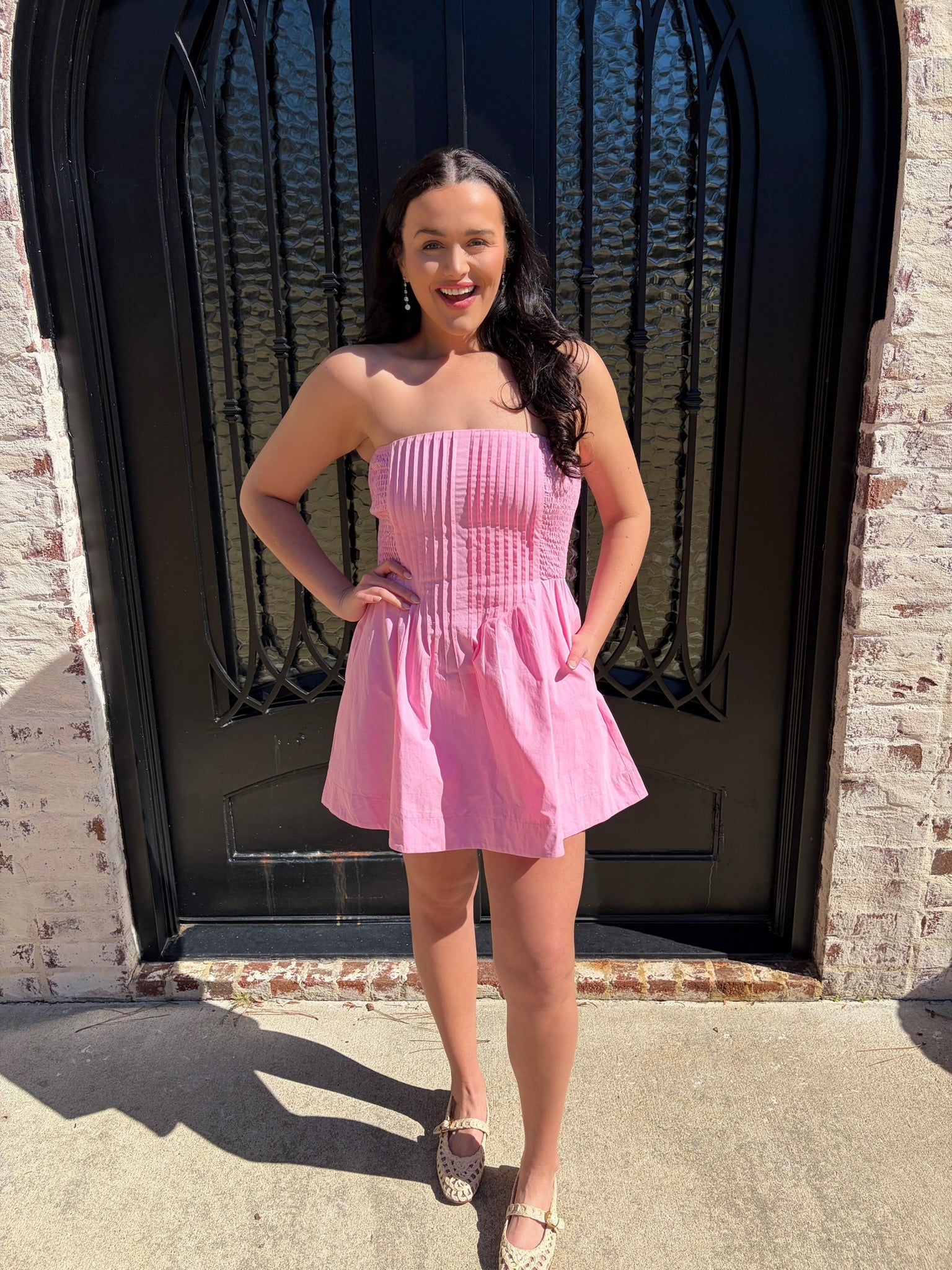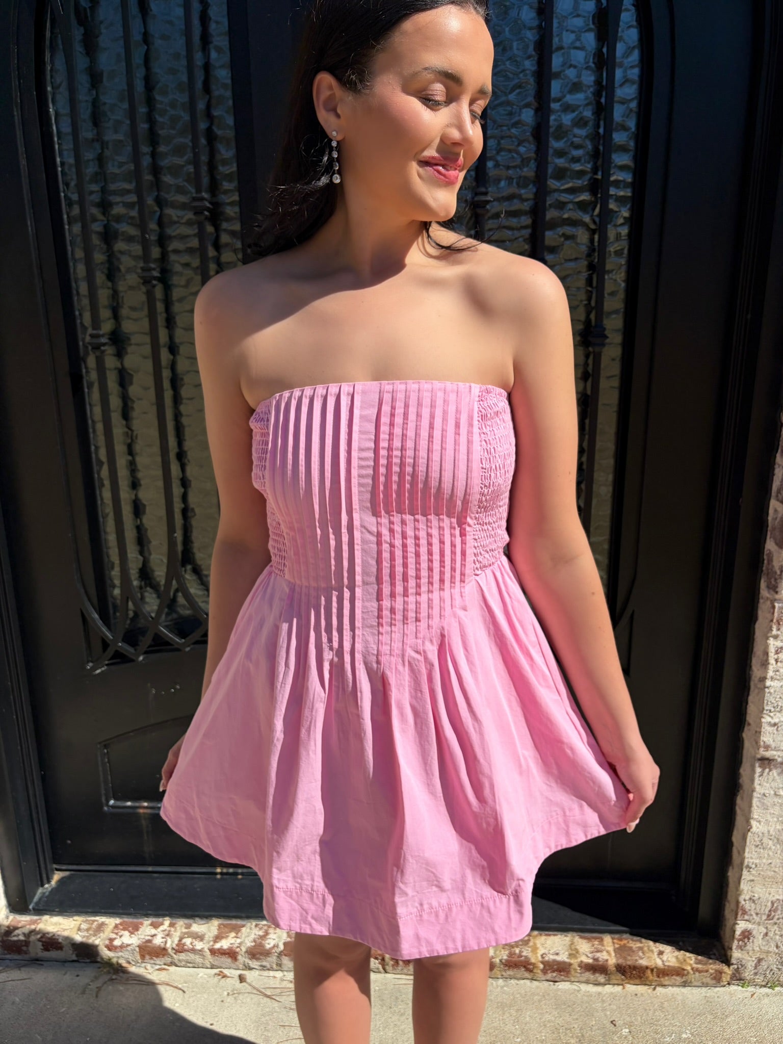 Embrace your inner radiance with the Astrid Dress in Pink! This charming cotton mini dress features delightful smocking and pleats, complemented by elegant spaghetti straps. Enjoy effortless style and comfort, perfect for sunlit adventures or evening gatherings. Step out and make a statement in this enchanting dress!