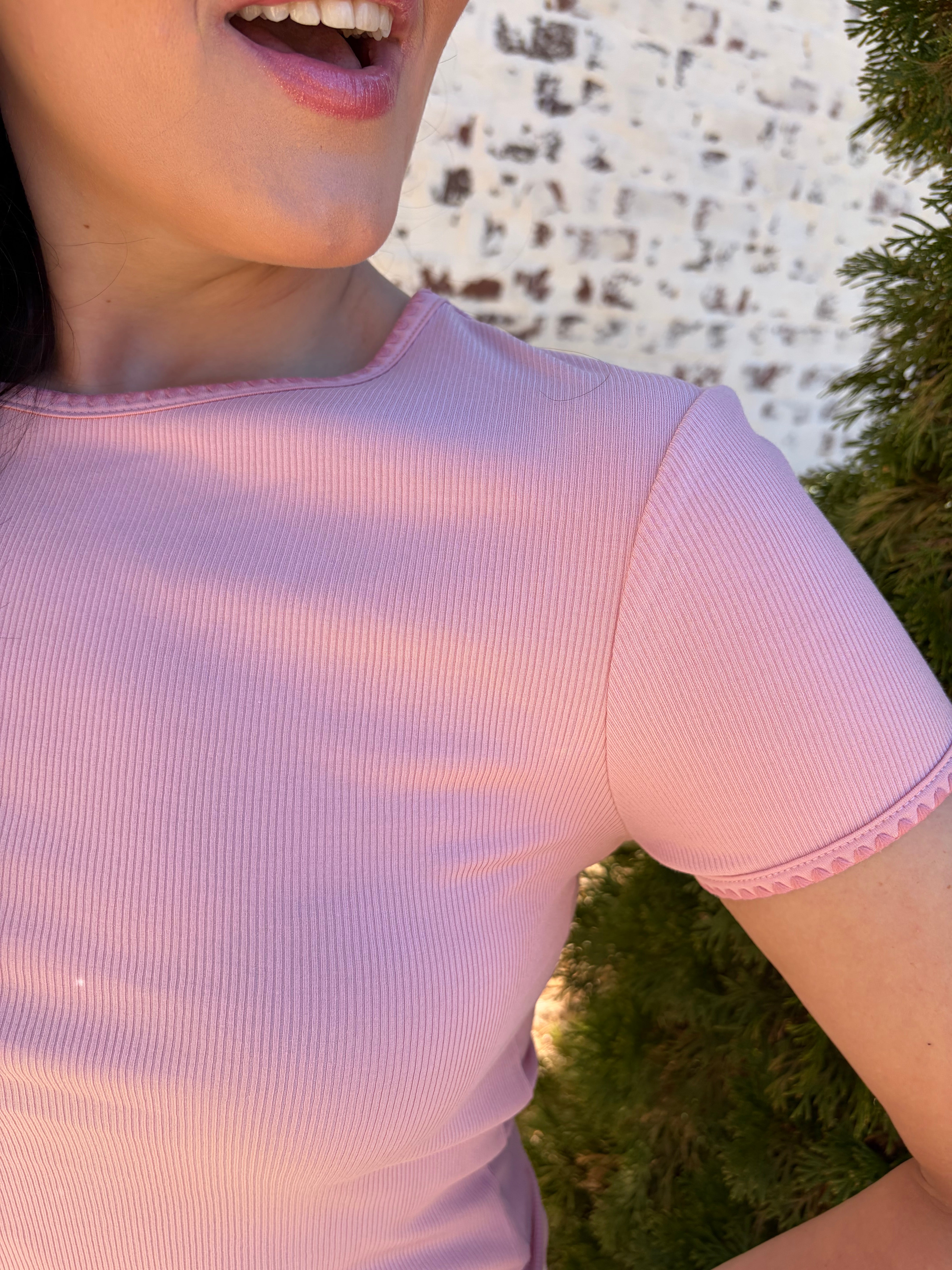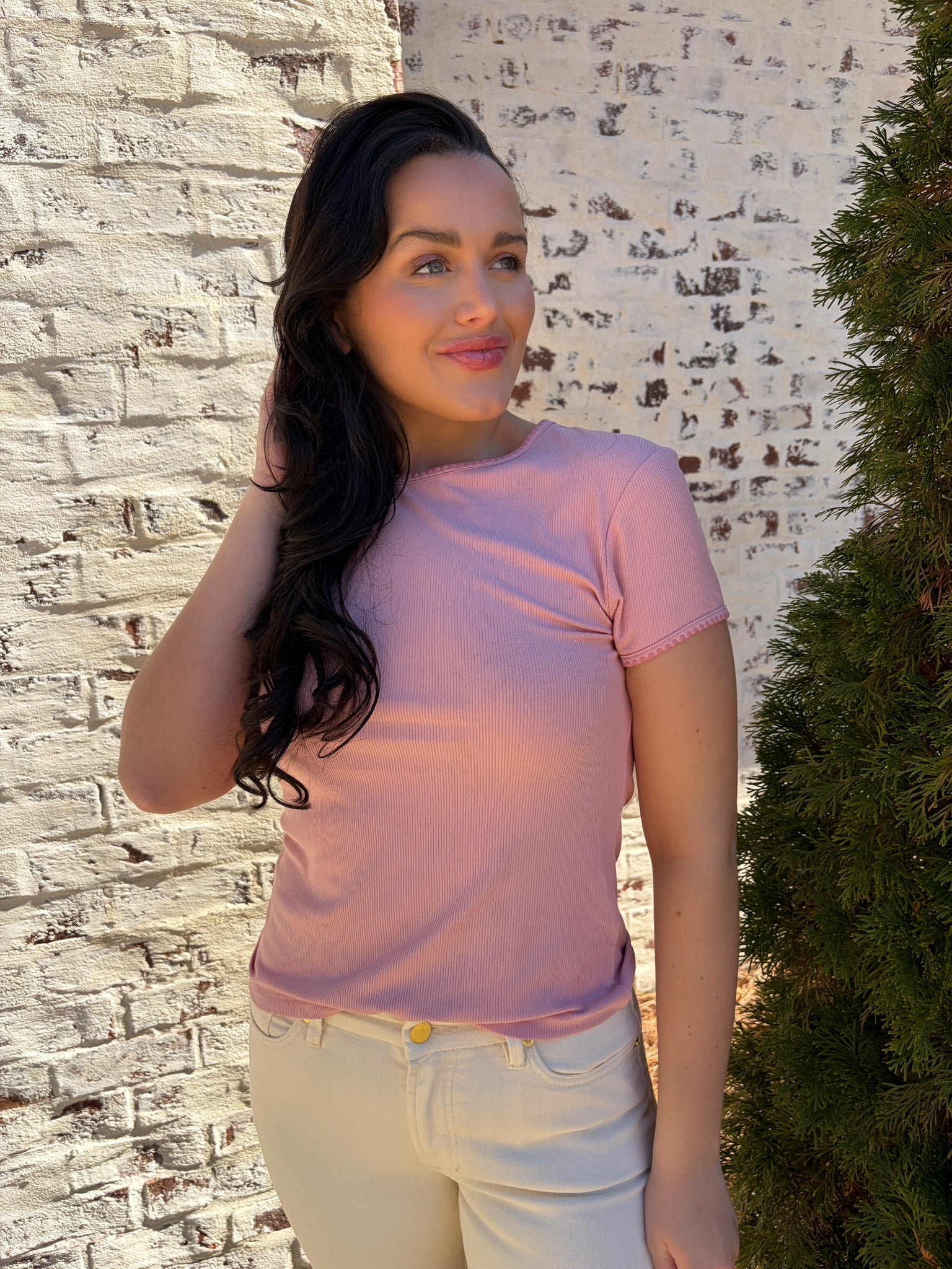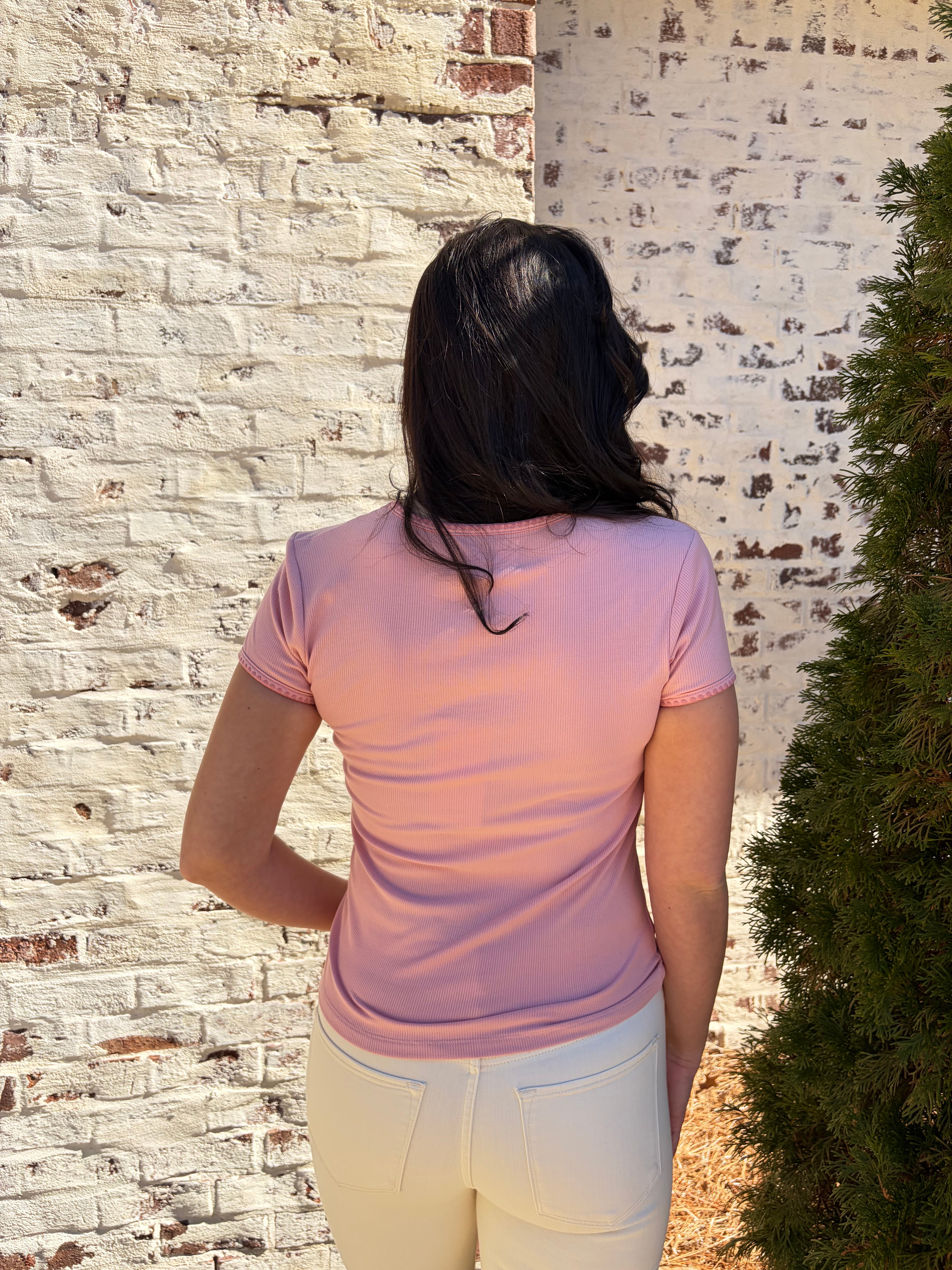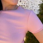 Meet the Dear John | Zuma—a playful crew neck tee that's anything but ordinary. This short-sleeve essential features a charming contrast scallop trim that adds a touch of whimsy to your everyday wardrobe. The delicate scalloped detailing frames the neckline with personality, making it perfect for those who love a little extra flair. Comfortable, versatile, and undeniably cute, it's the kind of piece that makes getting dressed feel like fun.