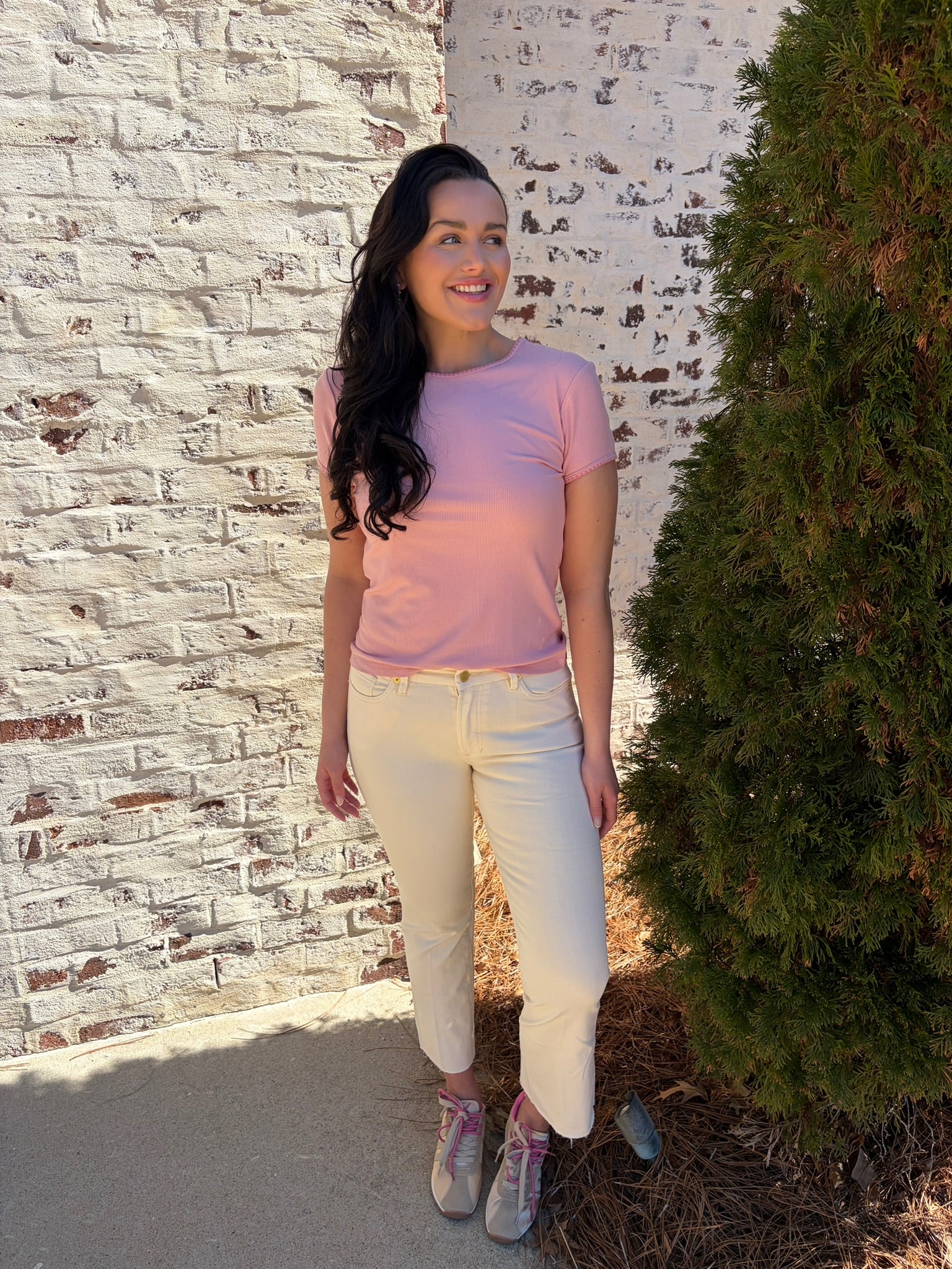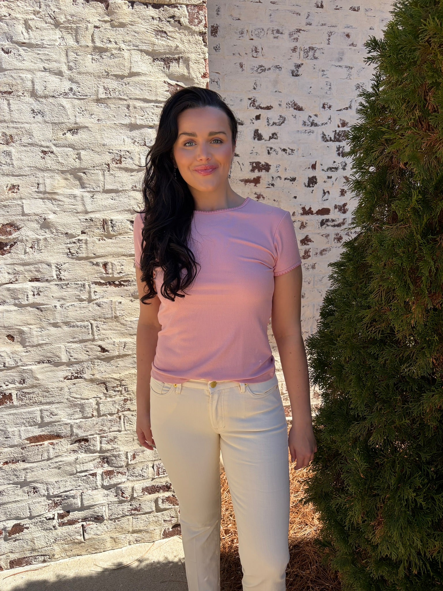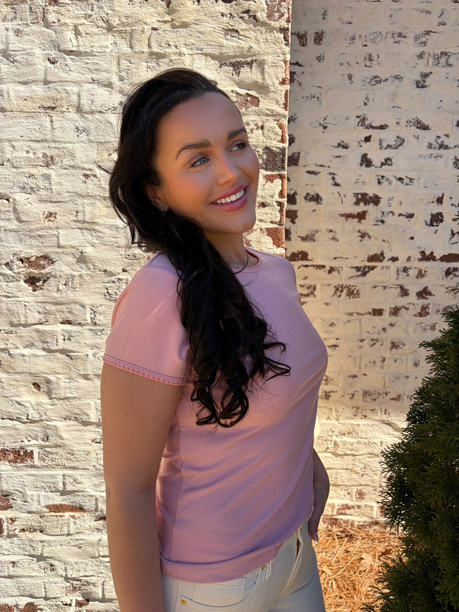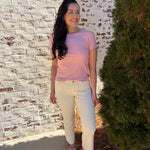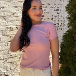 Meet the Dear John | Zuma—a playful crew neck tee that's anything but ordinary. This short-sleeve essential features a charming contrast scallop trim that adds a touch of whimsy to your everyday wardrobe. The delicate scalloped detailing frames the neckline with personality, making it perfect for those who love a little extra flair. Comfortable, versatile, and undeniably cute, it's the kind of piece that makes getting dressed feel like fun.