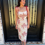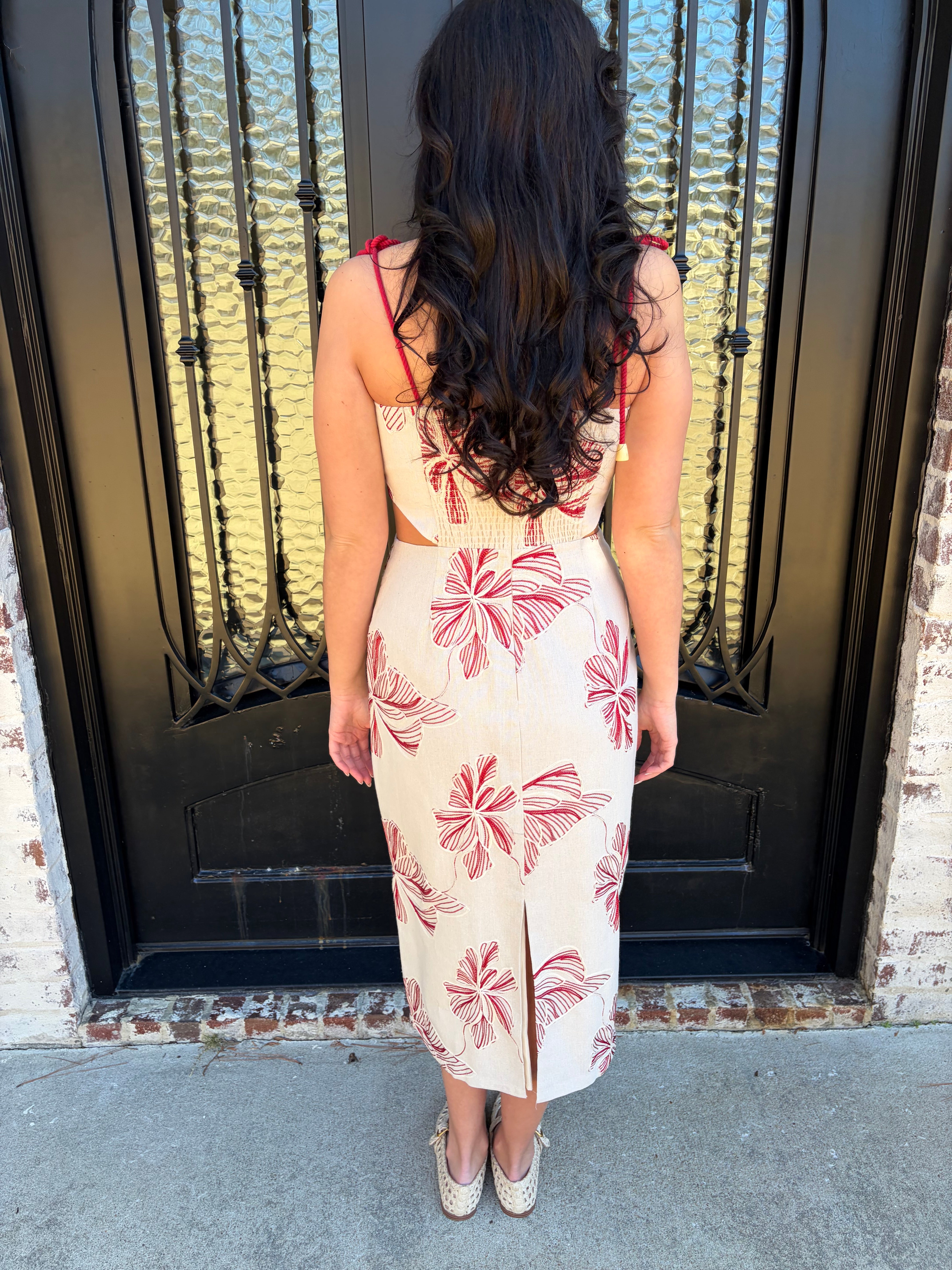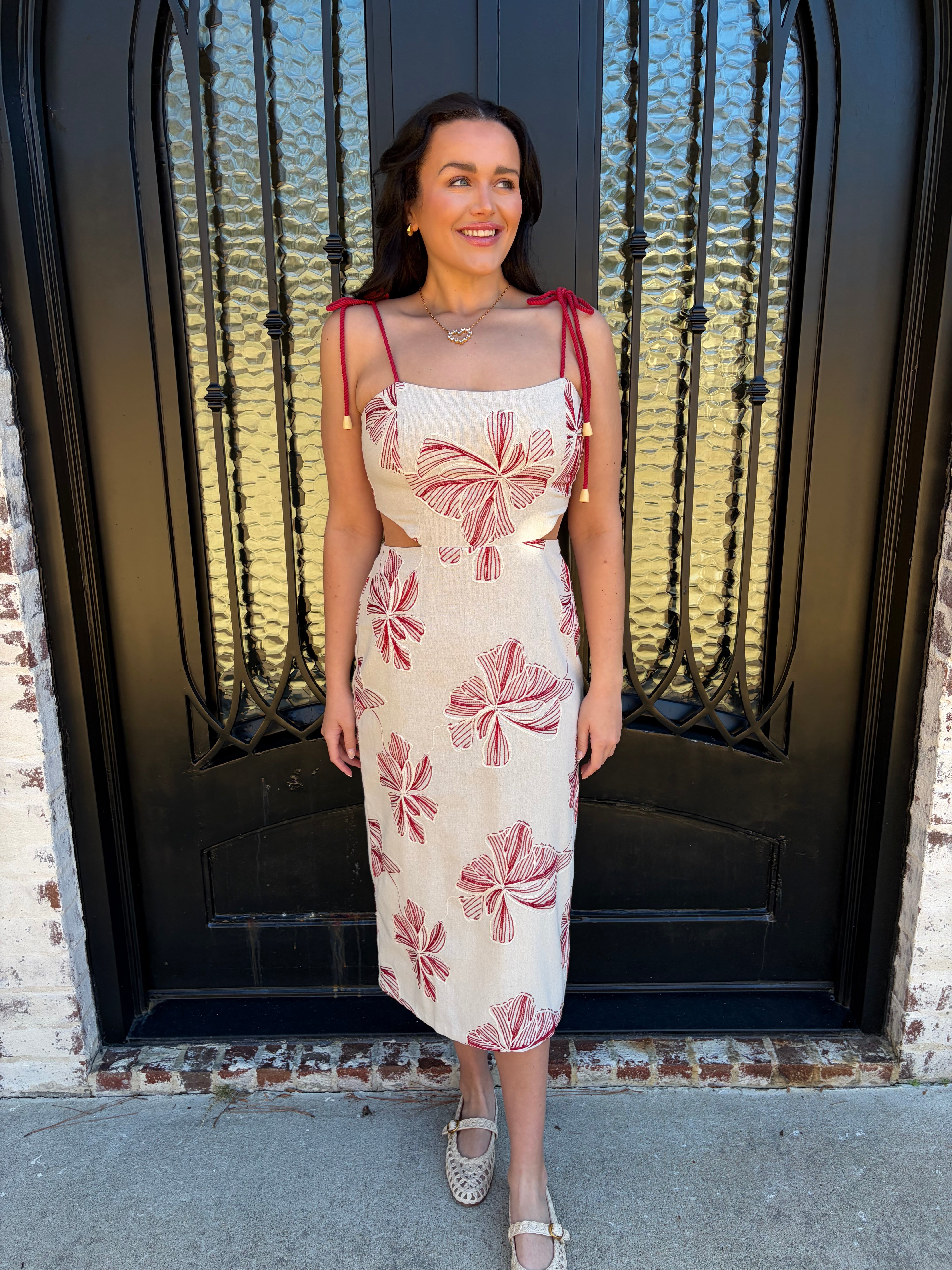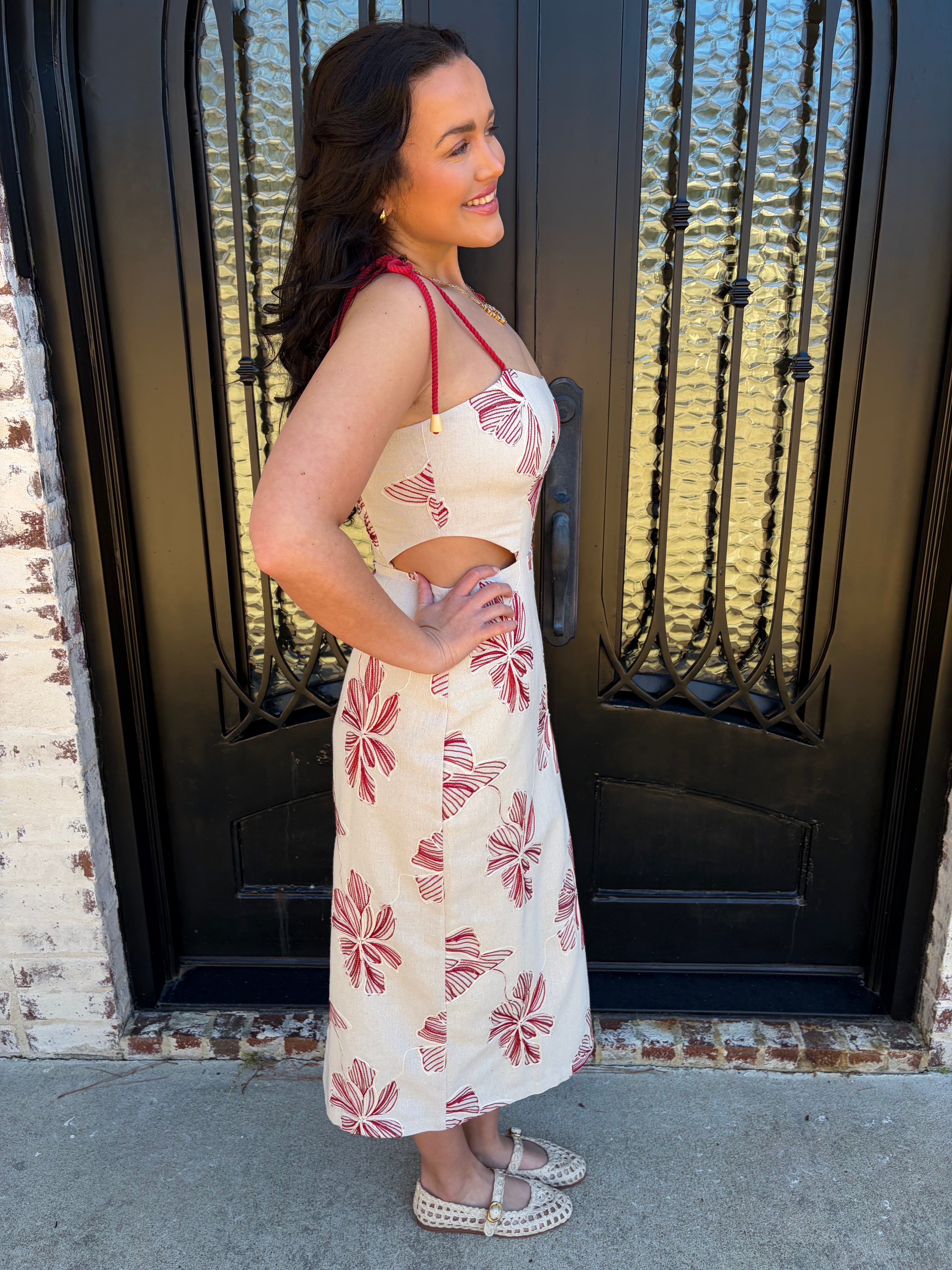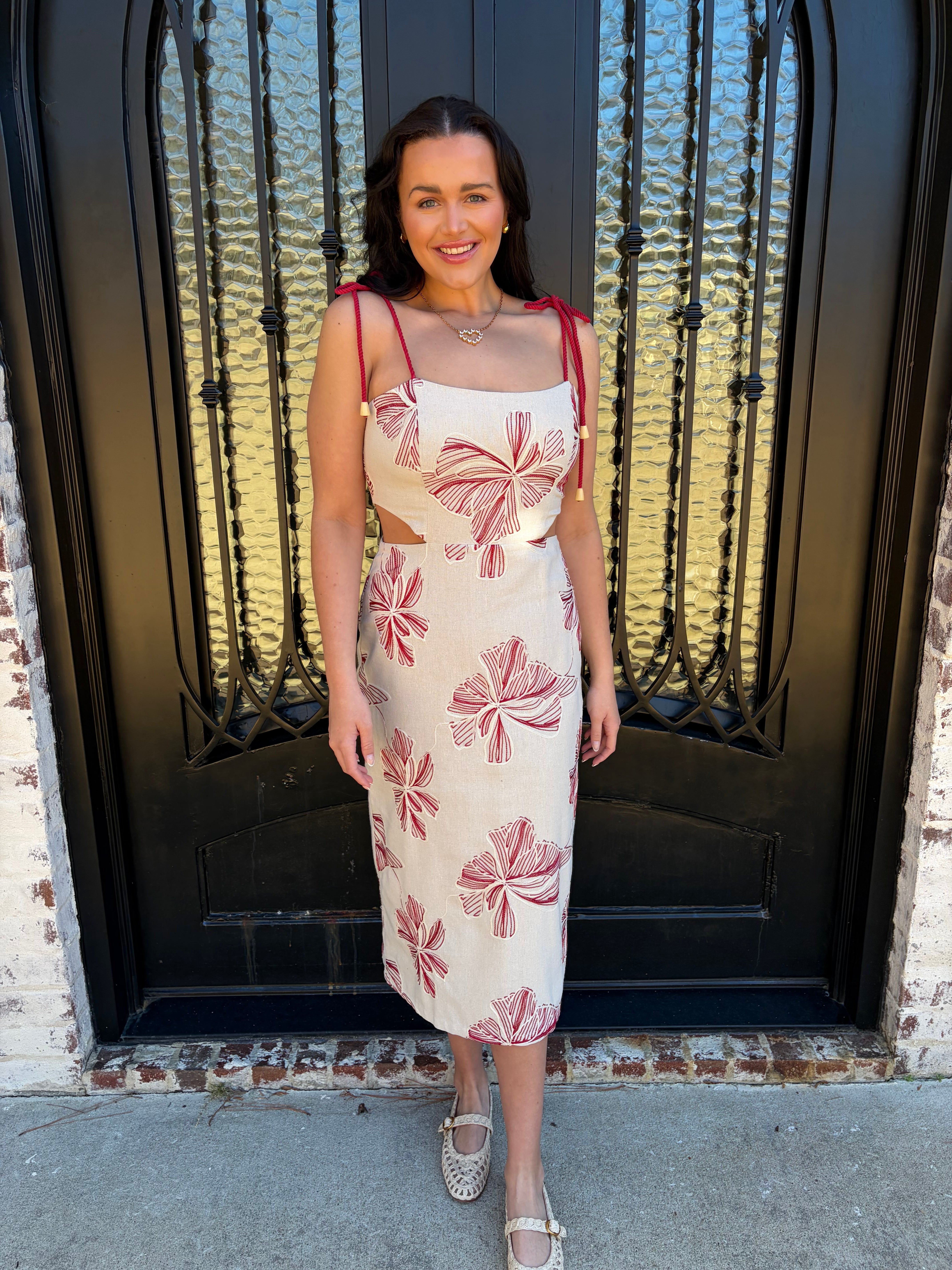 This embroidered midi dress is your ticket to effortless resort elegance. Rendered in a striking red and tan palette, the intricate embroidery work commands attention while the strategic cutouts and rope strap ties deliver contemporary flair. The column silhouette skims your frame beautifully, offering both comfort and confidence whether you're by the pool or exploring sun-soaked destinations. Versatile enough for spring gatherings yet perfect for summer beach escapes, this piece transitions seamlessly from day to night. The adjustable ties ensure a custom fit that moves with you, making it an essential addition to any warm-weather wardrobe.