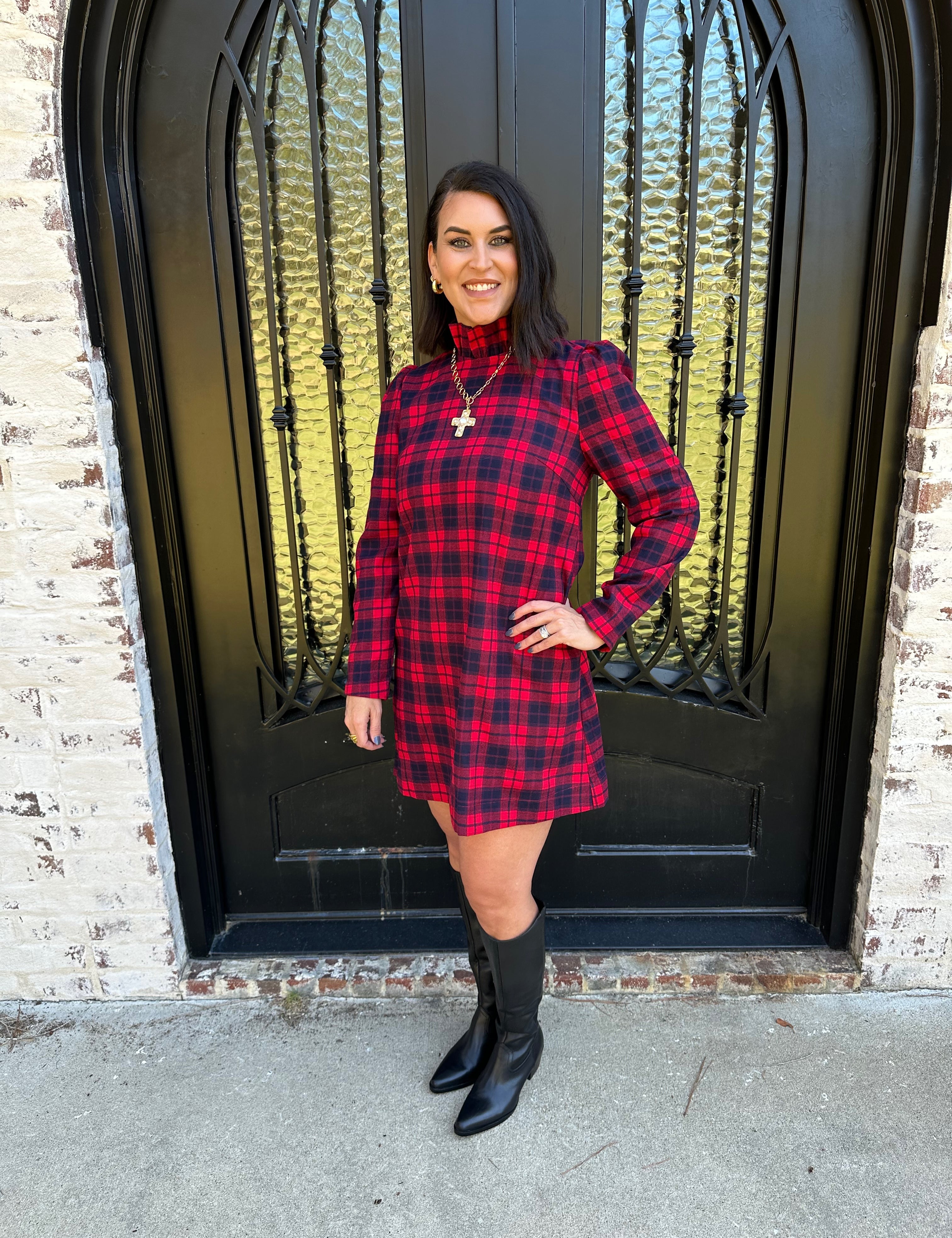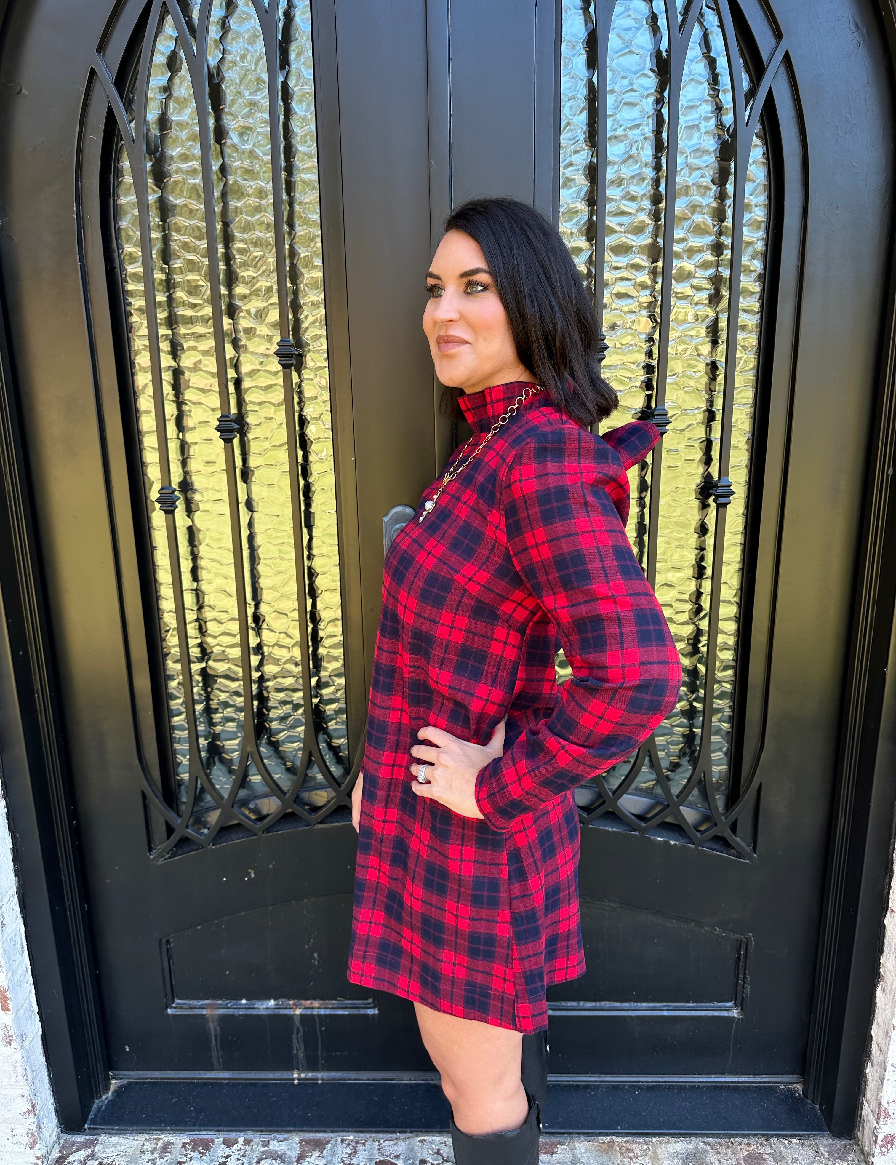 Plaid Mini Dress with Back Tie in Red