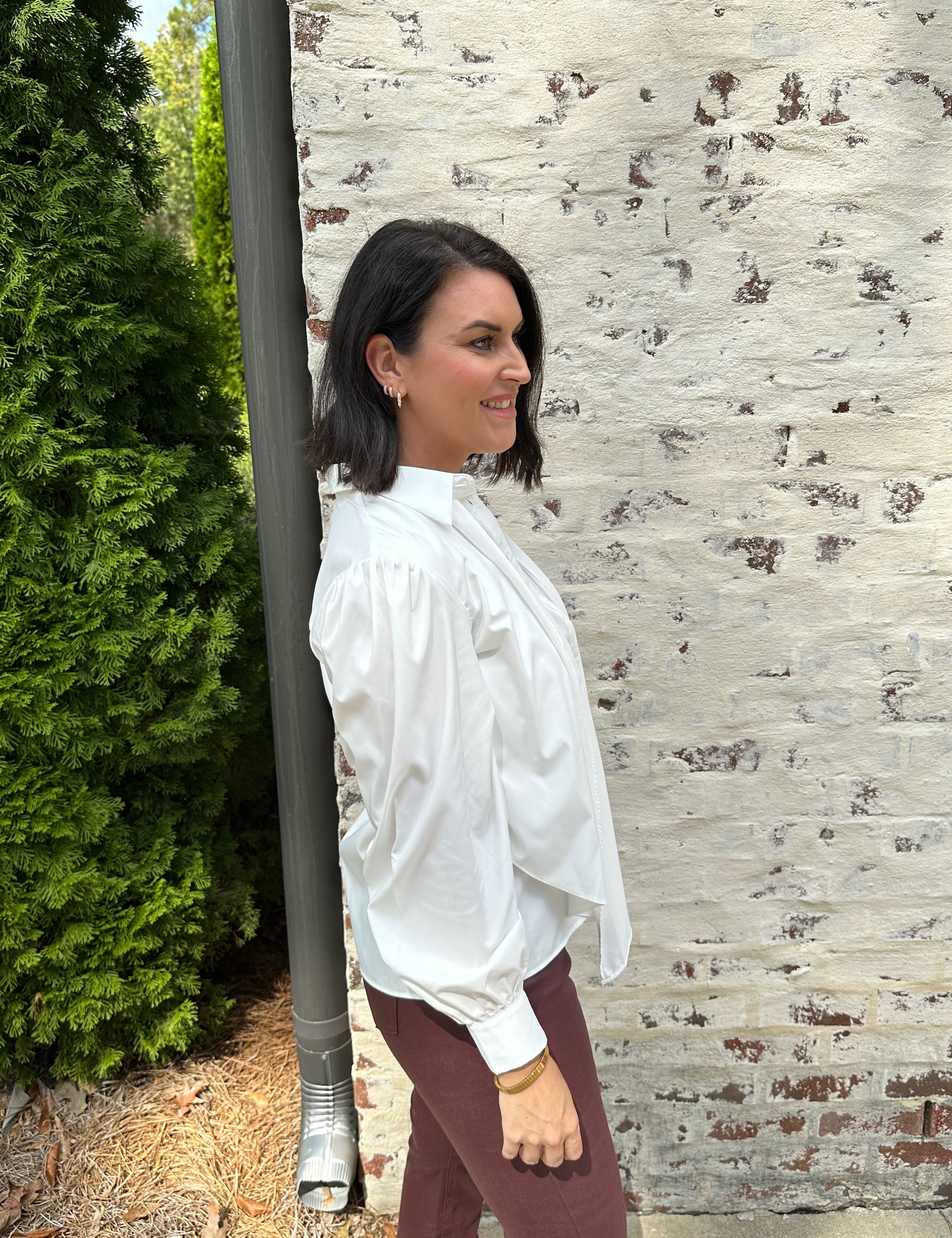 Michela Ruffle Button Down Top in Pearl