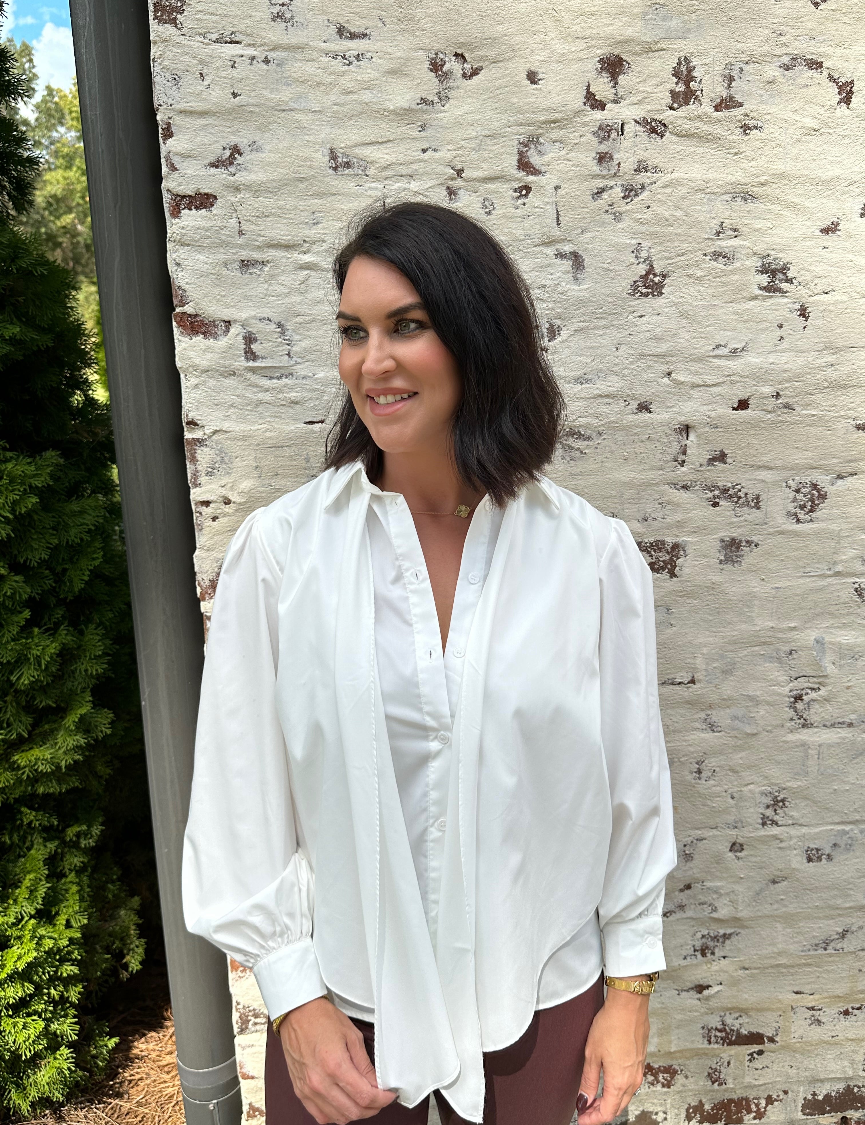 Shaw Front Tie Button Down Shirt in Off White