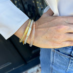 Mindful Glamour® Ritual: Pause. Breathe. Slip on each BIBI bangle focusing on each color: gold, for warmth and strength, white gold for clarity, and rose gold for gratitude. Think of each bead as a connection and reminder throughout your day.