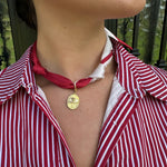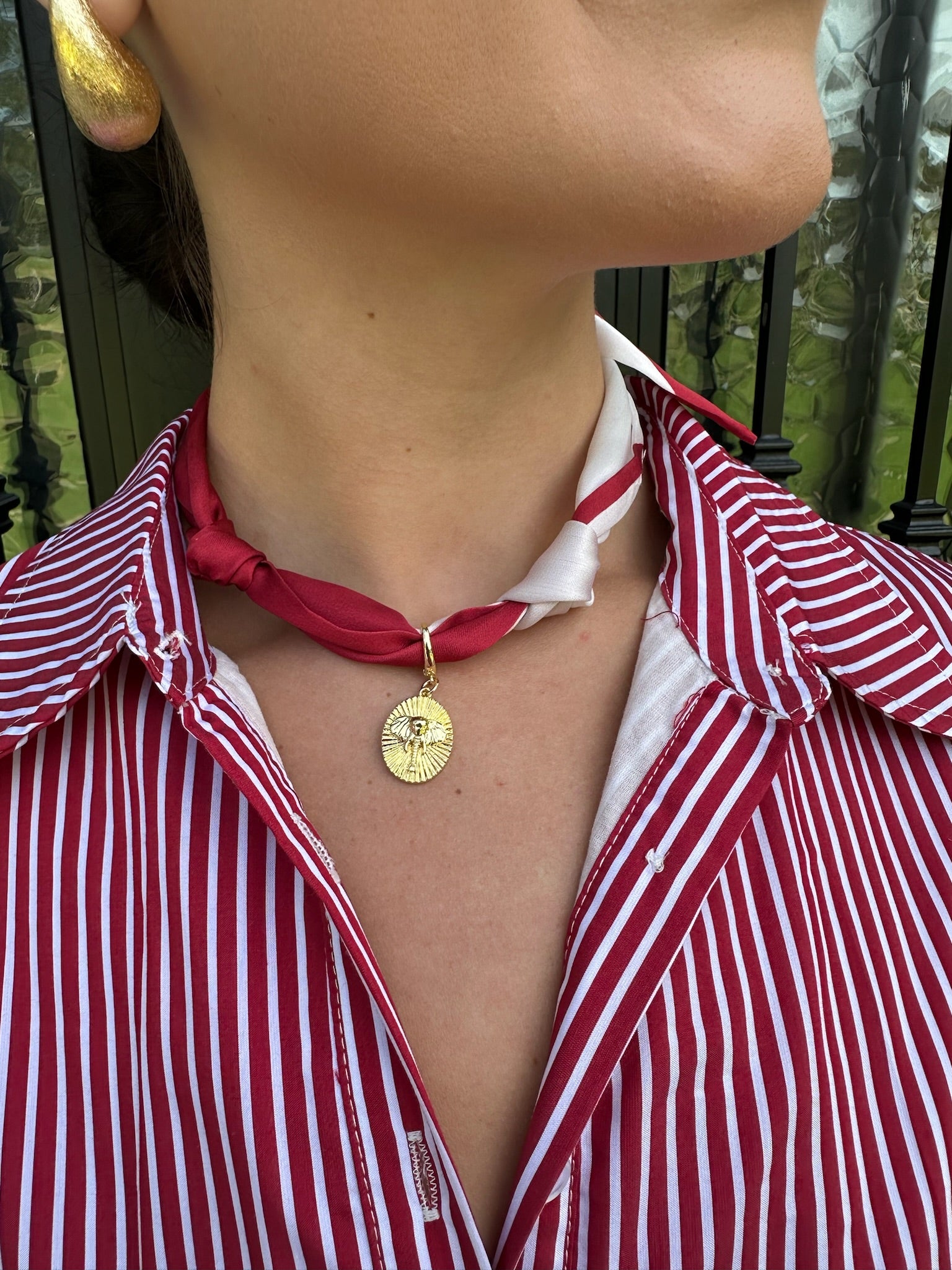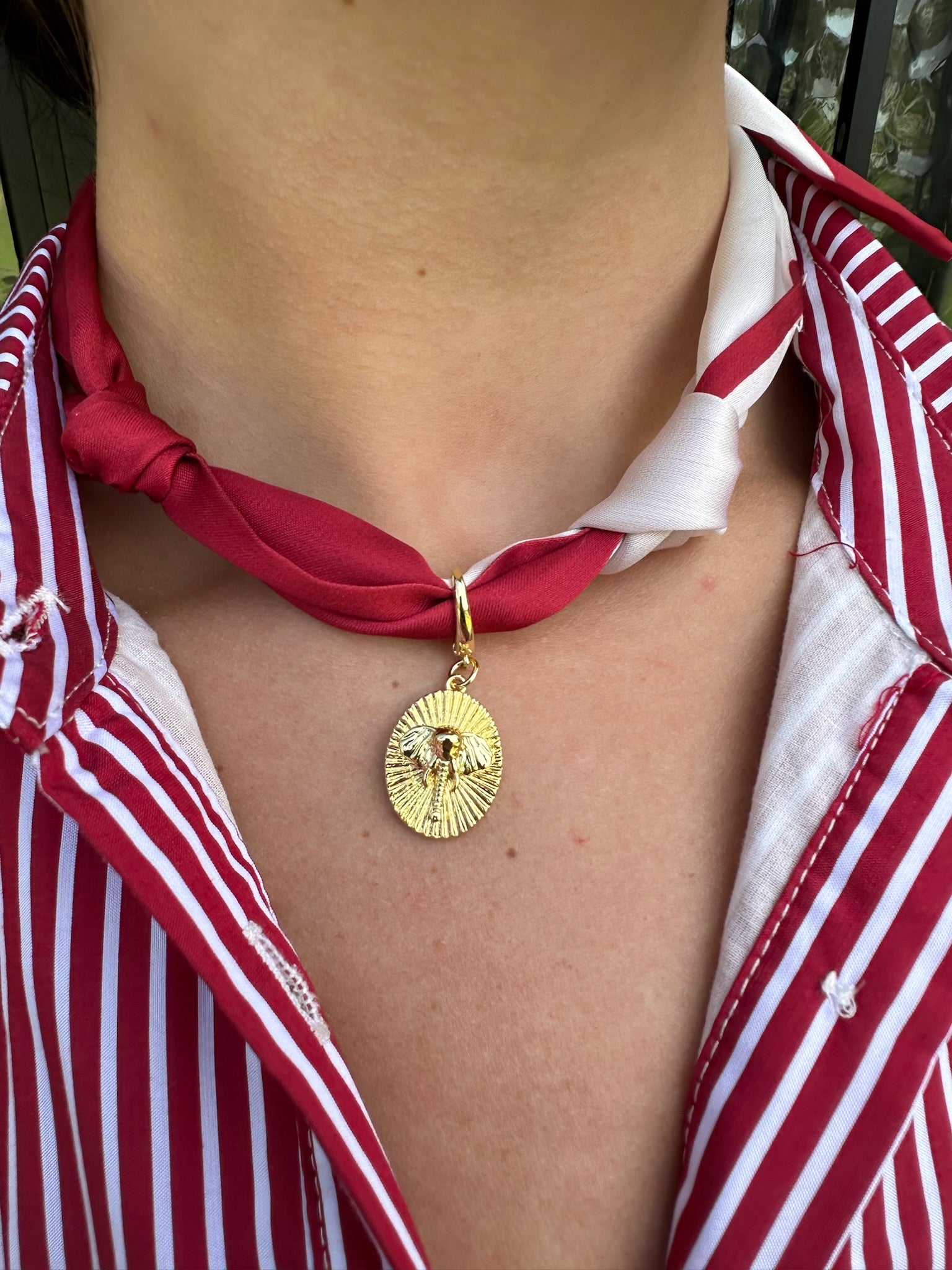 Scarf Necklace in Red with Gold Elephant Charm Pendant
