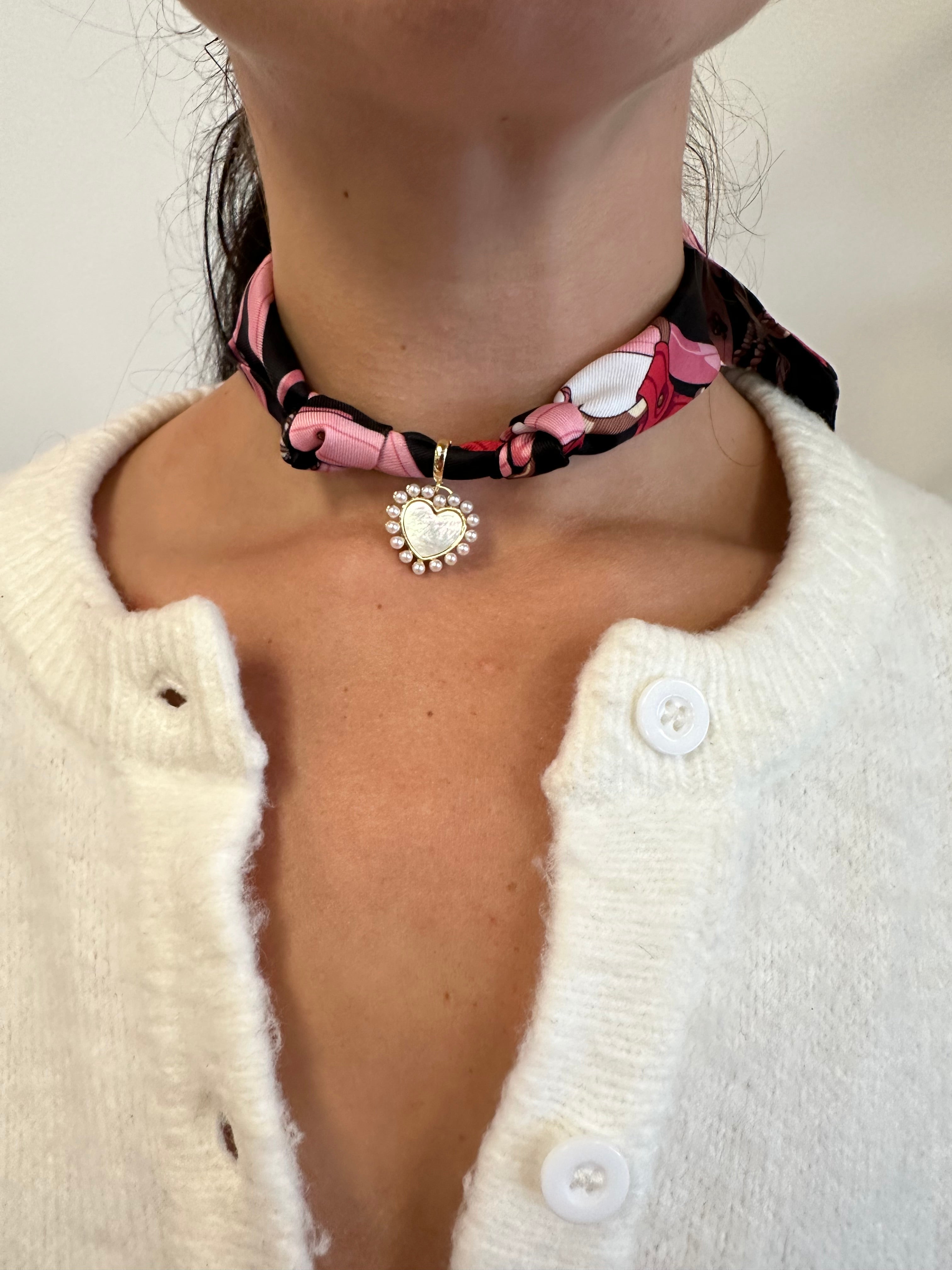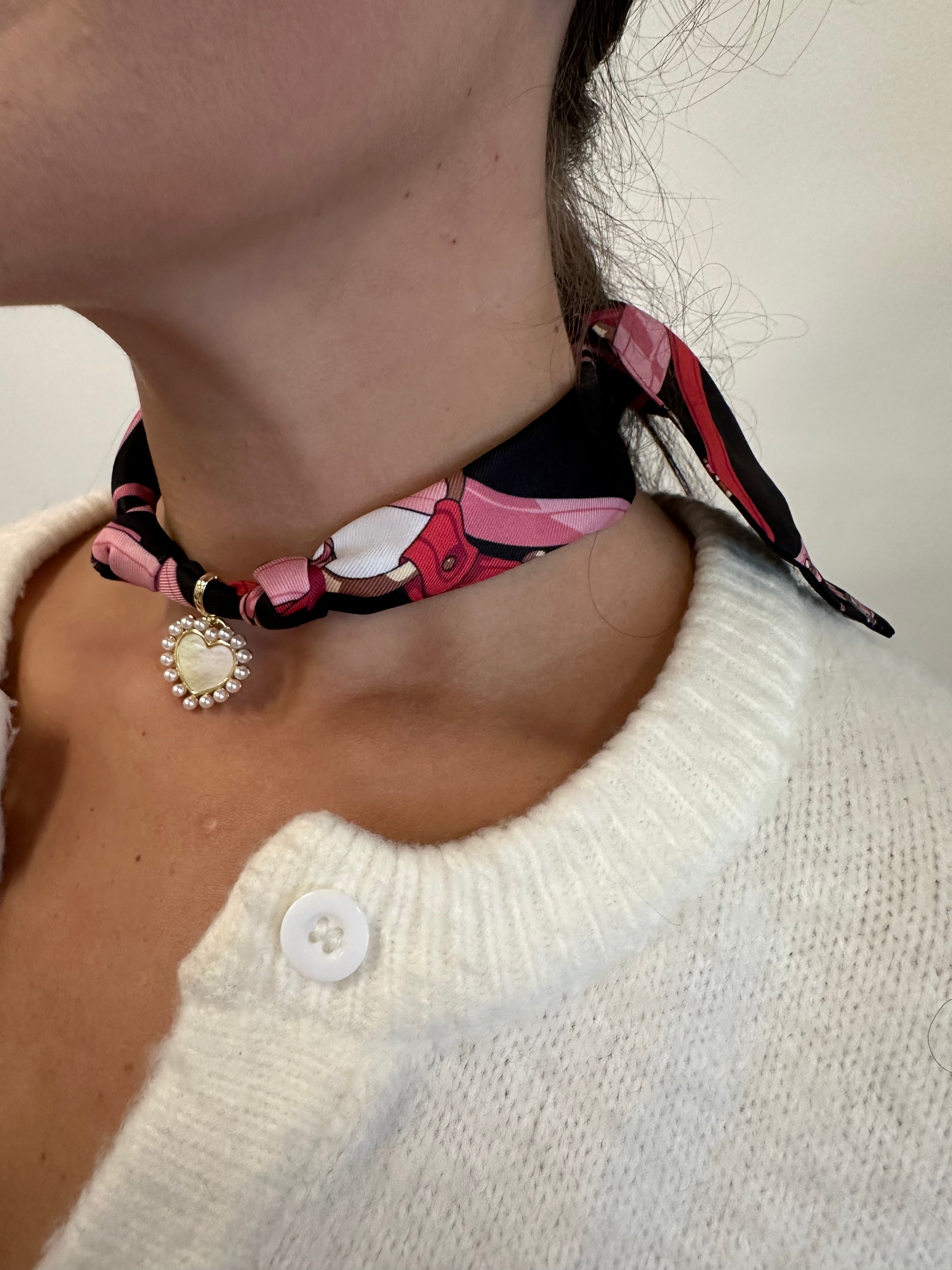 Add a touch of elegance and romance to your look with this Scarf Necklace featuring a small bubble-textured heart pendant. The soft scarf material drapes gracefully while the charming heart detail creates a subtle statement, perfect for enhancing any outfit with effortless style and unique sophistication.