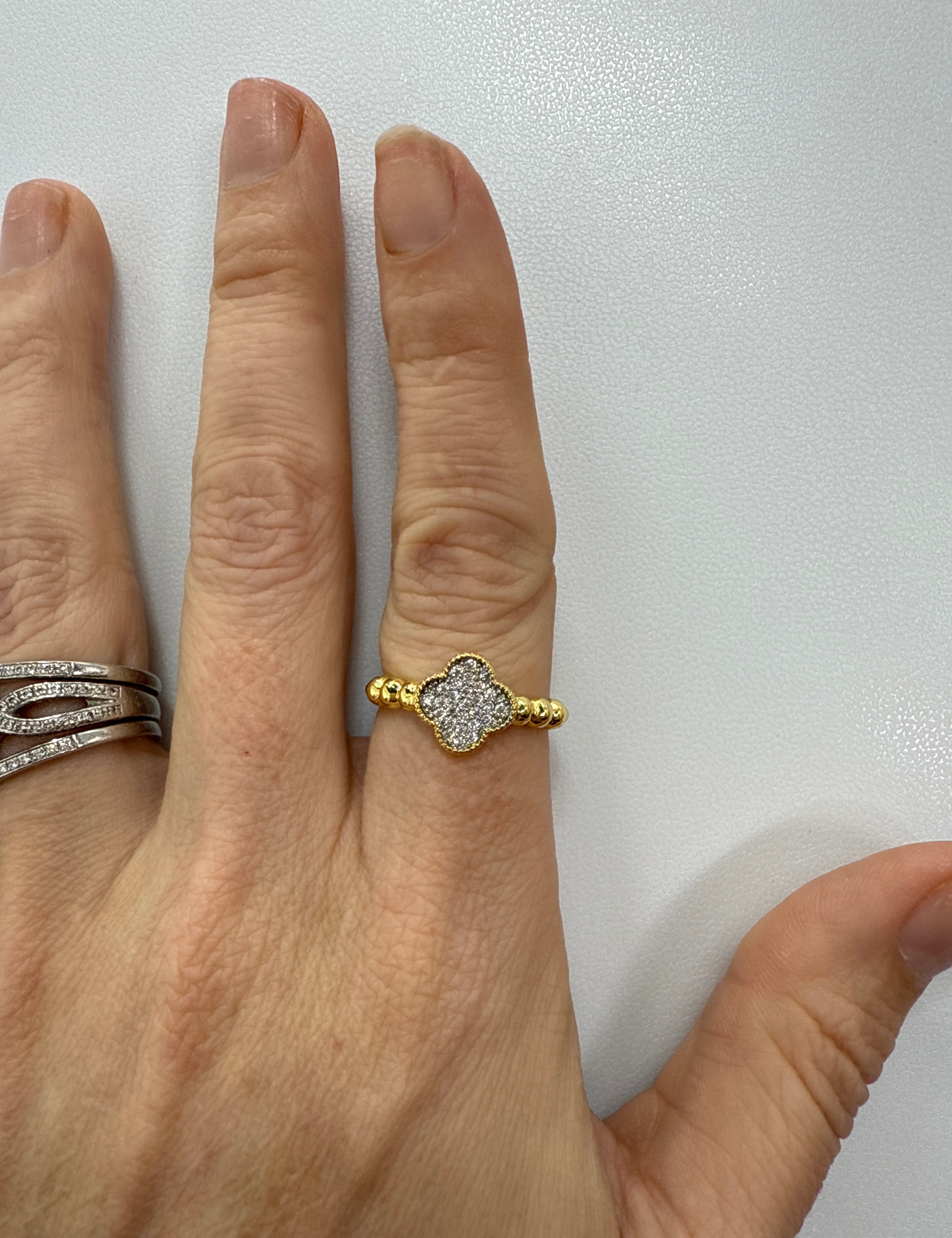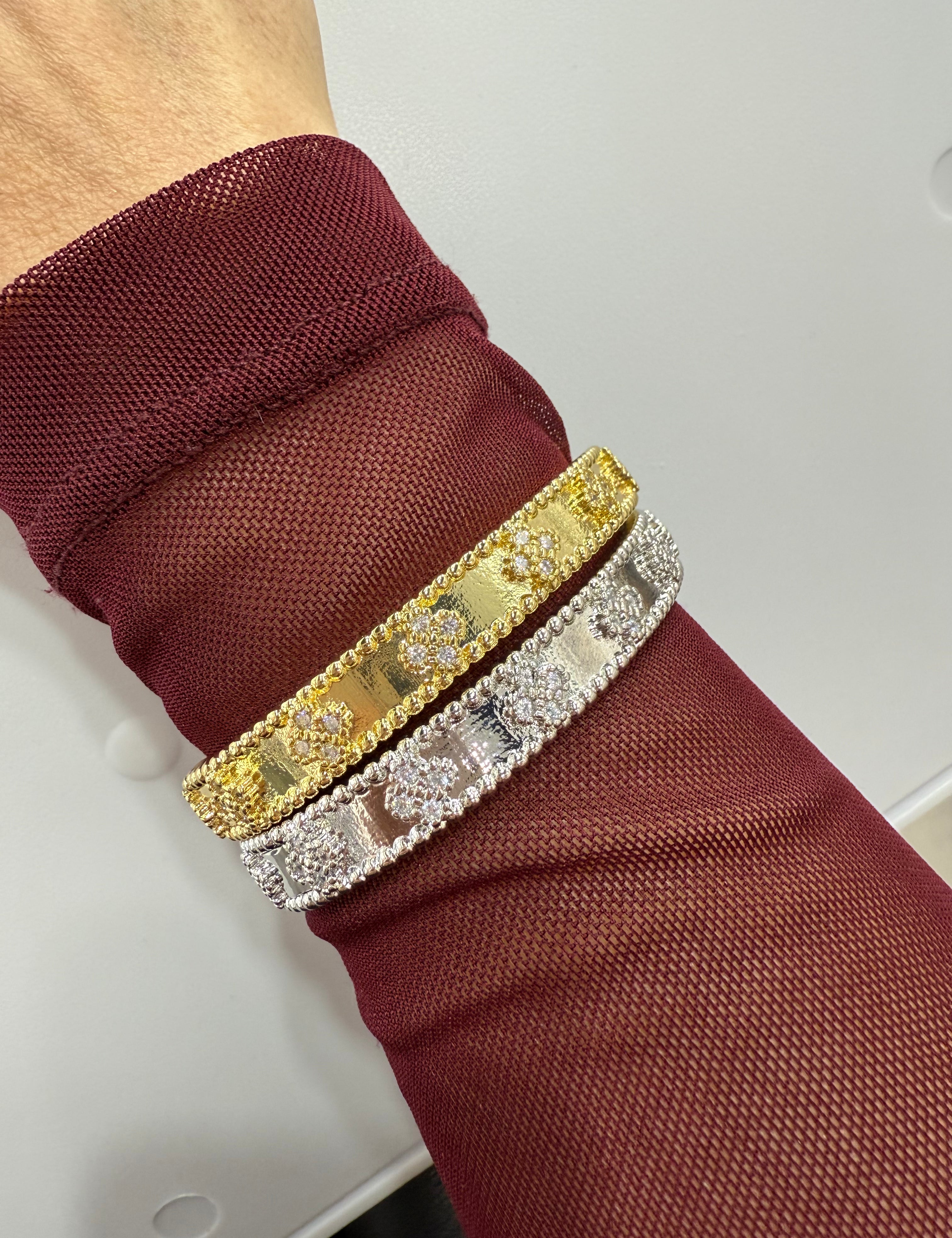 Diamond Clover Perlee Cuff Bracelet in Gold and Silver