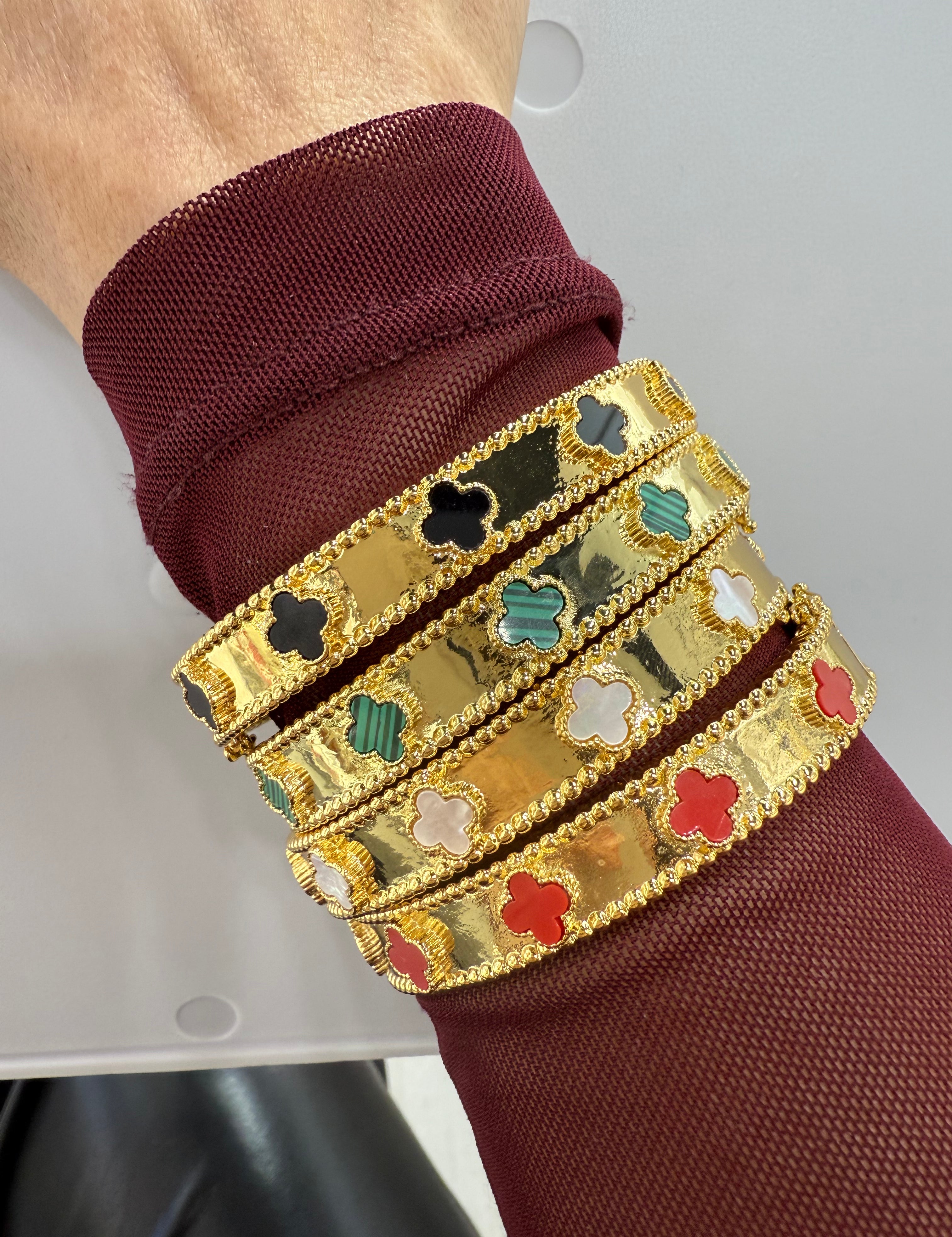 Color Clover Cuff Bracelet in Black, Green, White, and Red