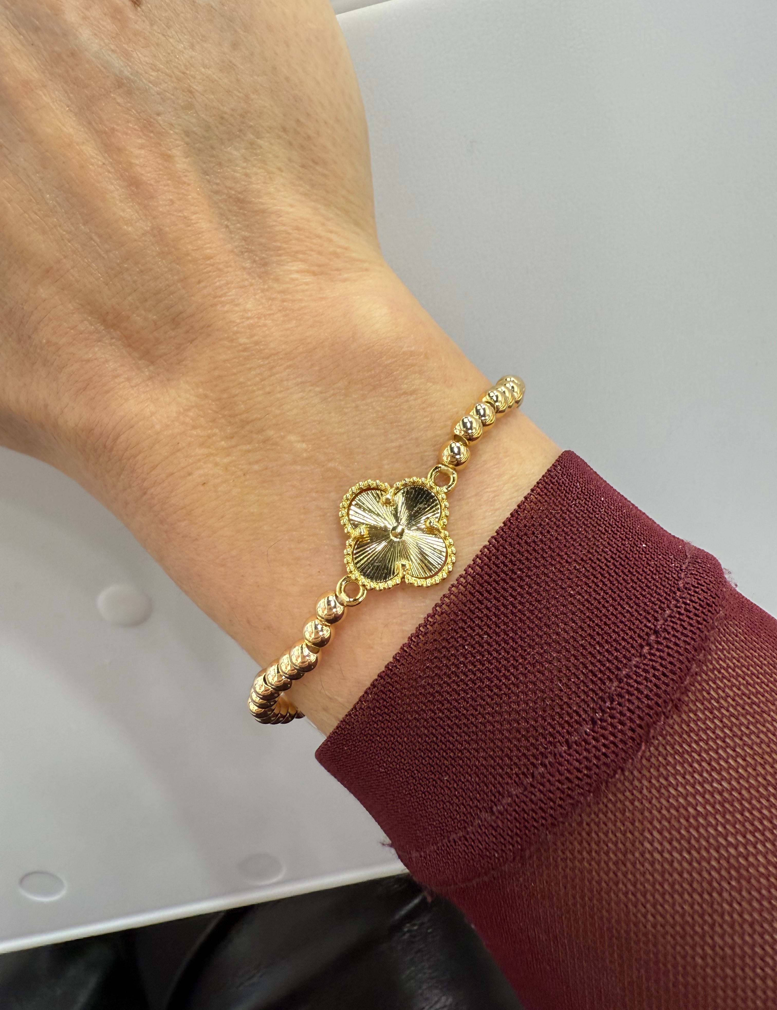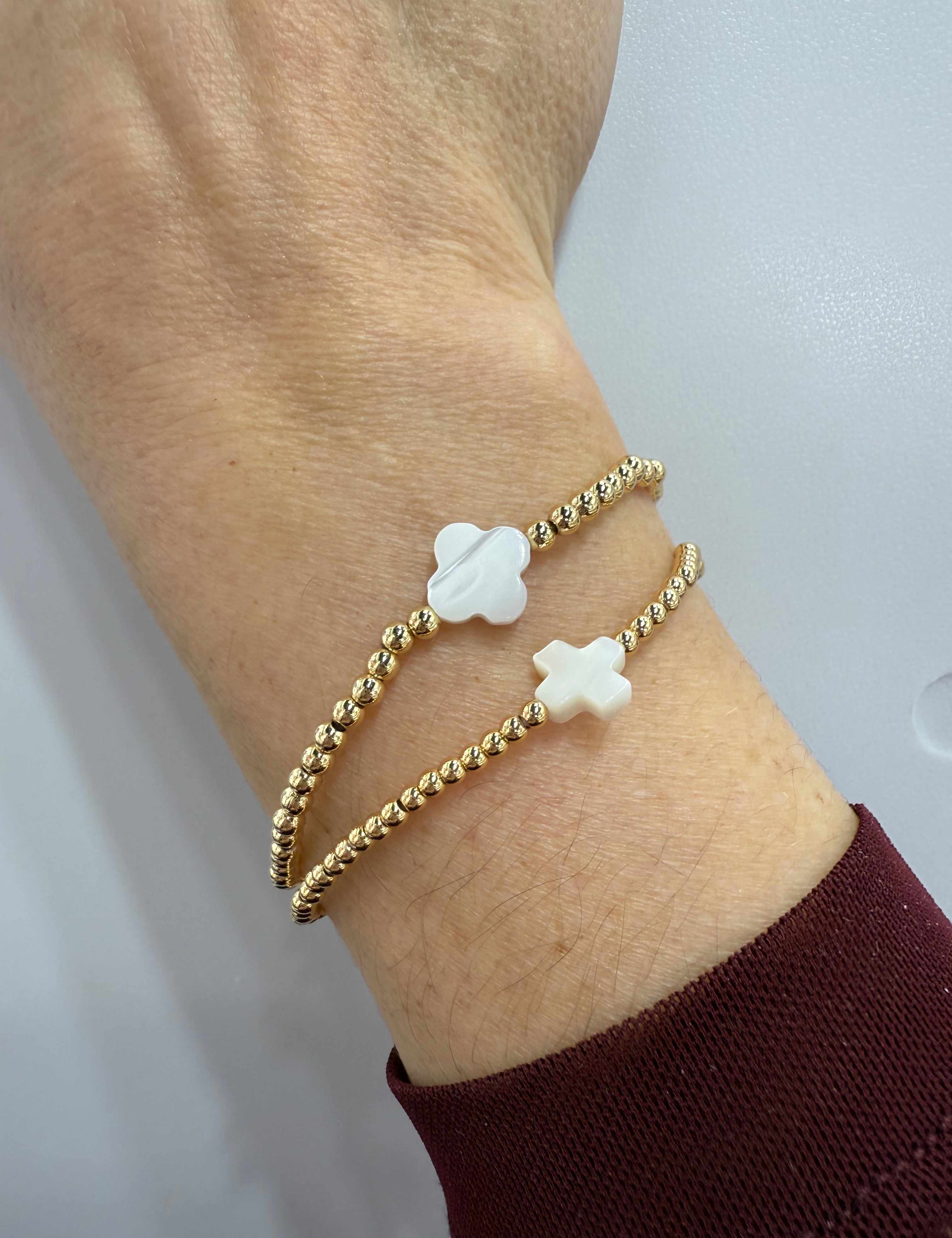 Beaded Stretch Bracelet with Opal Charm in Gold