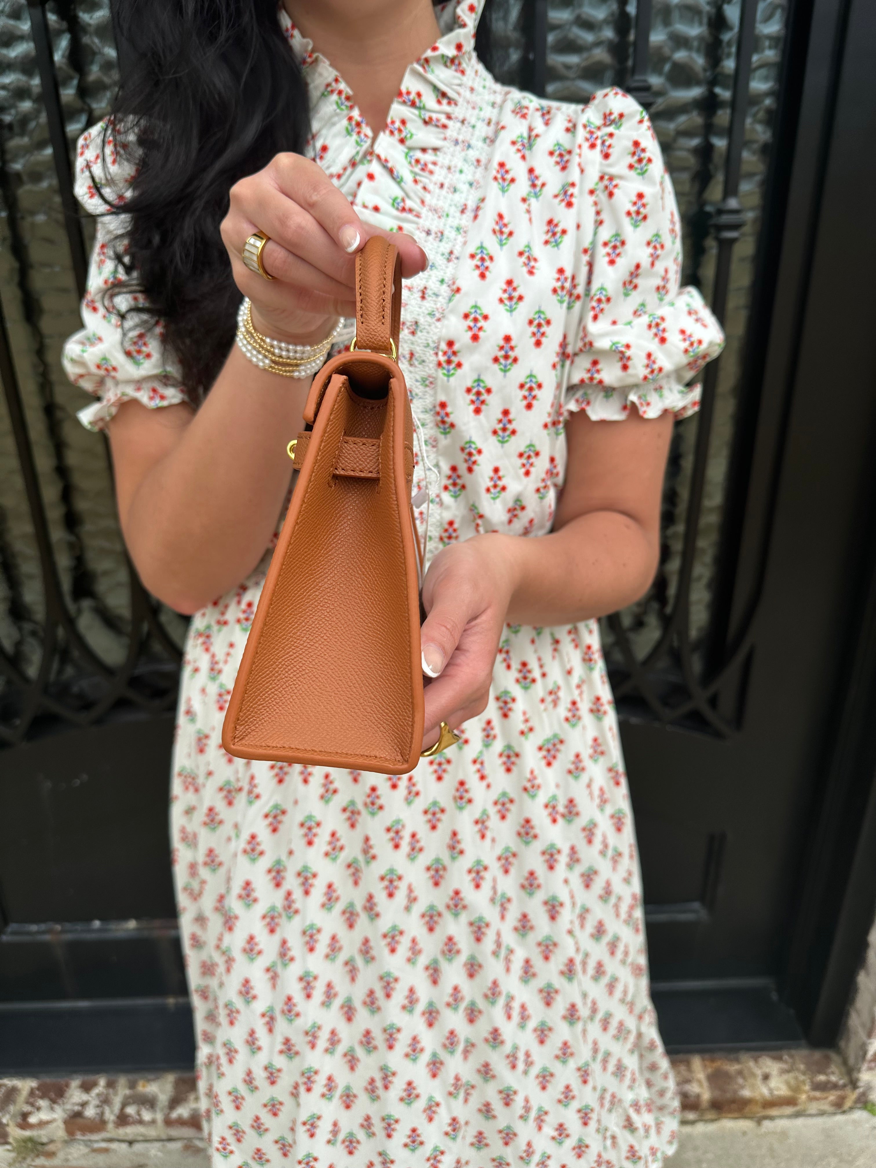 This charming piece features a luxurious brown design complemented by a striking gold clasp buckle and a comfortable top handle. Perfect for any occasion, this handbag adds a touch of elegance that inspires confidence and complements your unique flair.