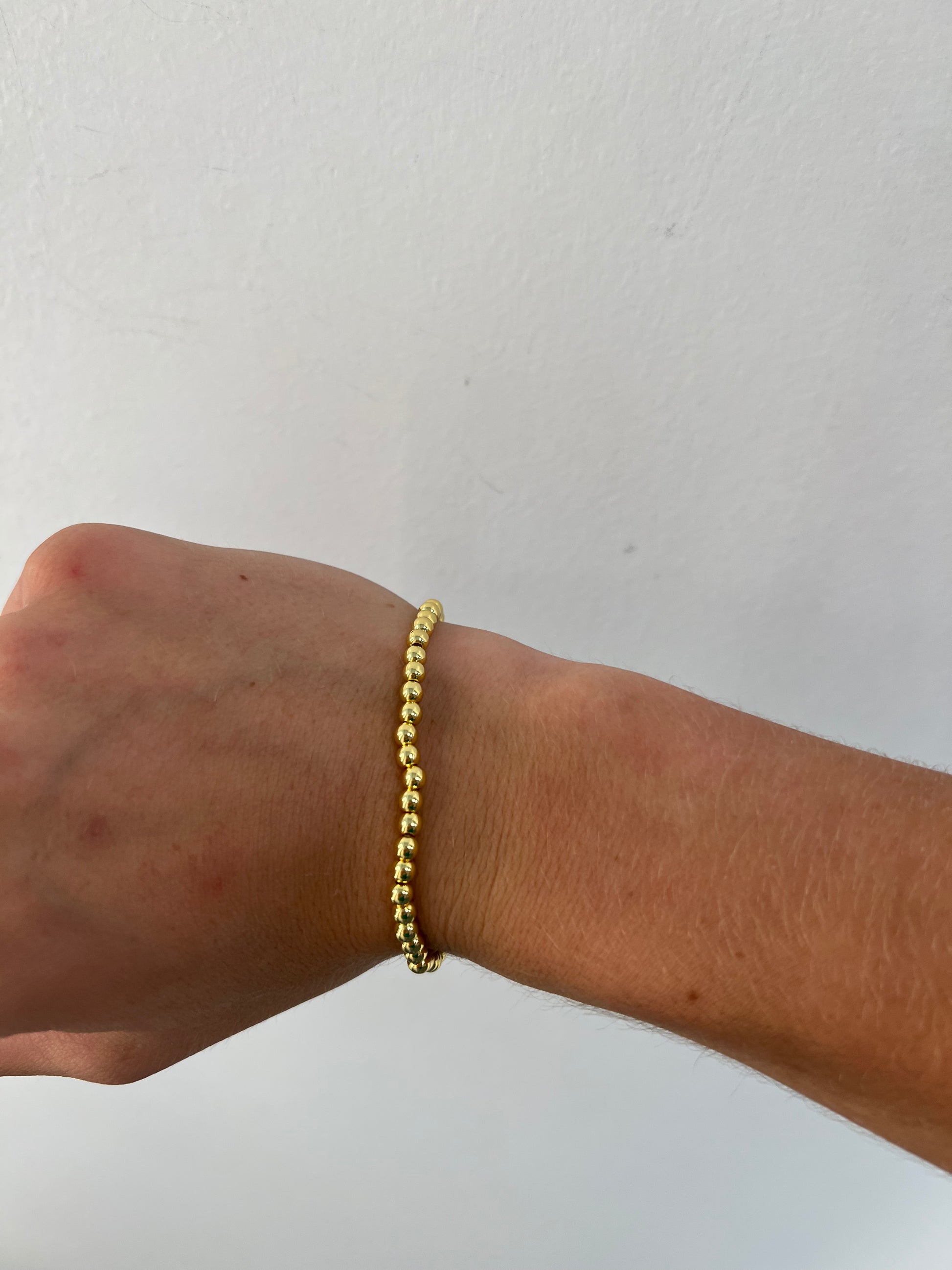 Add an elegant touch to your bracelet stack with this 4mm gold beaded bracelet. Perfect for any ensemble, this bracelet exudes sophistication and refinement. Water resistant.