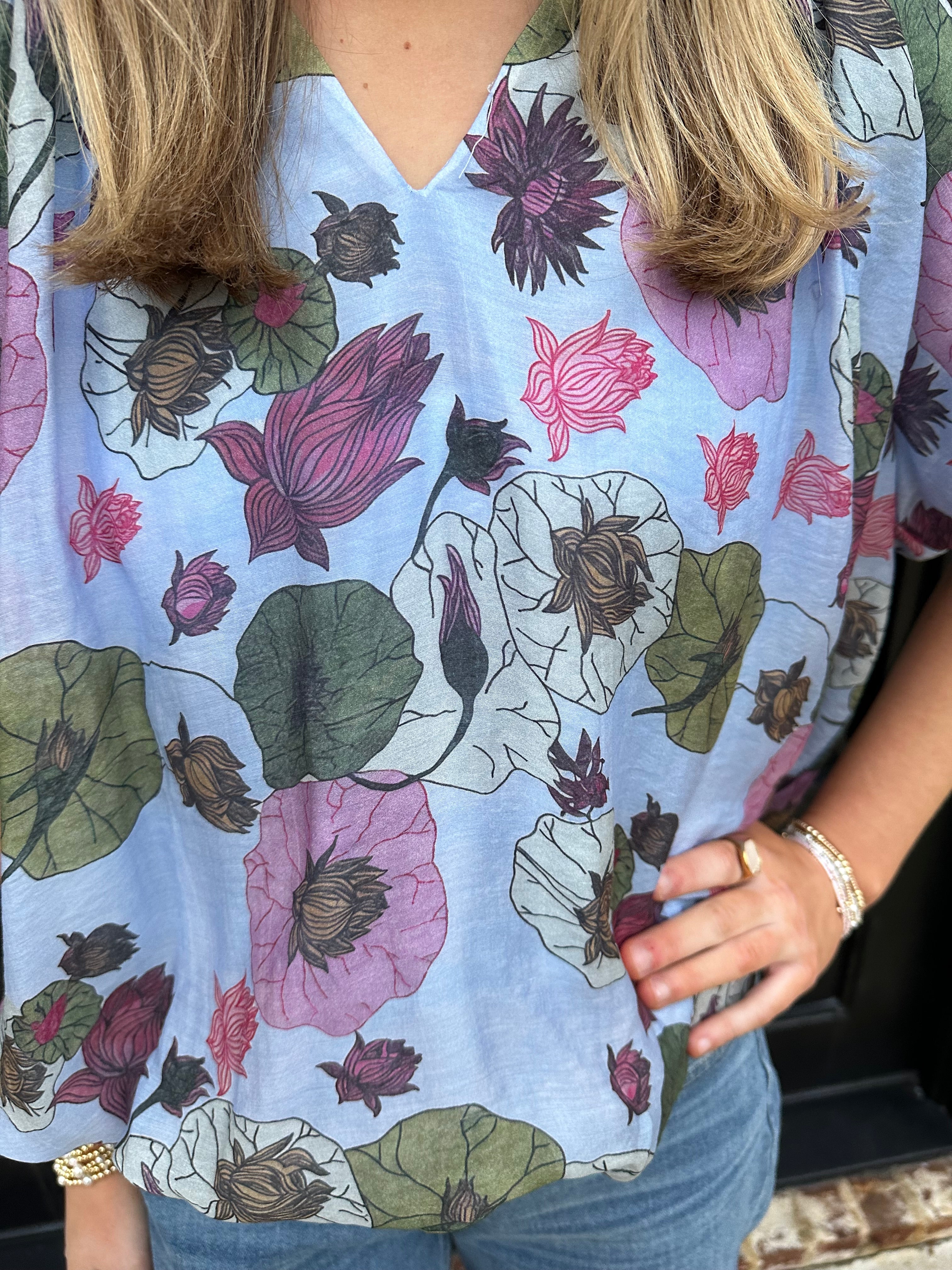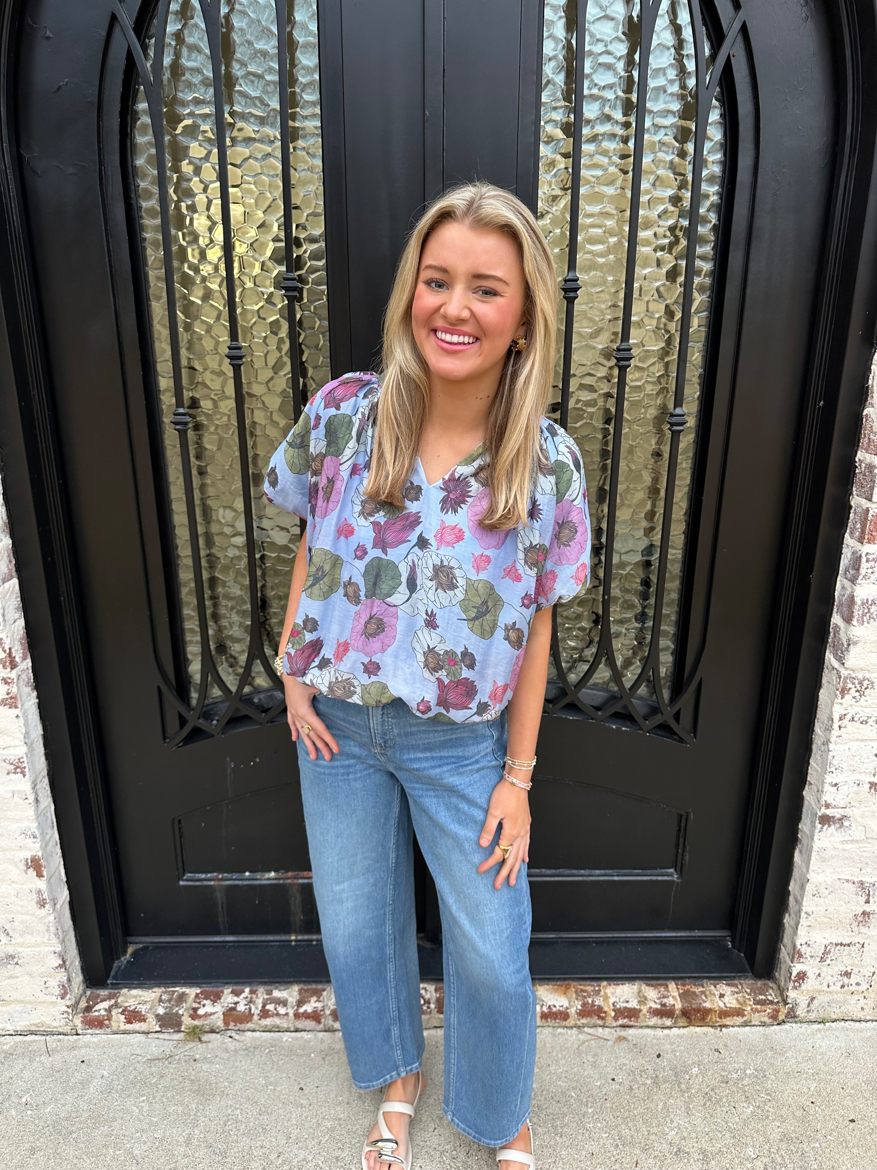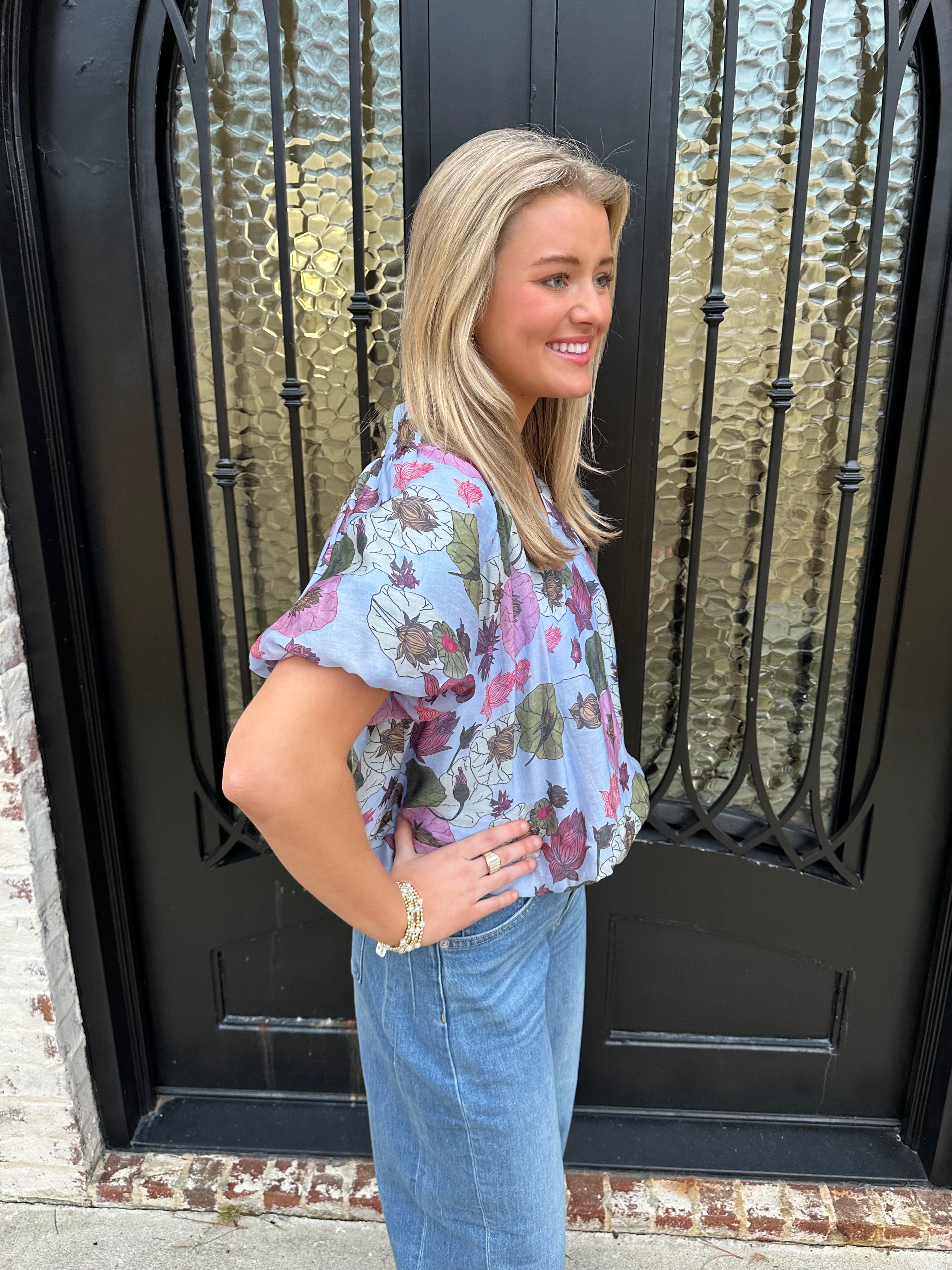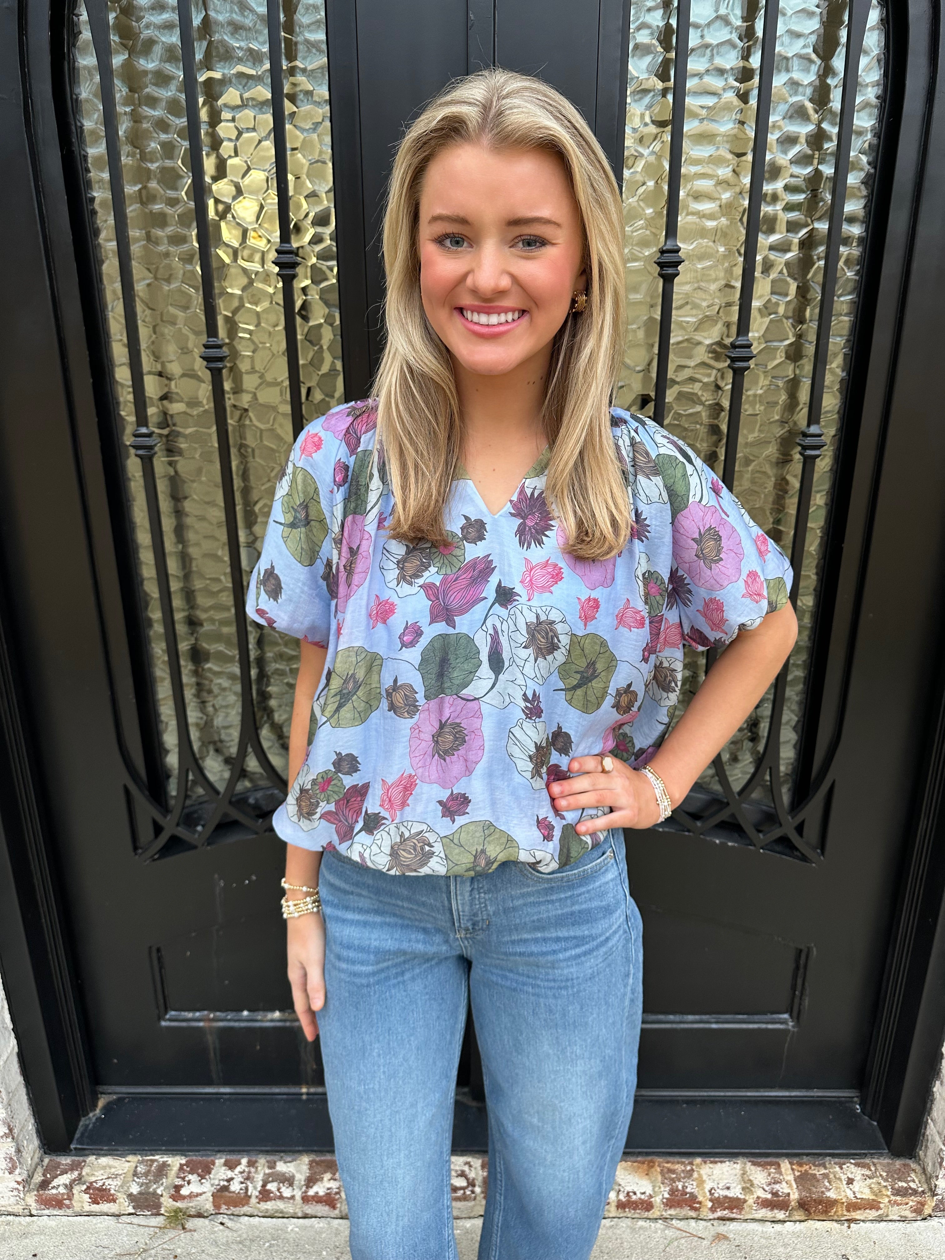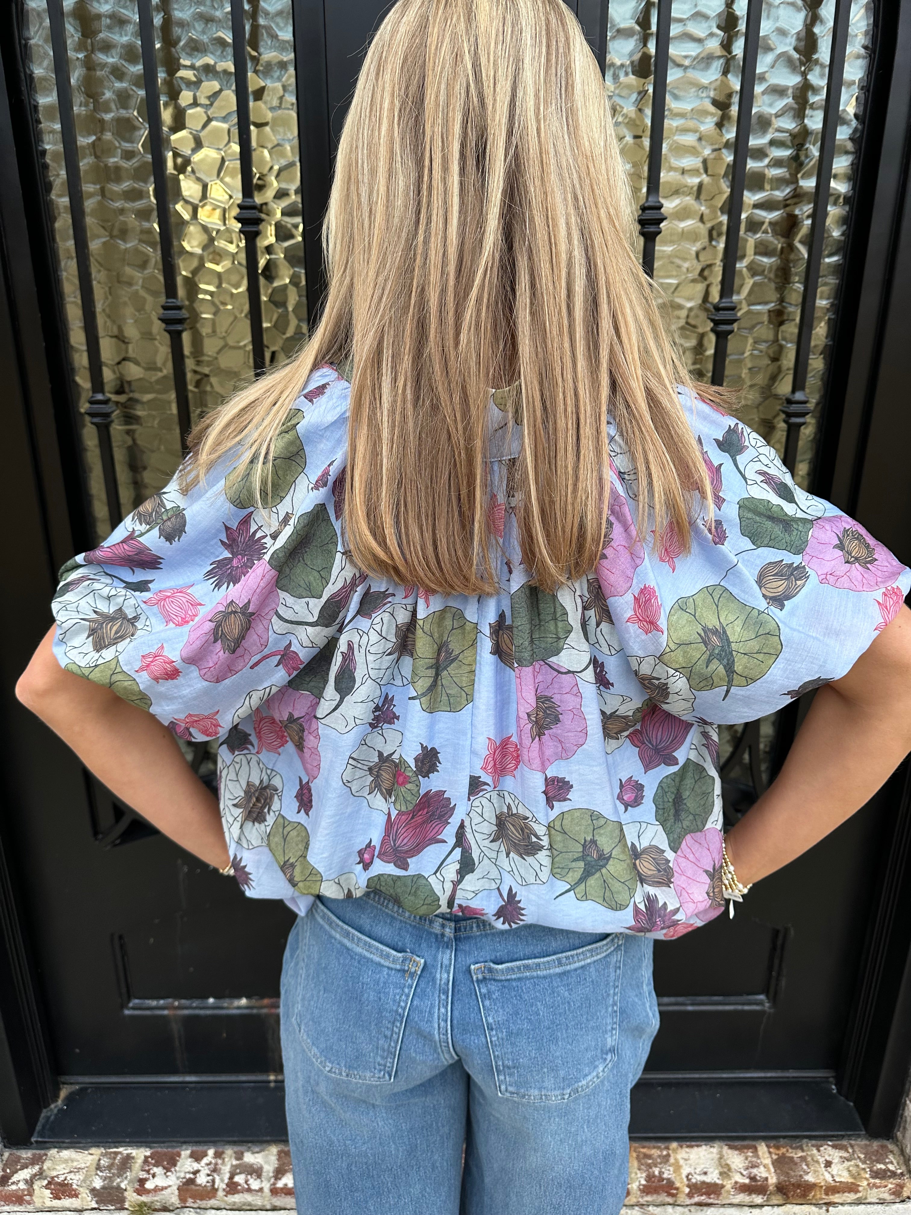 The Frans Bubble Hem Top in Blue is your answer to effortless spring and summer style. This charming piece features a flattering bubble hem that adds playful texture and movement, while delicate florals dance across a rich blue base. Pair it with your favorite jeans for an instantly polished look that works from casual outings to weekend gatherings. The thoughtful design balances comfort with sophistication, making it a versatile staple you'll reach for again and again.