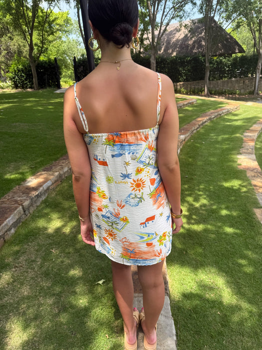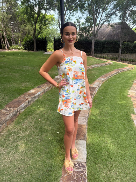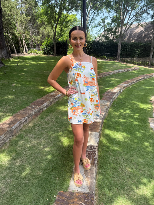 Escape to a Mediterranean daydream with this vibrant Cami Dress! The playful print and breezy design make it perfect for any summer occasion. Let this dress transport you to the crystal clear waters and warm sunshine of the Mediterranean. Embrace the fun and excitement with this must-have dress! The straps are adjustable.