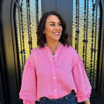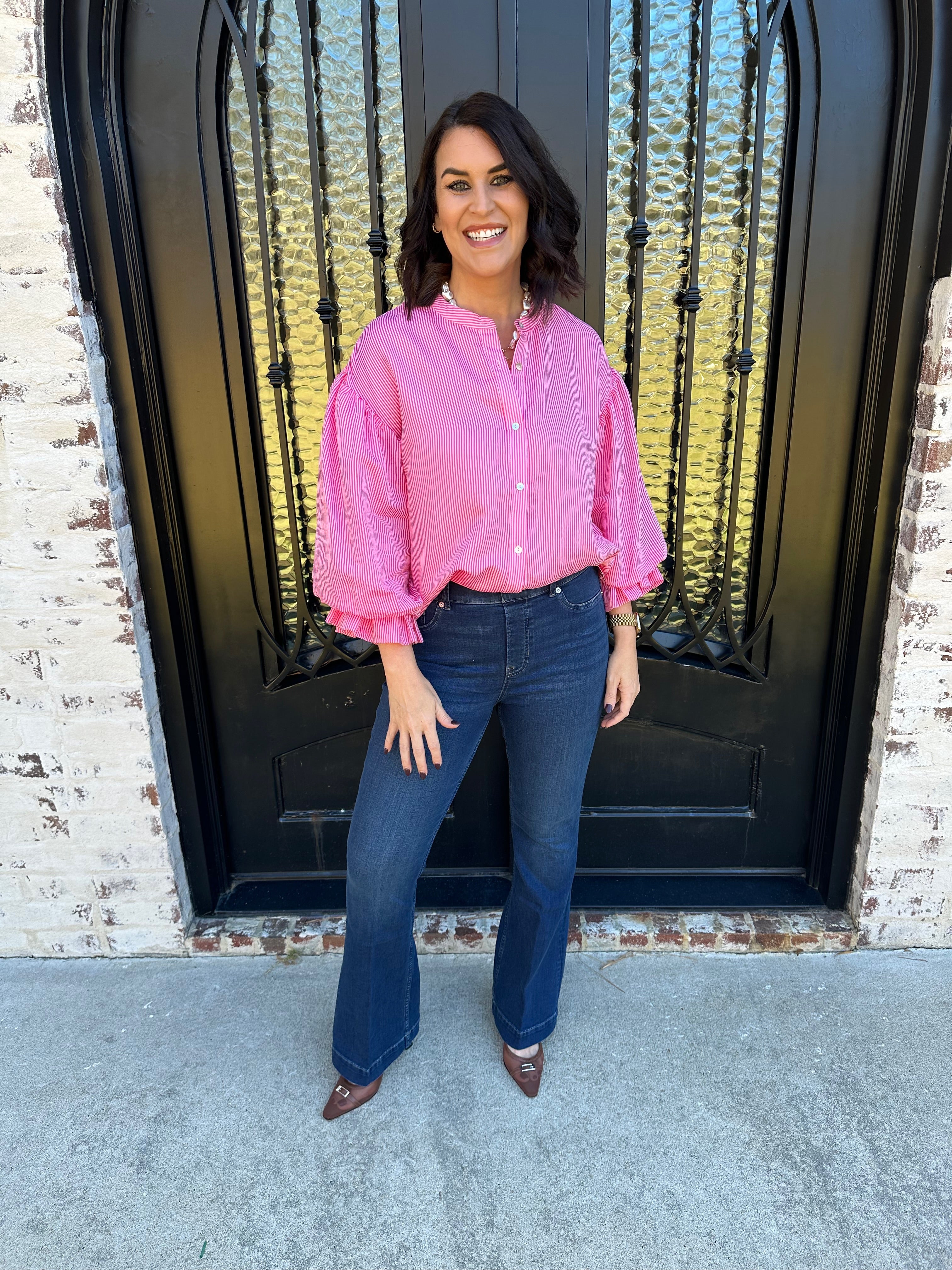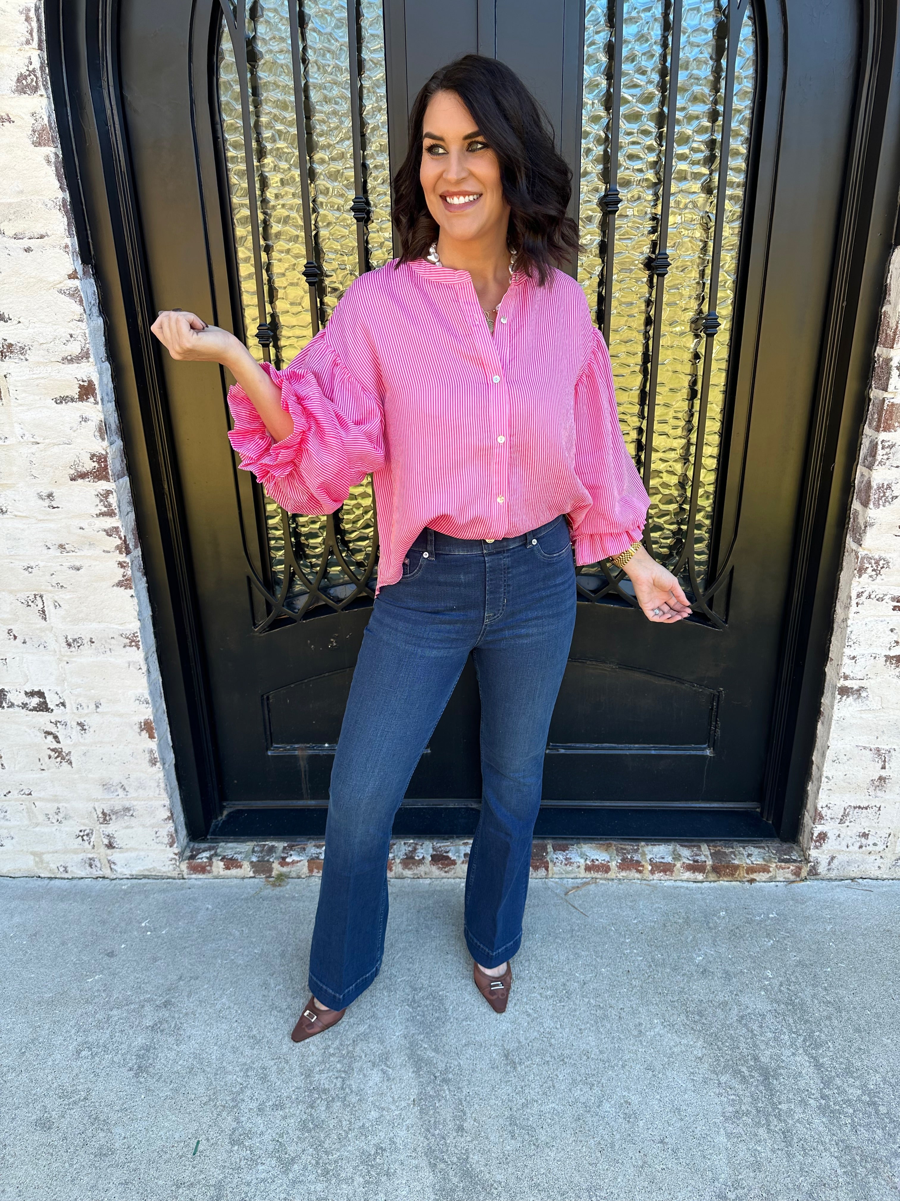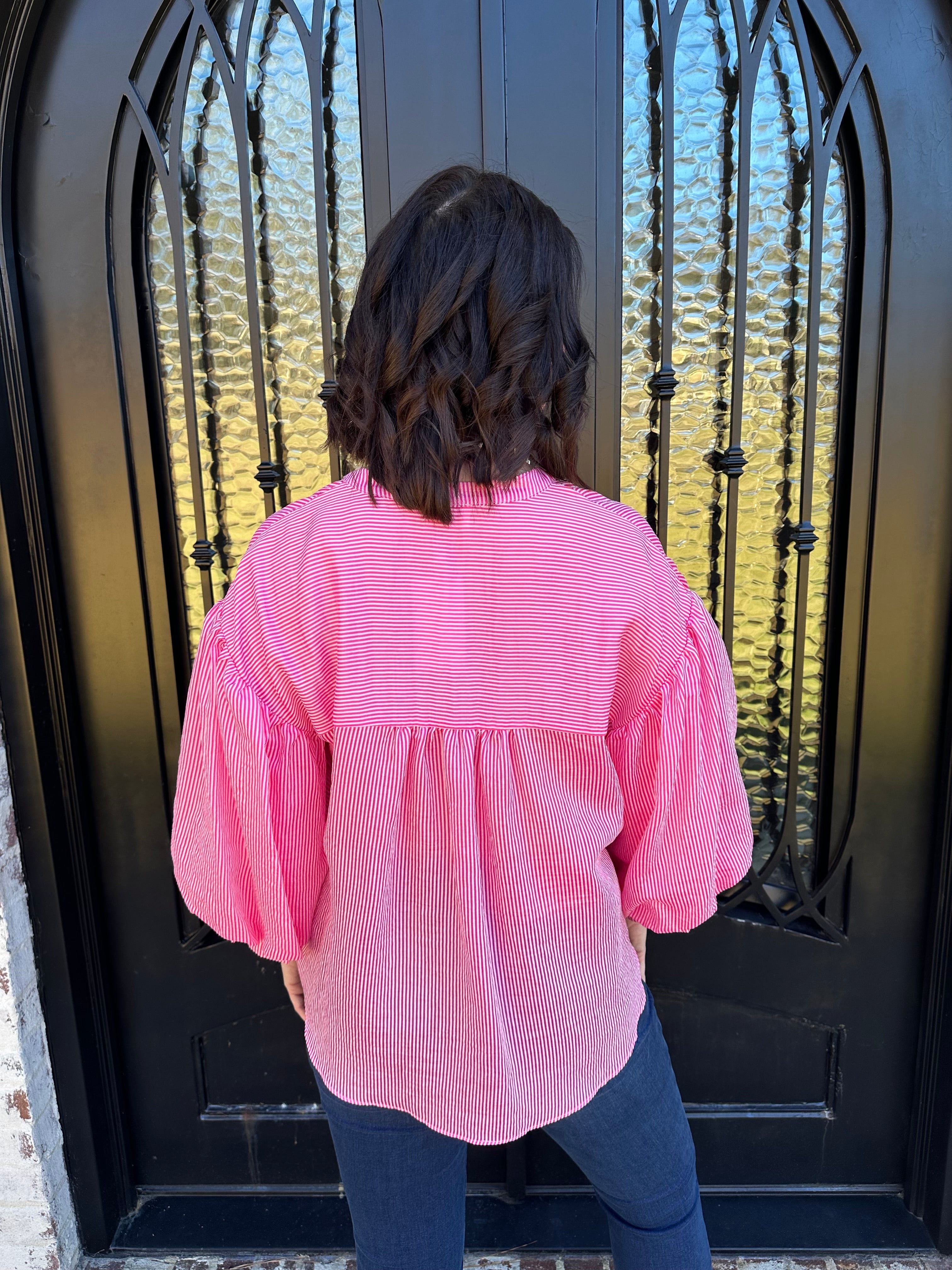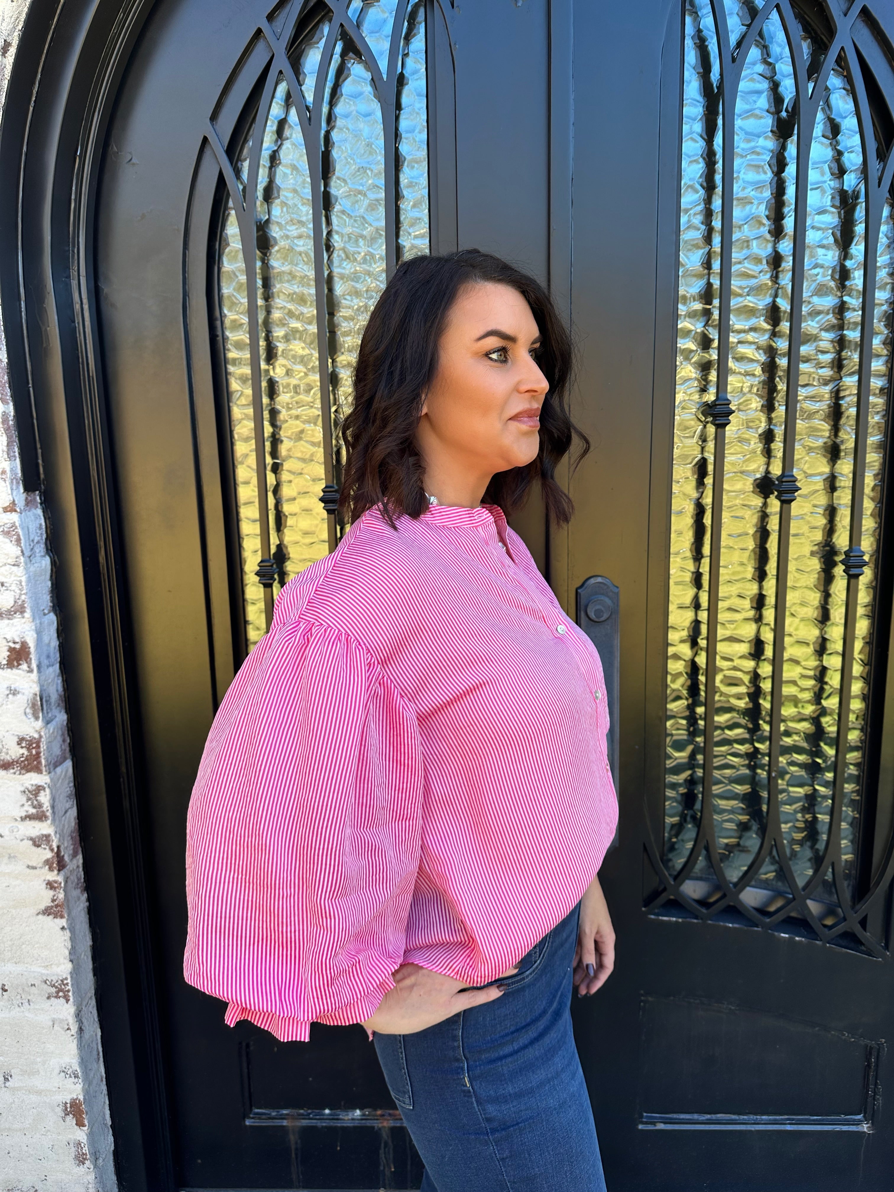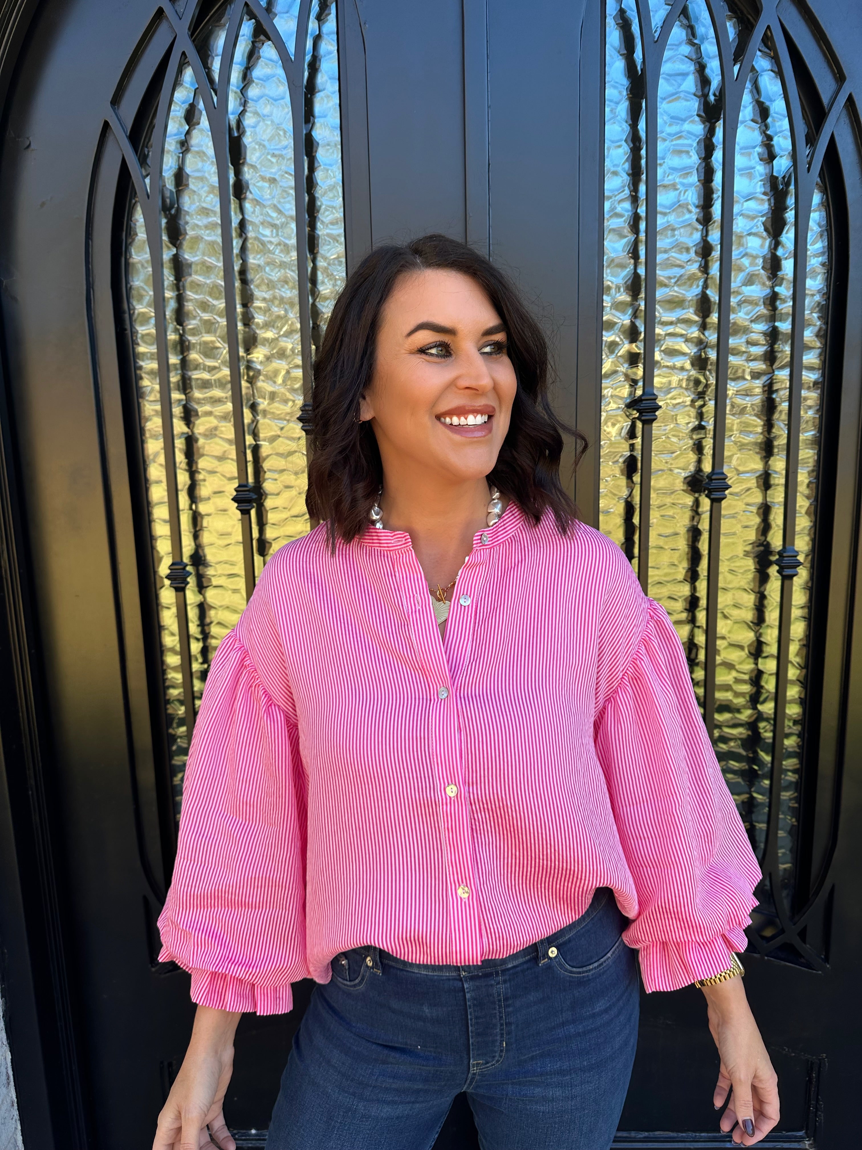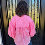 Rowan Pinstripe Voluminous Bubble Sleeve Top in Pink