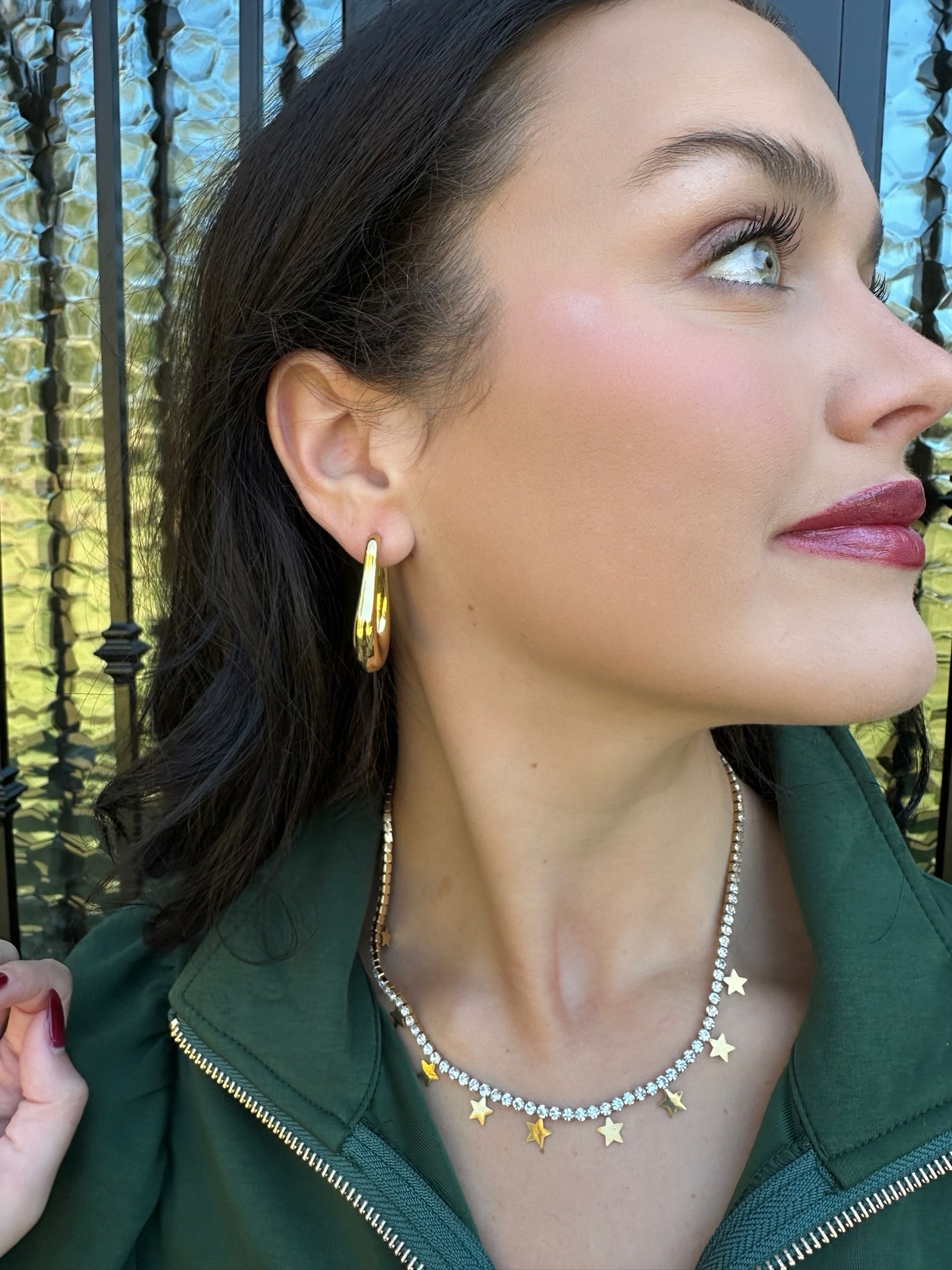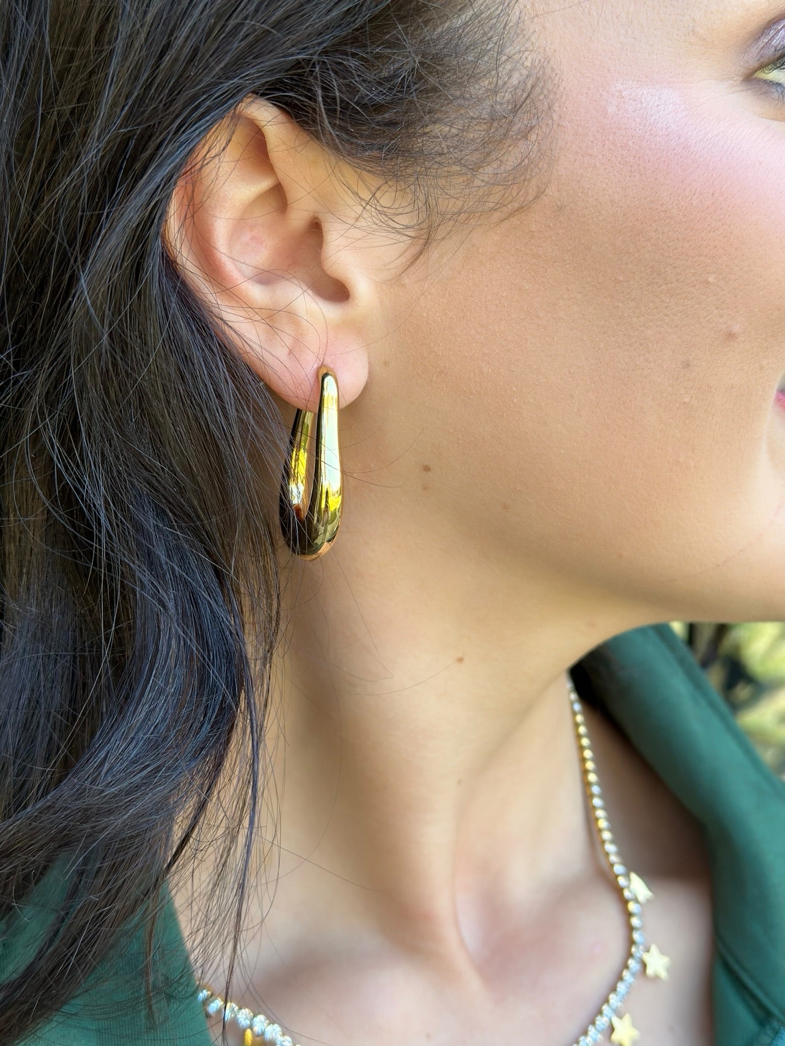 The Small Sophie Earrings in Gold bring a unique, eye-catching shape that adds a fun, stylish twist to any outfit. Designed to stand out, these earrings combine bold design with durability, featuring water resistance and backed by a lifetime warranty. Elevate your accessory game with a piece that's as reliable as it is remarkable.