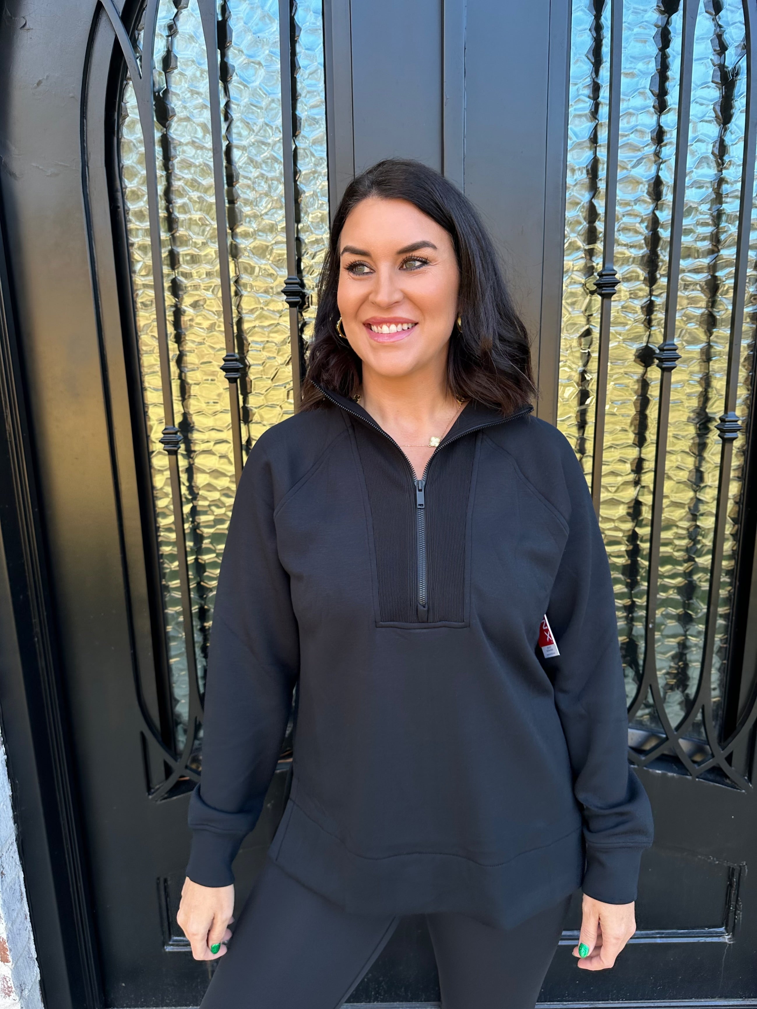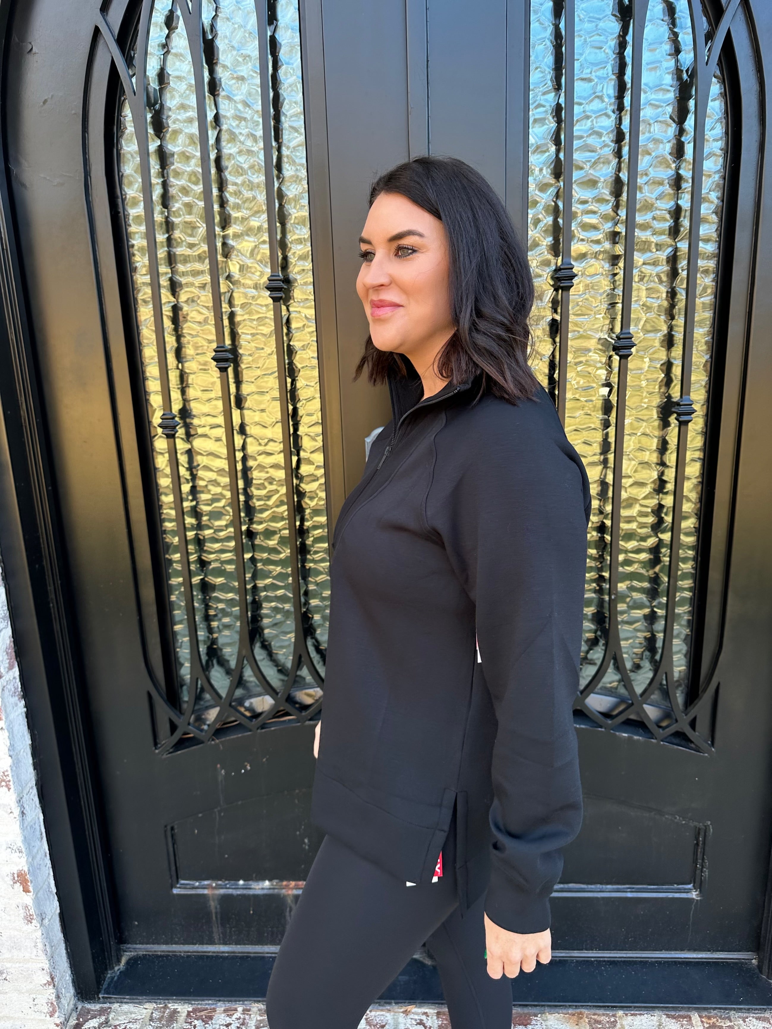 Our SPANX AirEssentials® Brushed Half Zip Tunic is made from our signature spacer fabric that’s light-as-air with a peachy-soft brushed interior for next-level comfort. With a relaxed fit, half-zip neckline, and tunic-length hem, it's an easy loungewear layer with full coverage in the rear (perfect for wearing with leggings). Versatile enough to wear for travel, on the way to the gym or as a cozy outfit topper for errands or downtime, this longer-length half zip will take you anywhere and everywhere.