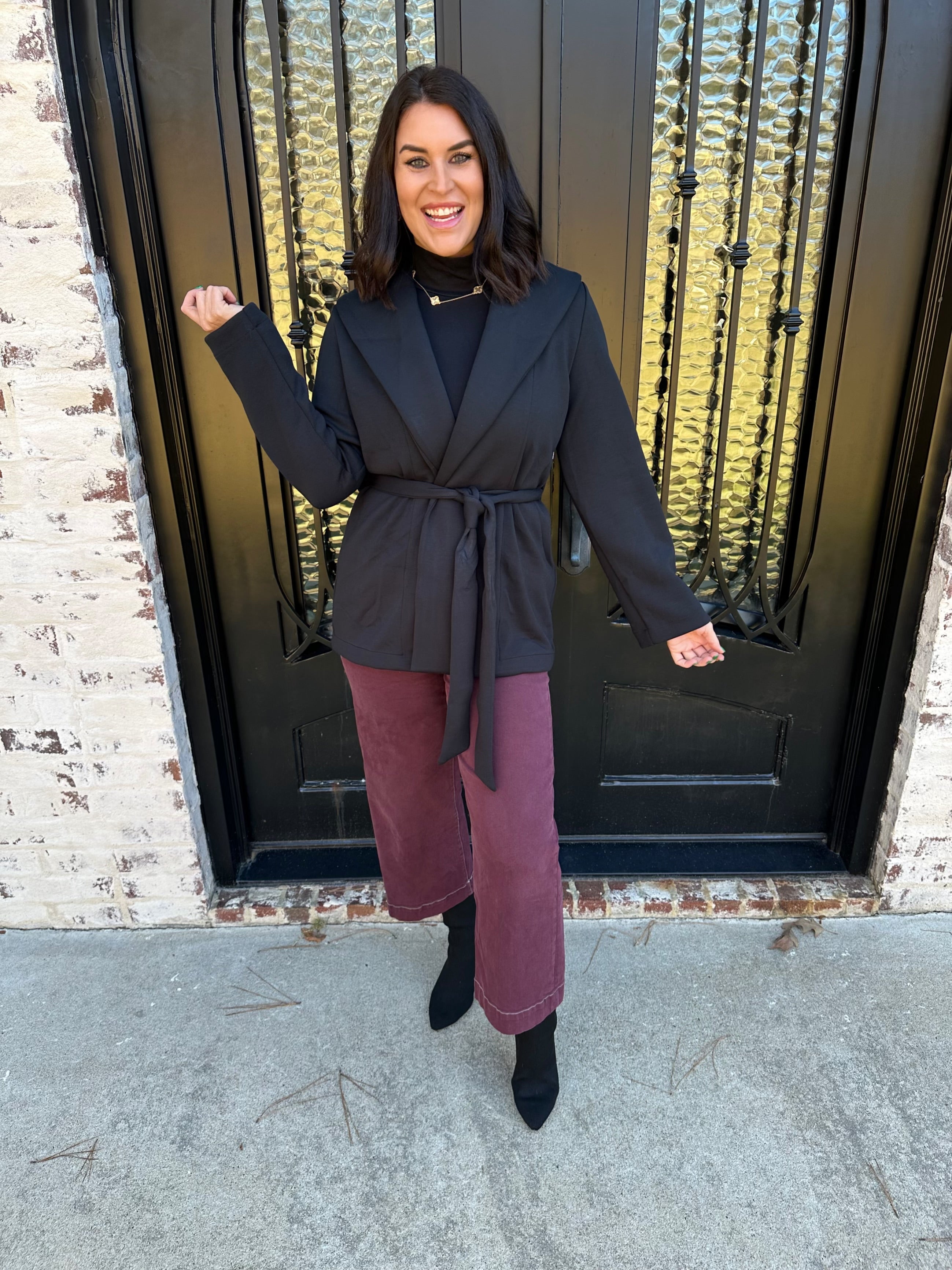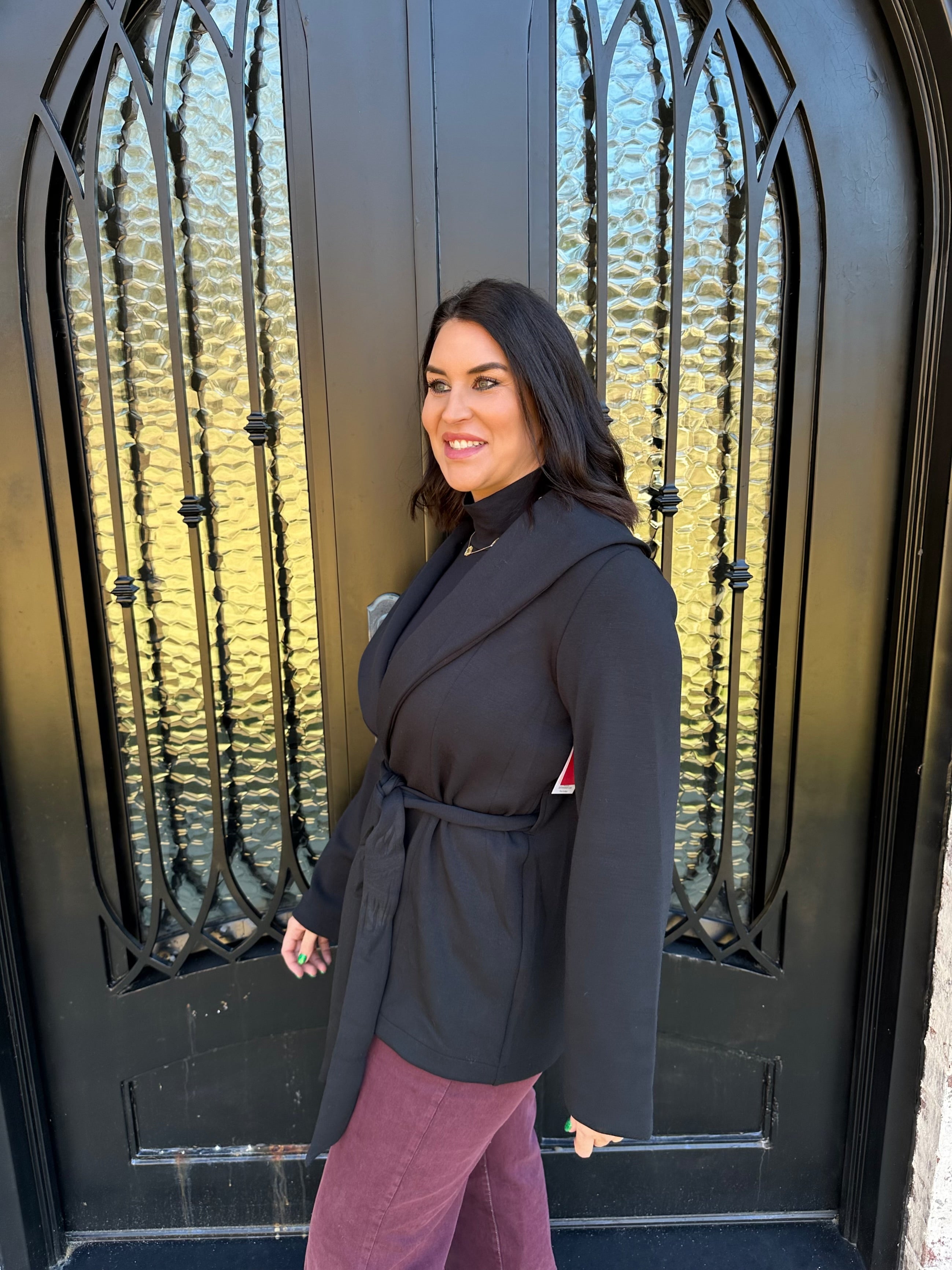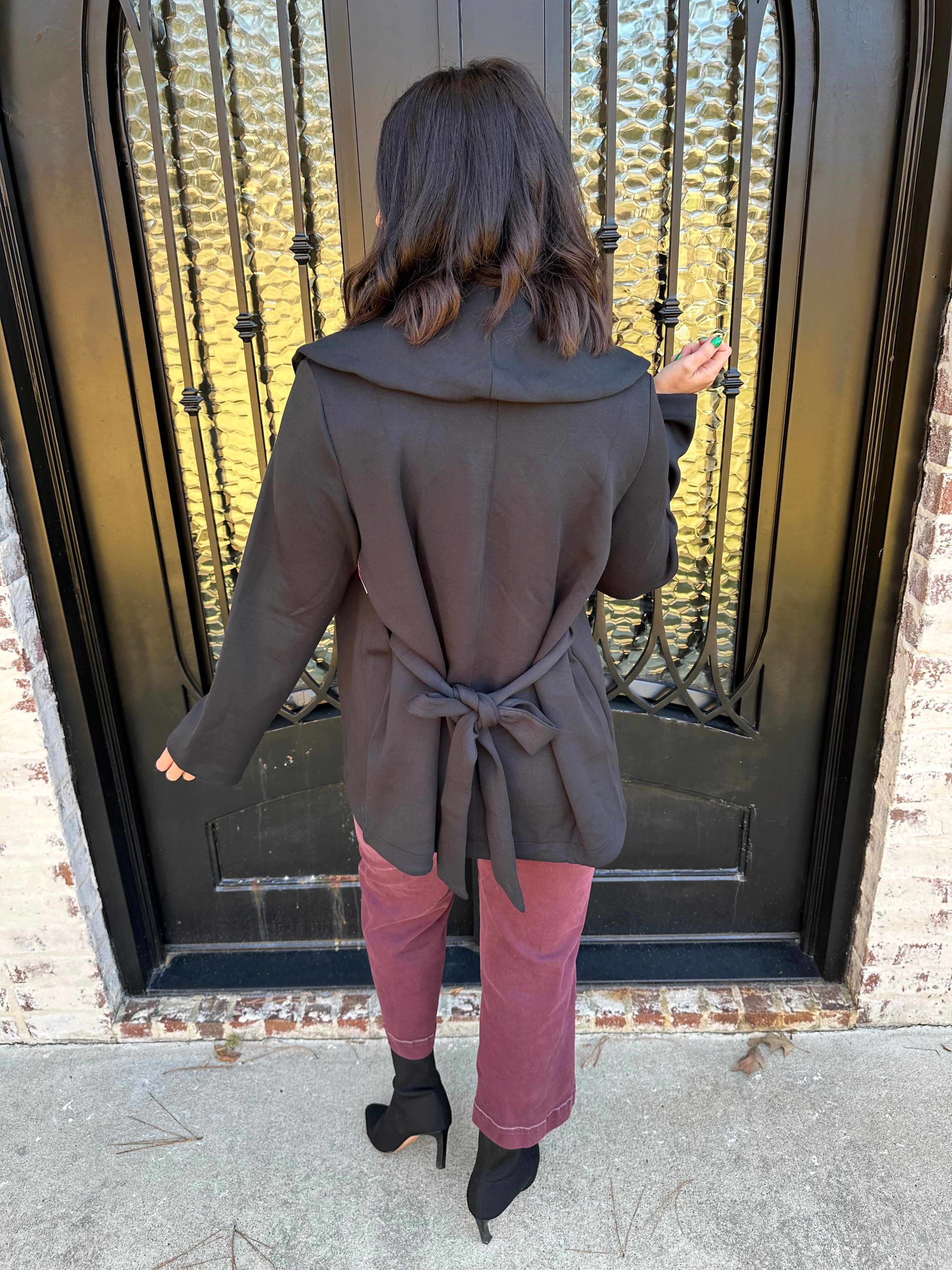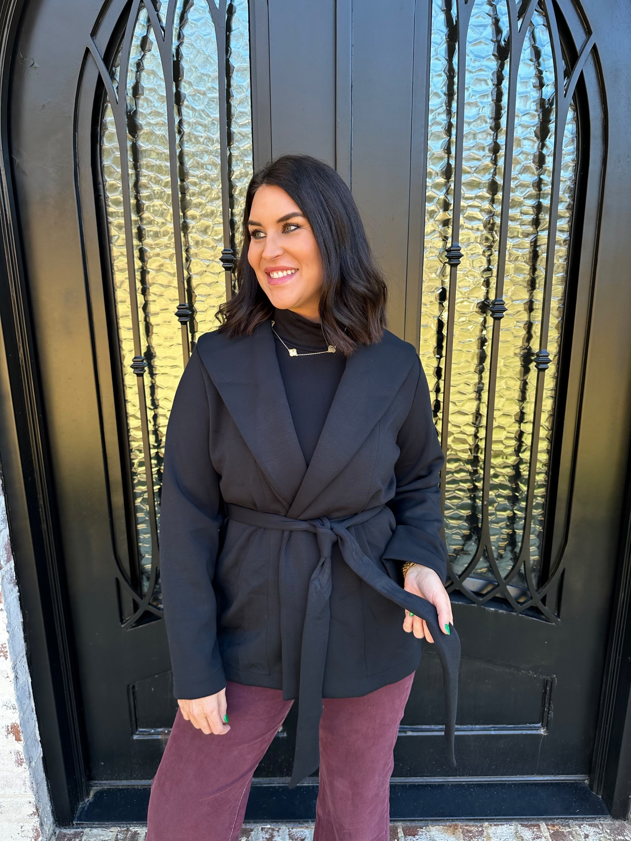 • Elevated wrap cardigan with adjustable tie waist