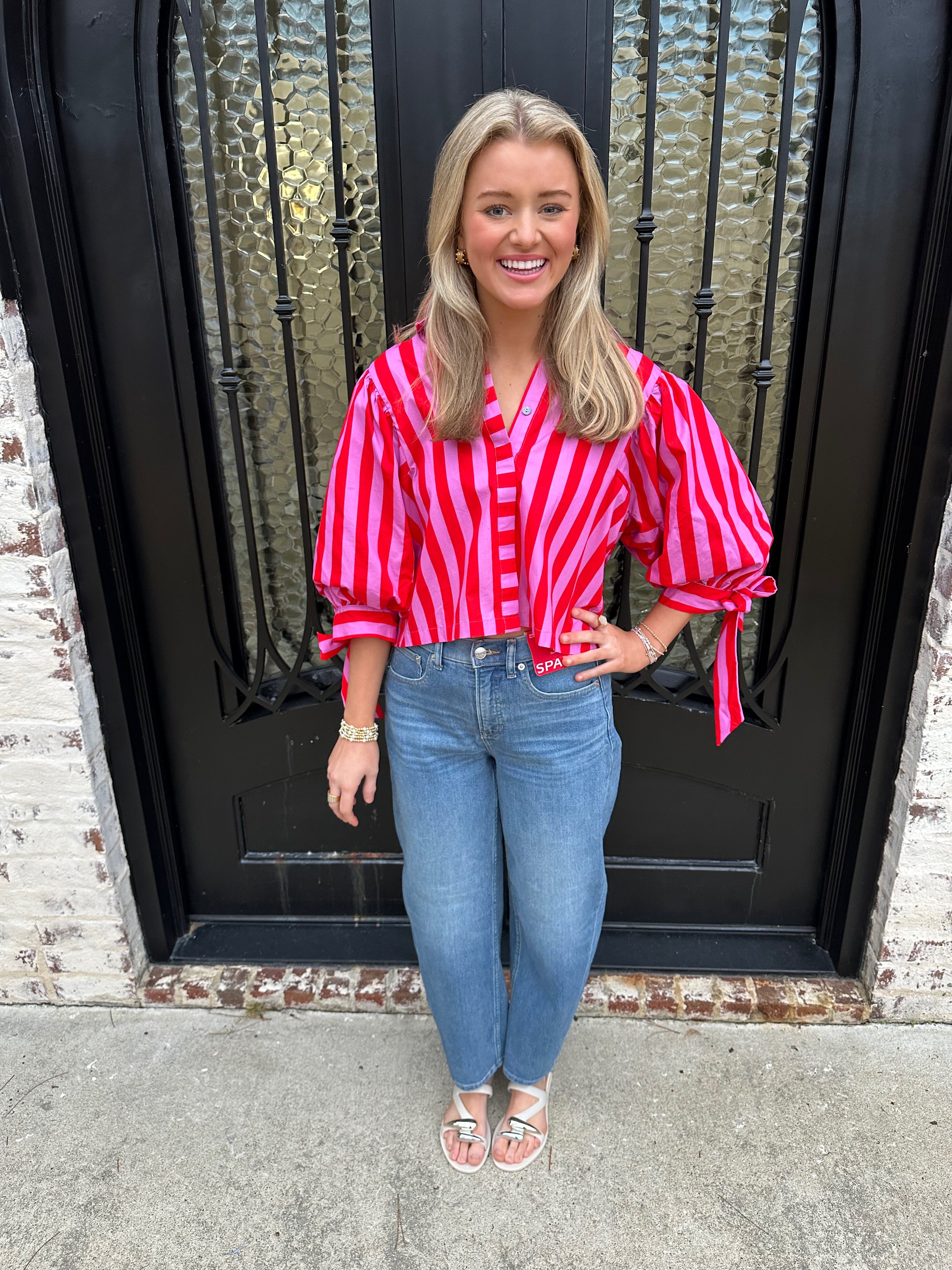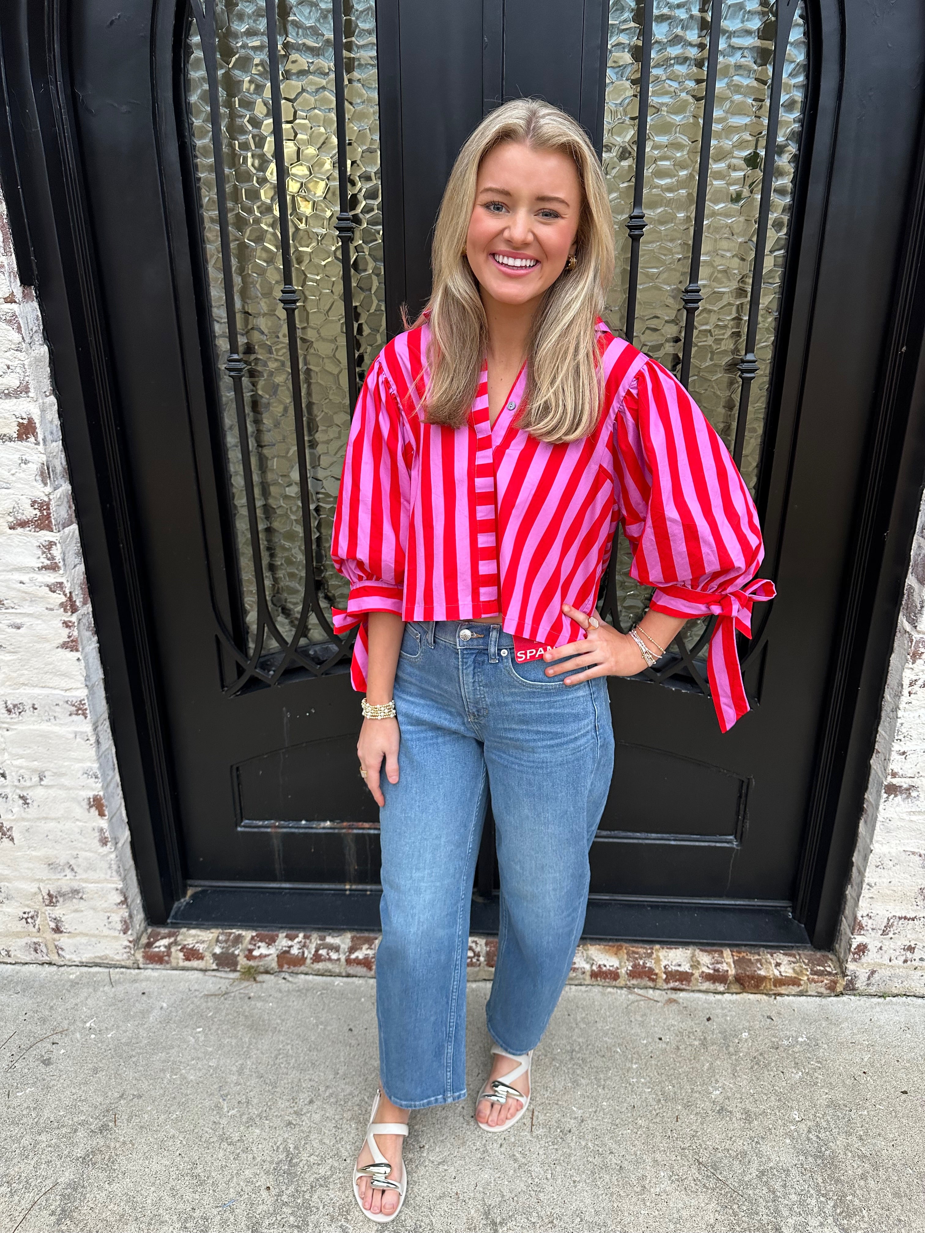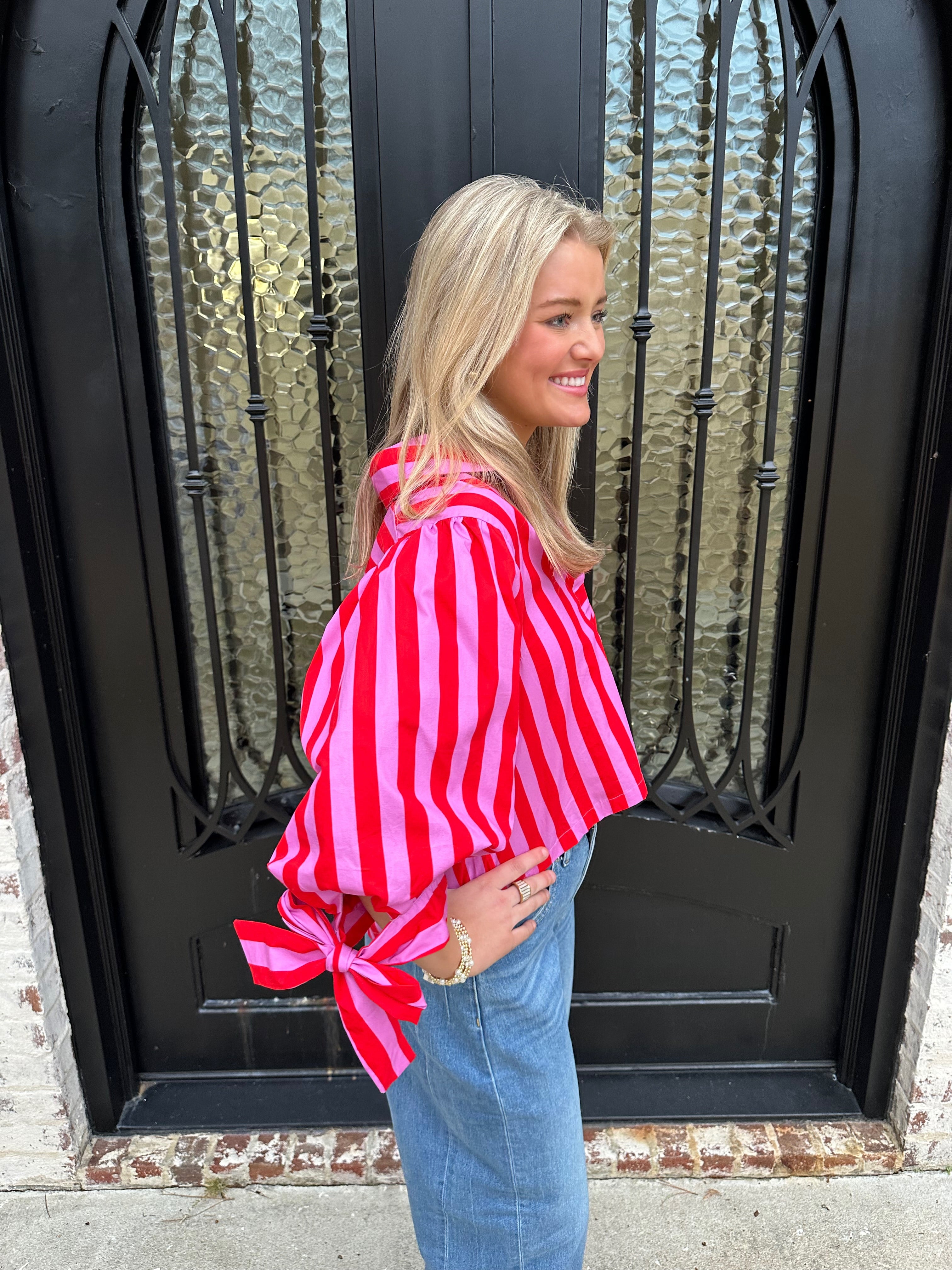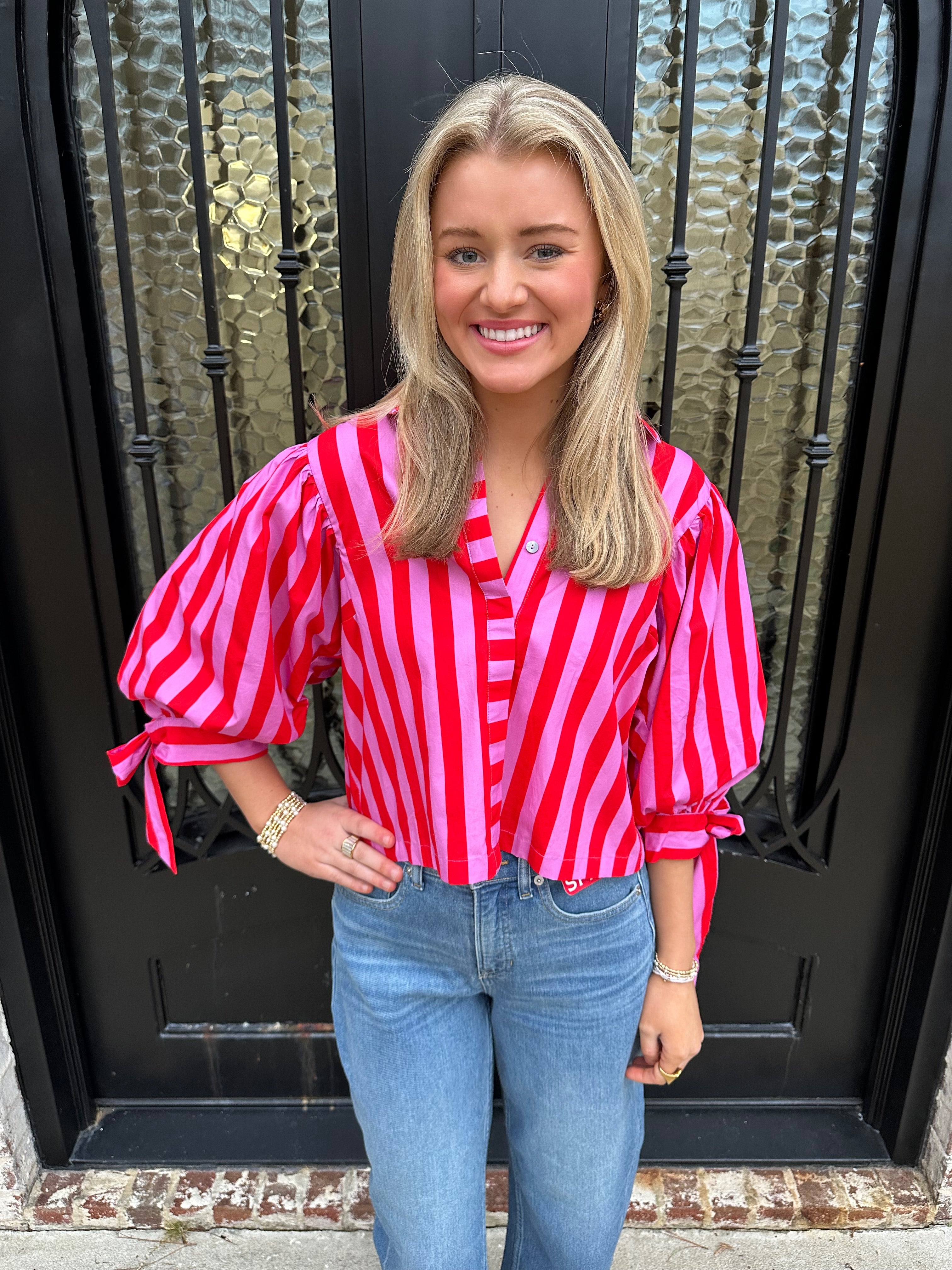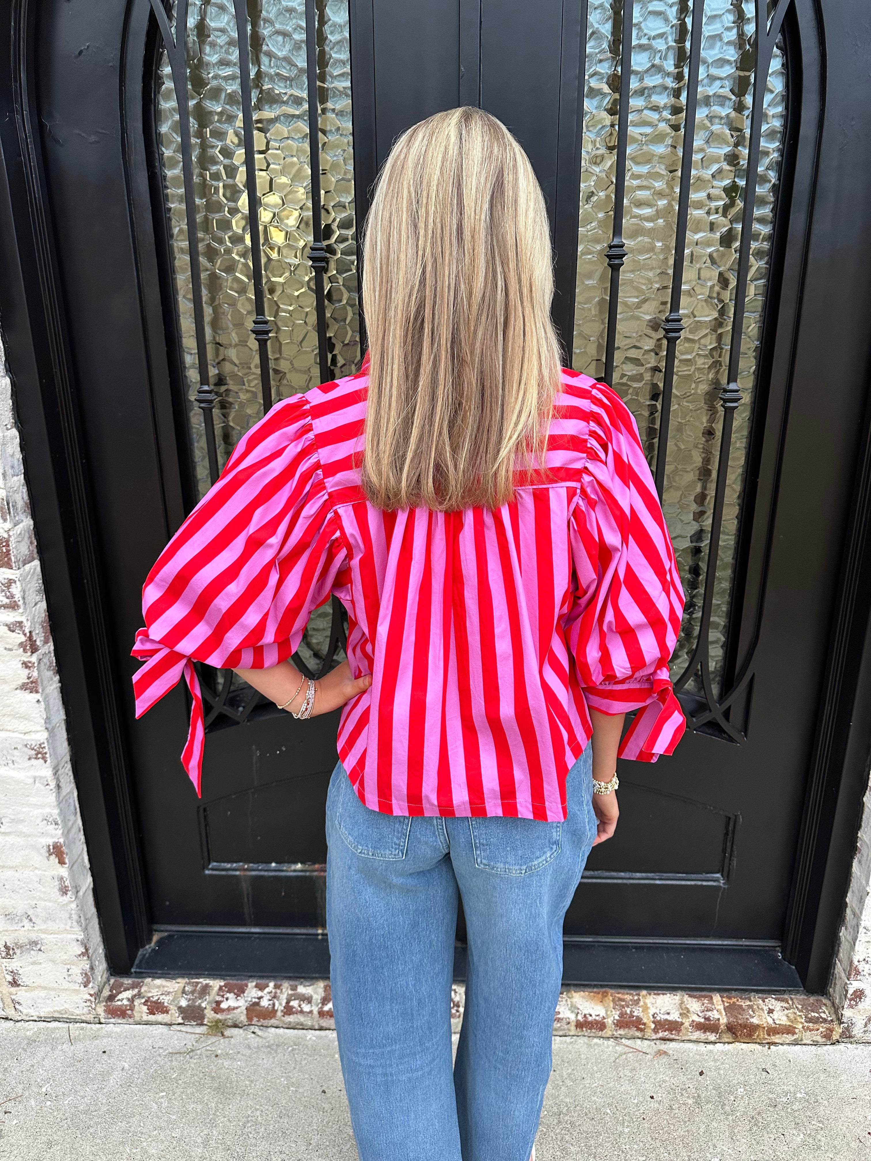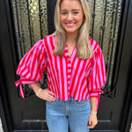 Step into the spotlight with the Sunny Days Stripe Button Up Puff Sleeve Top in Pink. Vibrant hot pink stripes radiate warmth and optimism, perfectly capturing the spirit of spring and summer ahead. Voluminous puff sleeves create an eye-catching silhouette with romantic appeal, while precious bow tie cuffs add a distinctive detail that showcases your attention to style. The button-up design offers versatility—wear it buttoned for polished elegance or open for effortless layering. This is more than a top; it's a confidence booster that transforms any outfit into a statement.